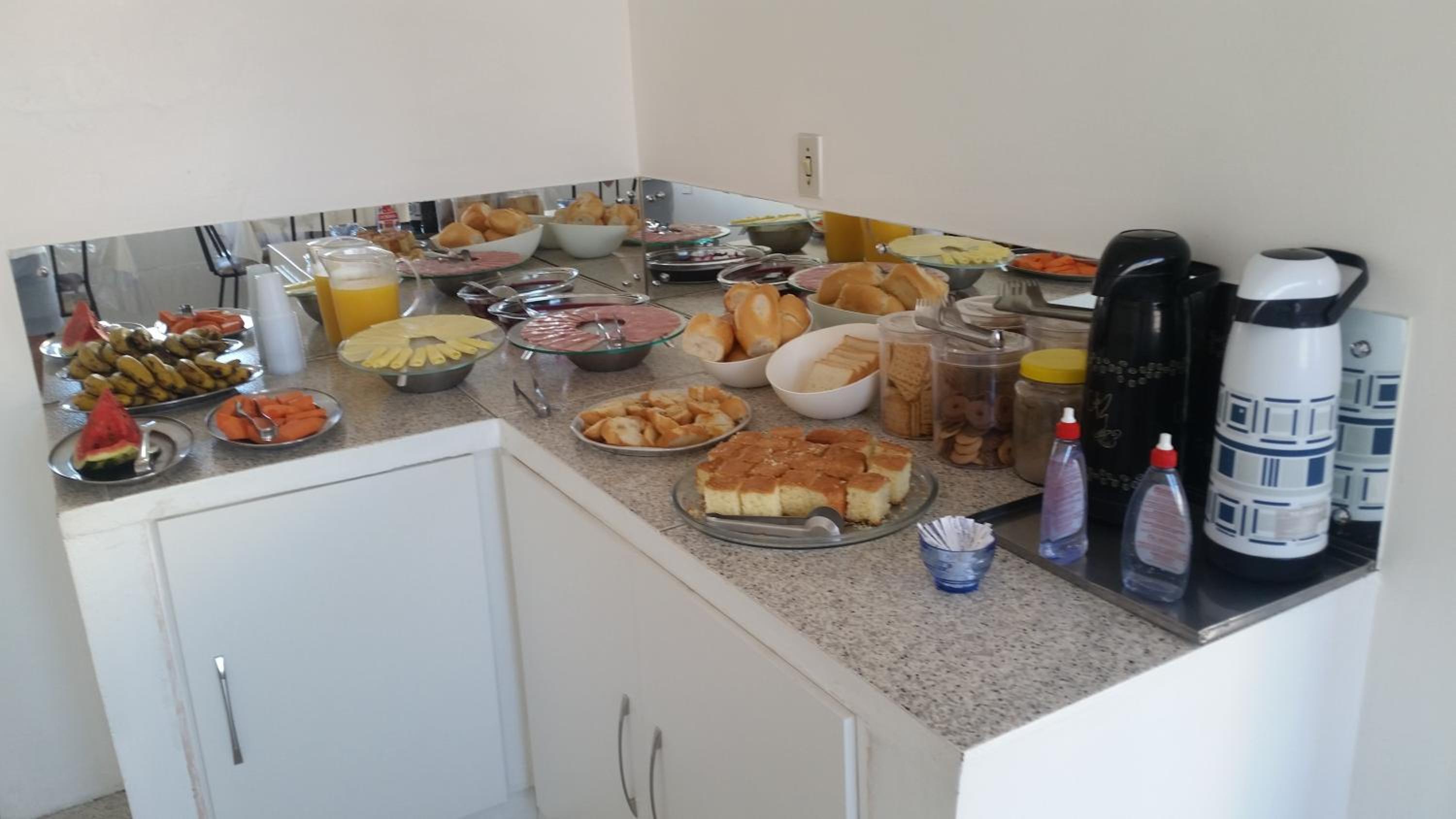 Café da manhã bem básico, assim como a acomodação. Quarto bem pequeno para 5 pessoas. Sem ar-condicionado e a estrutura do prédio bem precária. Deveria ter um orgão para inspecionar os hotéis... Esse está com valor absurdo diante ao que oferece. Fora que o estacionamento tivemos que pagar a parte... Foi uma lástima.