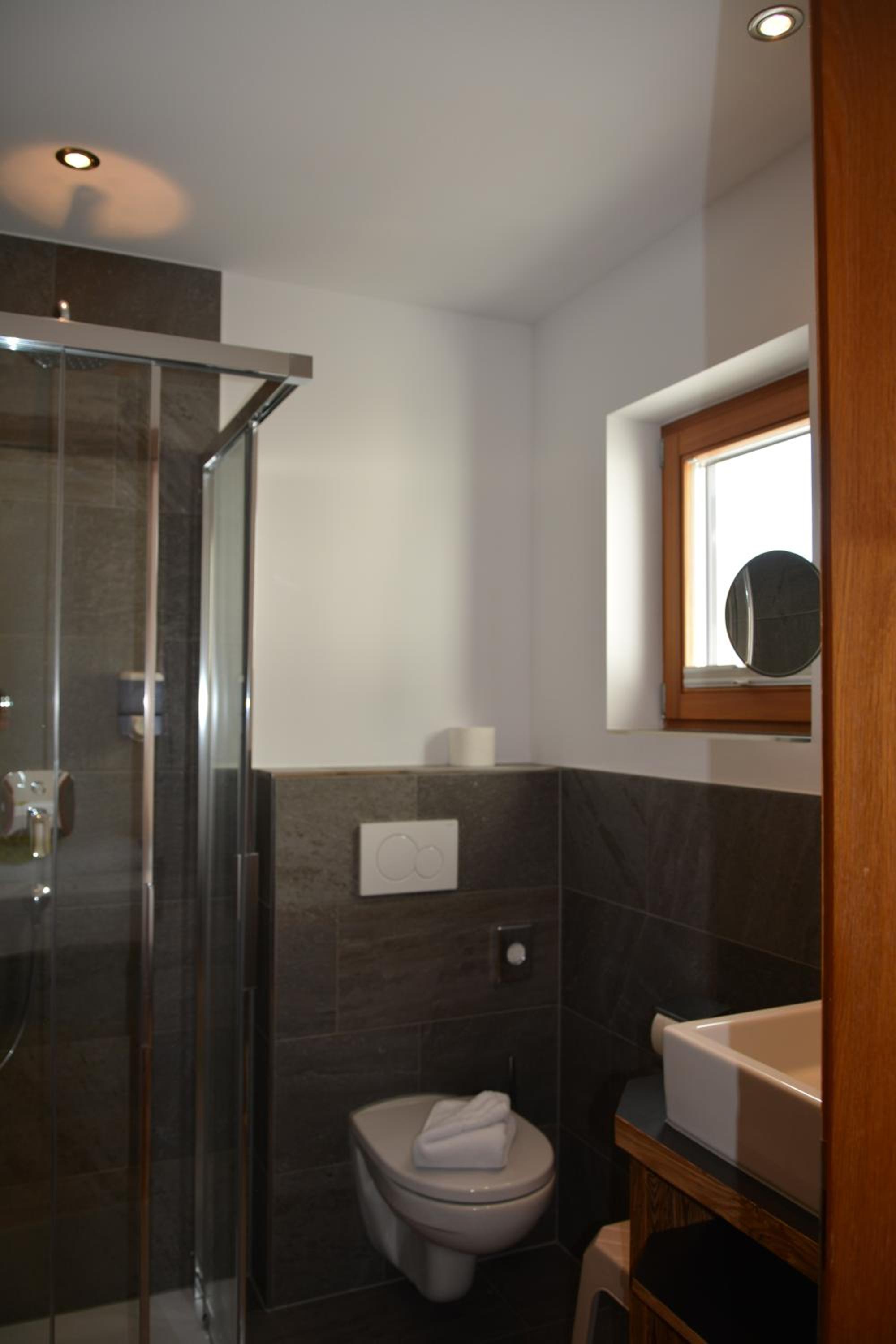 Sehr nett geführtes Haus. Wir hatten ein modern eingerichtetes Zimmer mit Balkon mit einem genialen Bergblick. Kleiner aber ausreichender Saunabereich. In der Tiefgarage diverse Lademöglichkeiten für E-Autos.