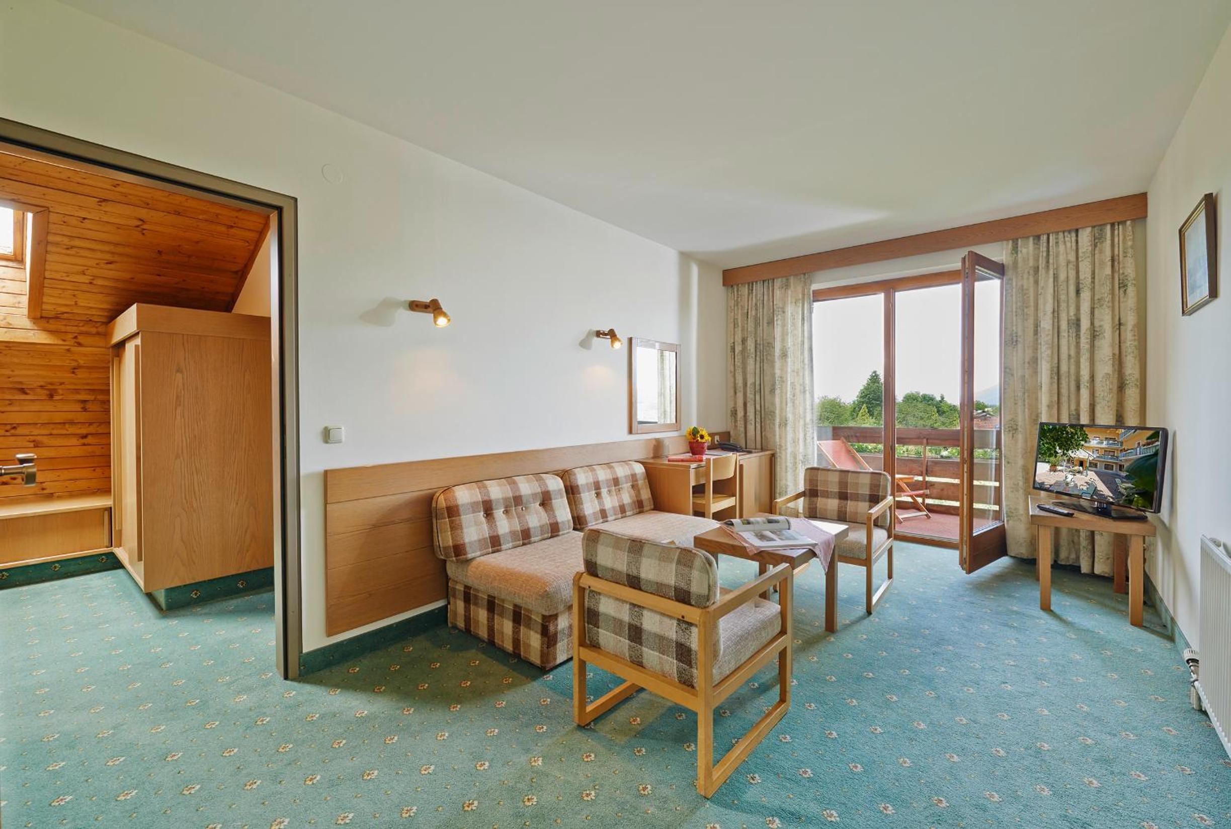 Experience breathtaking views of the mountains from your own balcony or terrace in every room at Finkensteiner Hof.
