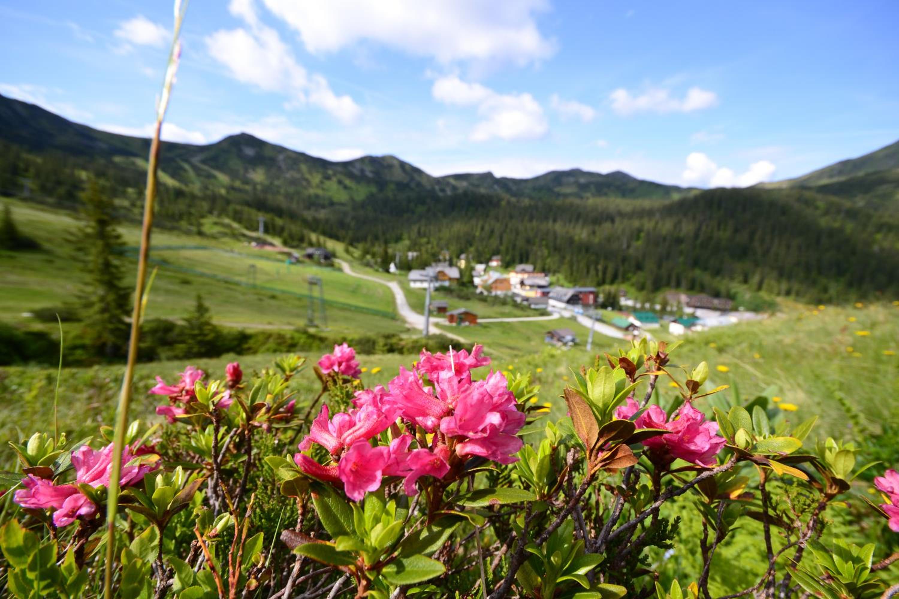 Slope-side Relaxation: Nestled at 1,600 metres in Planneralm, Grimmingblick offers direct ski slope access and stunning Wölzer Tauern views from every room.