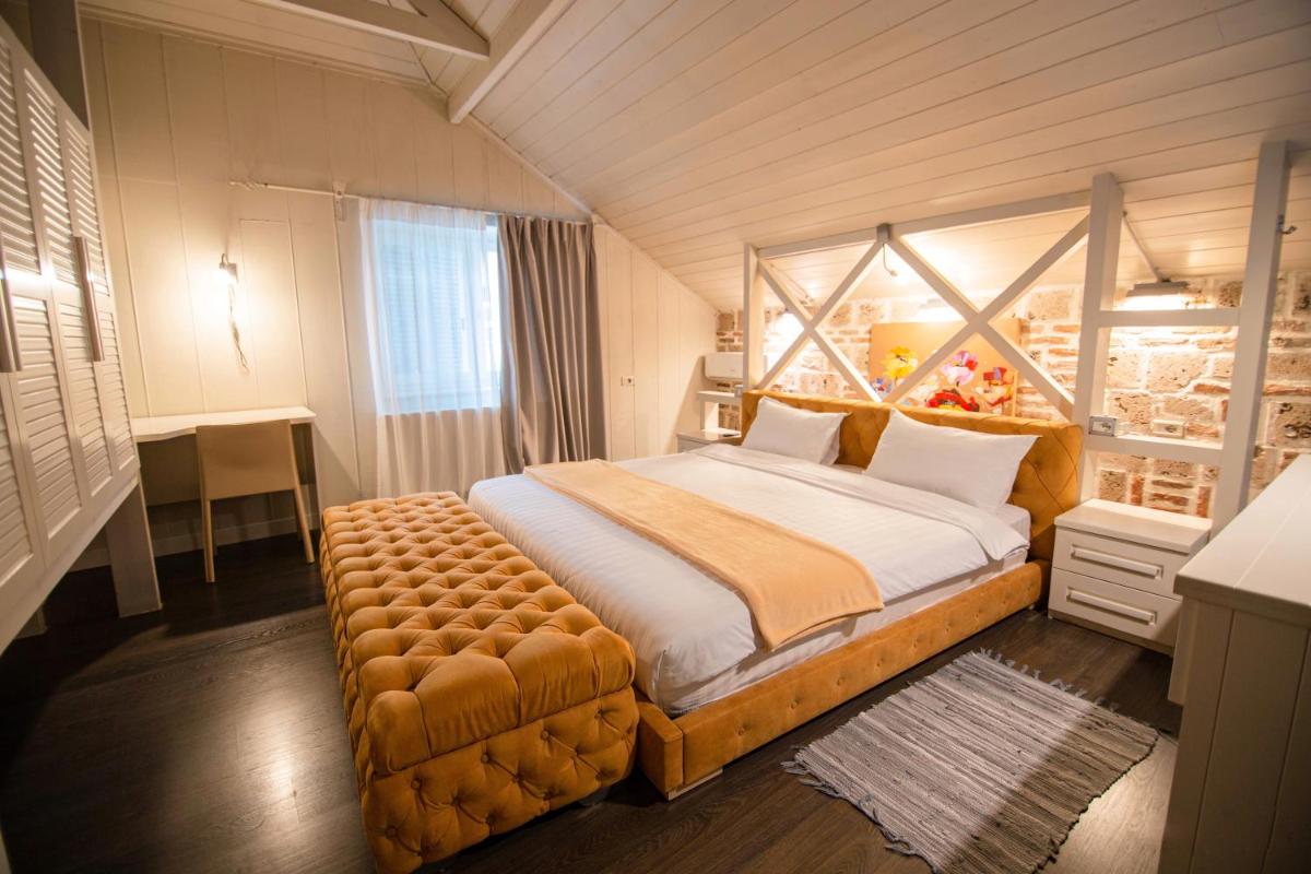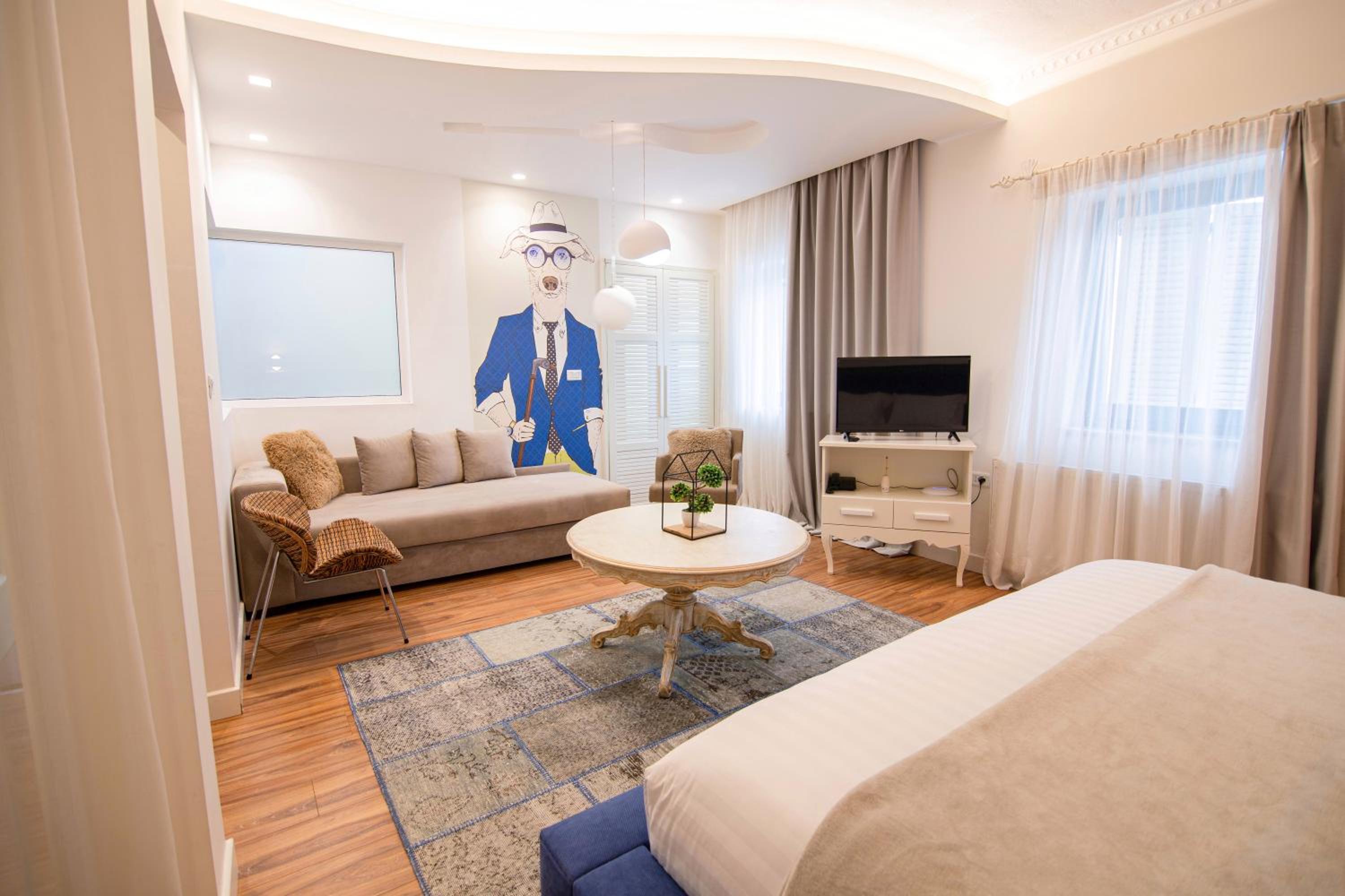 Escape to Meri Boutique Hotel in Korçë, where a tranquil garden, cozy shared lounge, and inviting terrace await. Indulge in delectable meals at the on-site restaurant and enjoy the convenience of room service and a 24-hour front desk. Immerse yourself in comfort in the well-appointed units featuring city-view balconies, spacious seating areas, and modern amenities like flat-screen TVs.