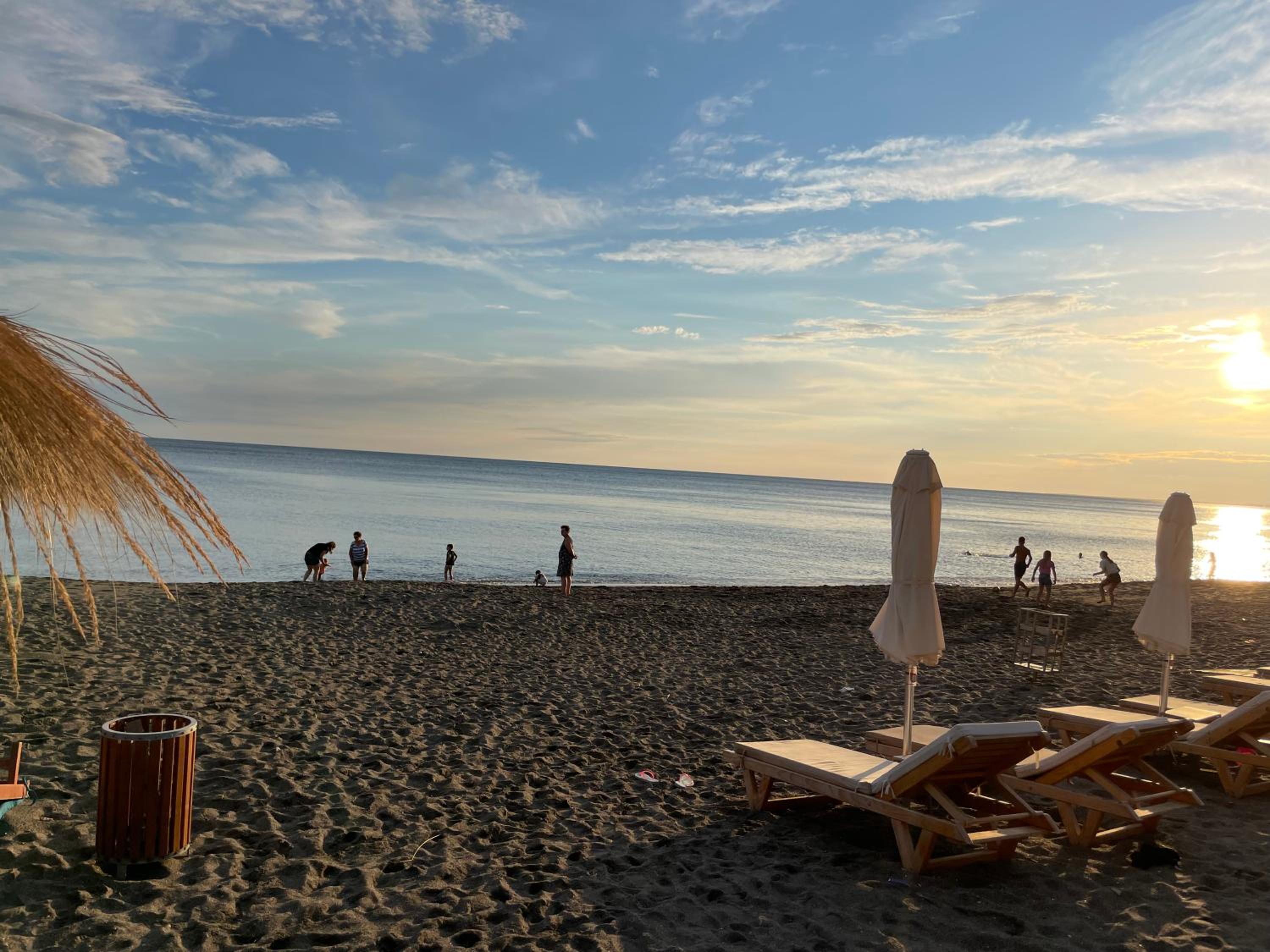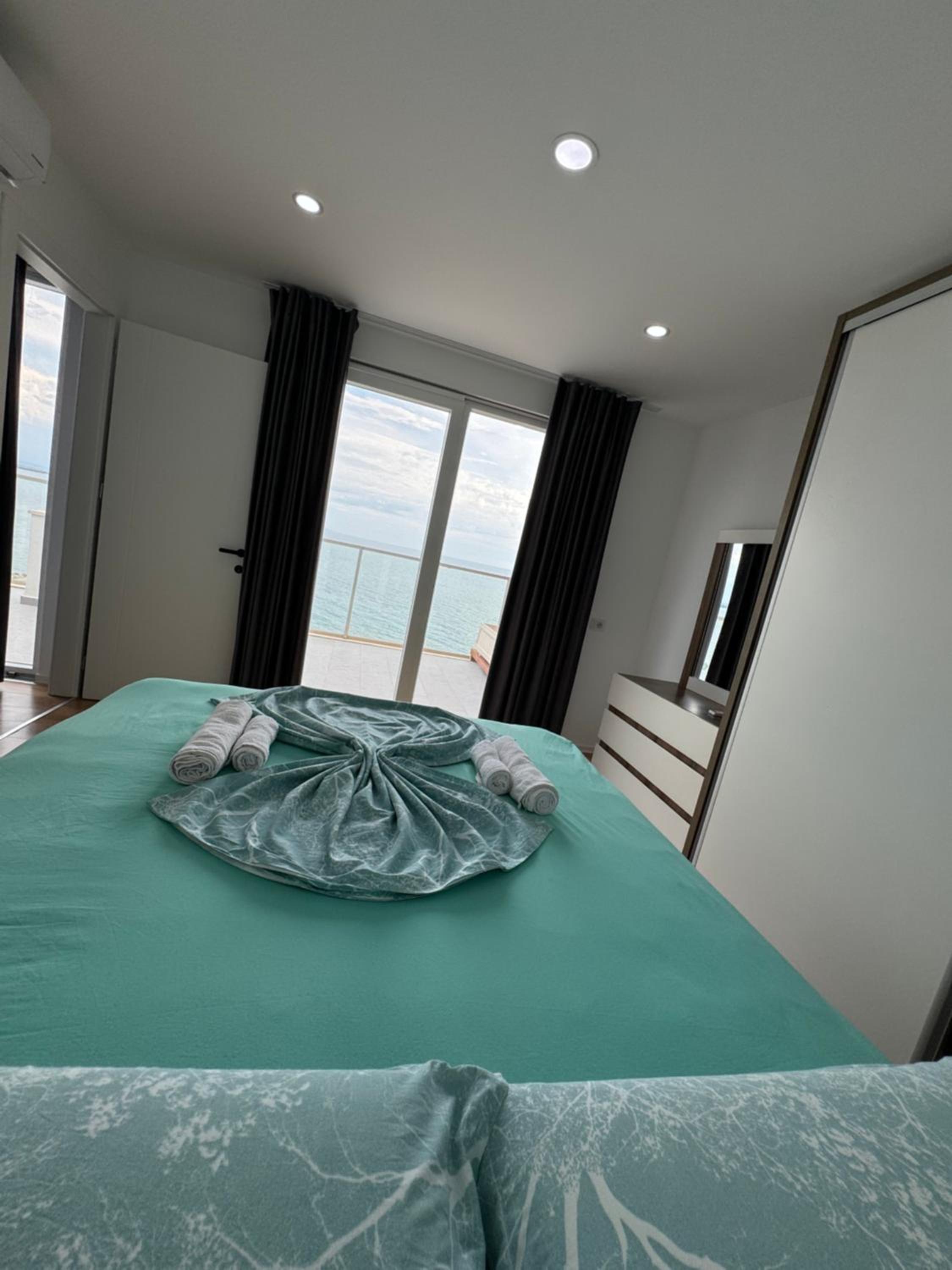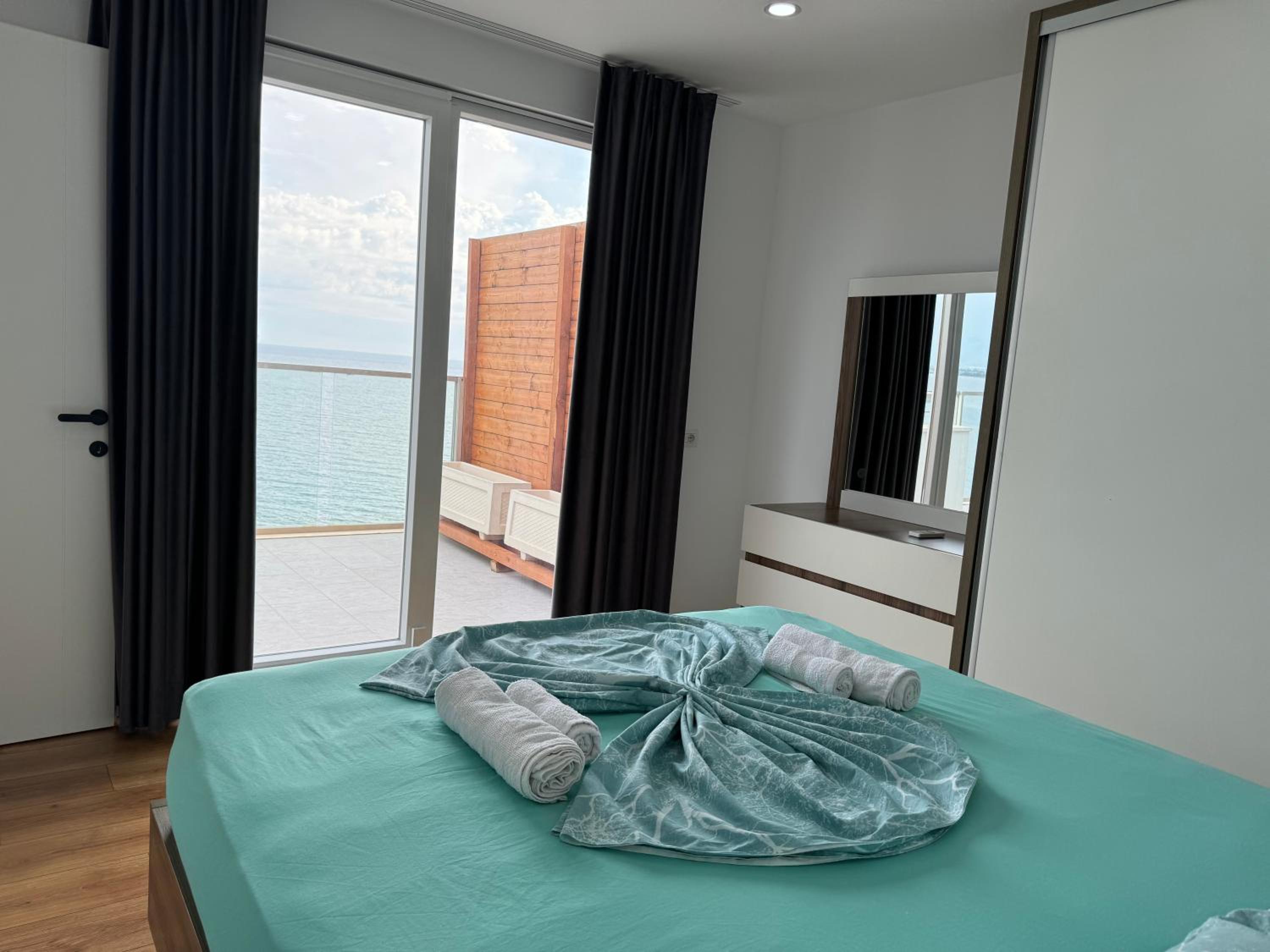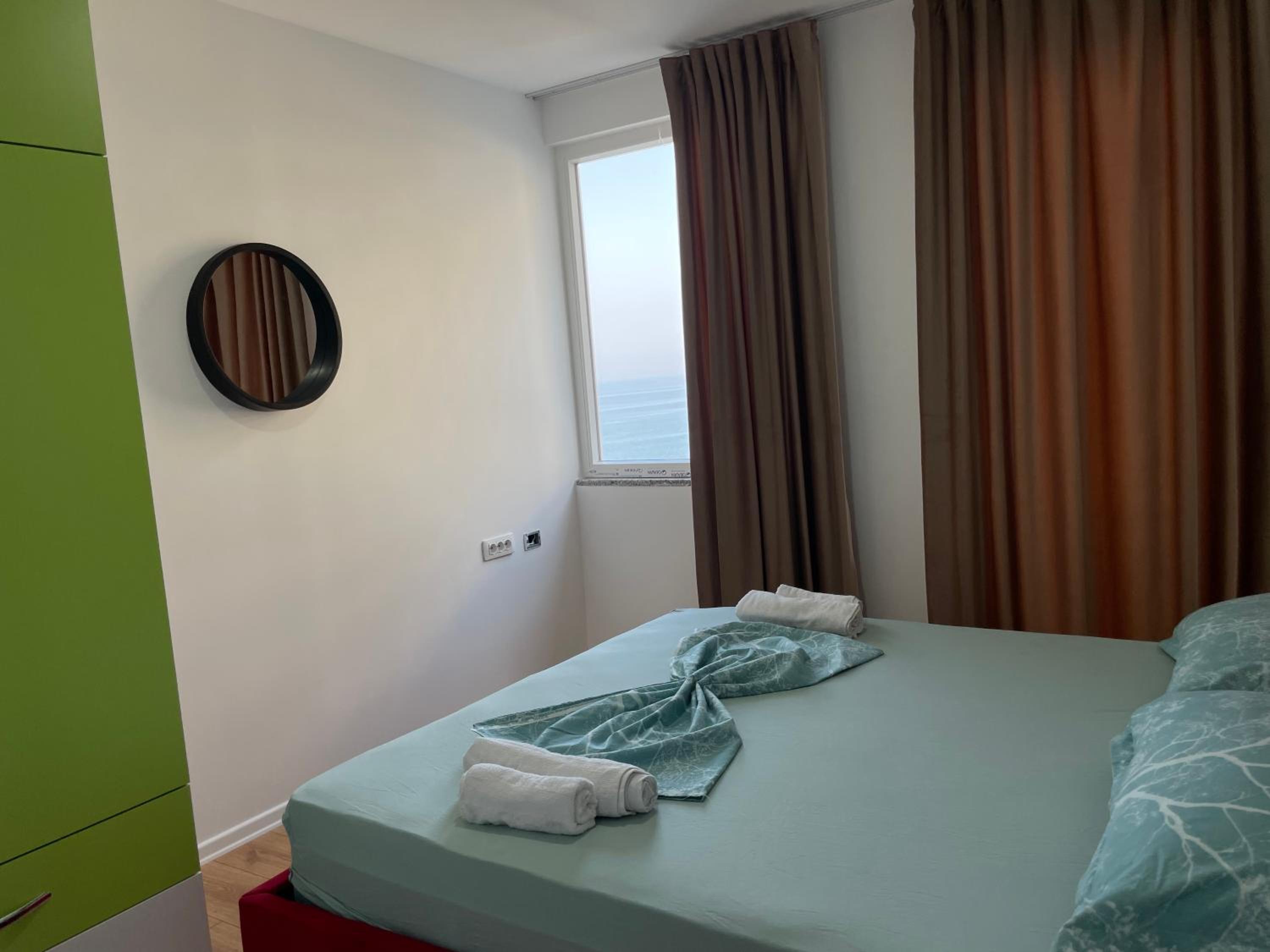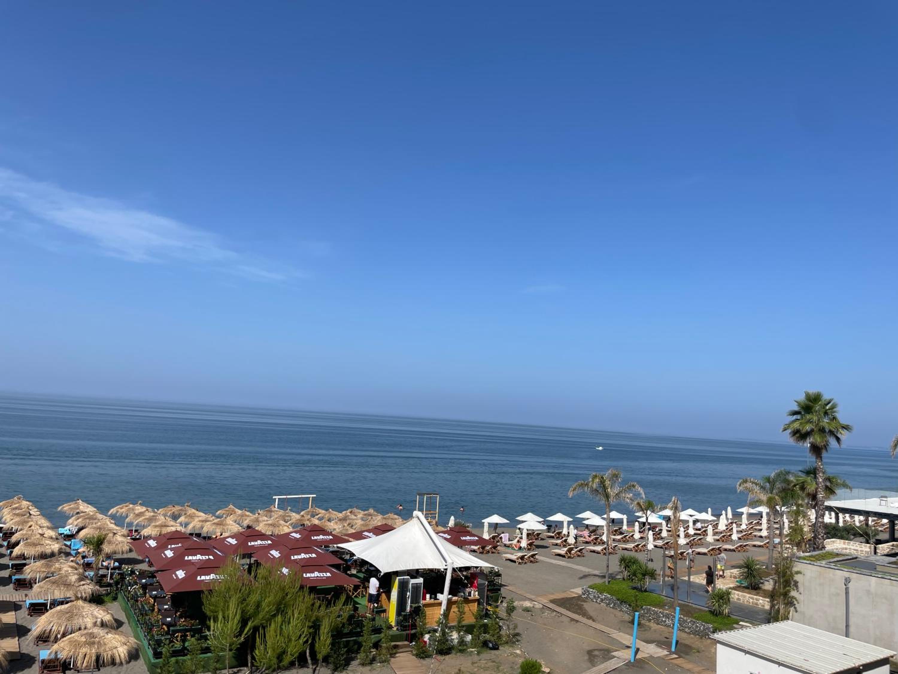 Csodás kilátás a teraszról és gyönyörű tengerpart! Nem mélyül túl gyorsan, homokos. Kedves személyzet! A teremgarázsban el lehetett helyezni az autót, volt lift, étterem, bolt és kávézó az épületben. A közelben volt pékség. Teljesen felesleges bemenni a városba boltba, nagy a forgalom és nehéz parkolni, ami kell meglehet venni helyben. Problémamantesen lehet fizetni EUR-val, a számlán alapból rajta van! normális árfolyamon és vissza is EUR-ban adnak ;) Nagyobb bolt és étterem.elfogadja a bankkártyákat is. Az apartman jól felszerelt, nyugati színvonalú úgy ahogy a képeken van. Zárt szinten vannak az apartmannok, nincs átjáróház :)