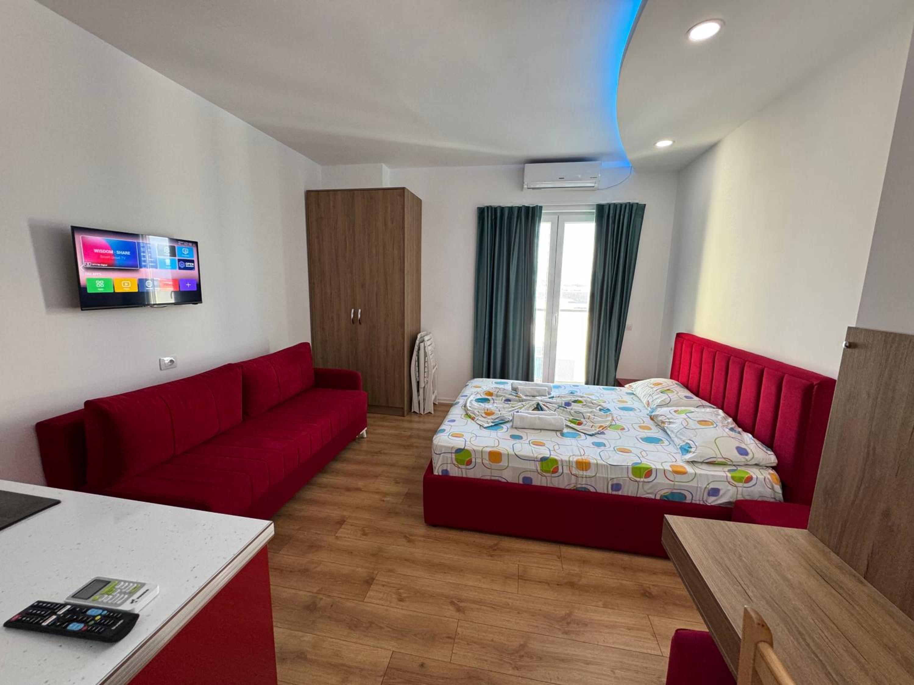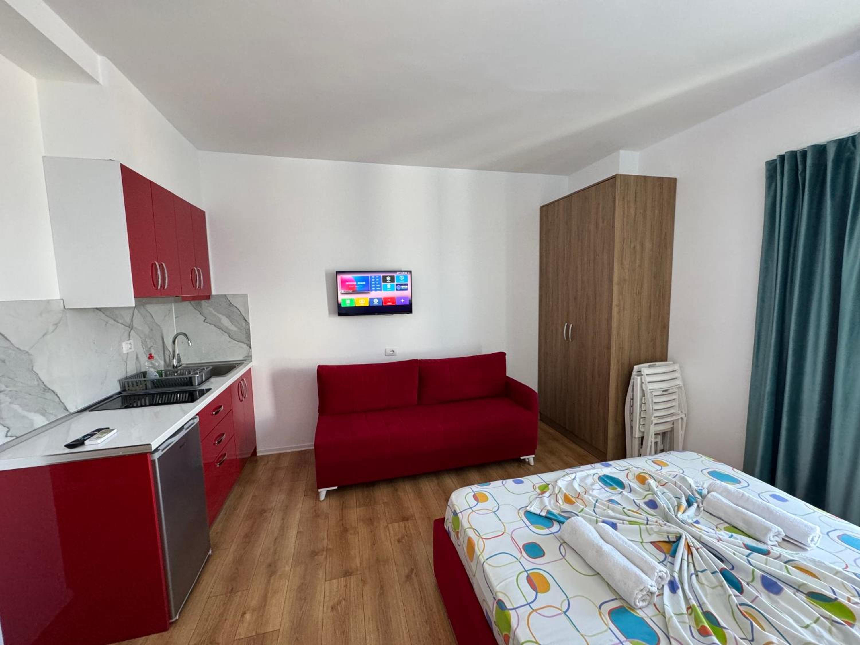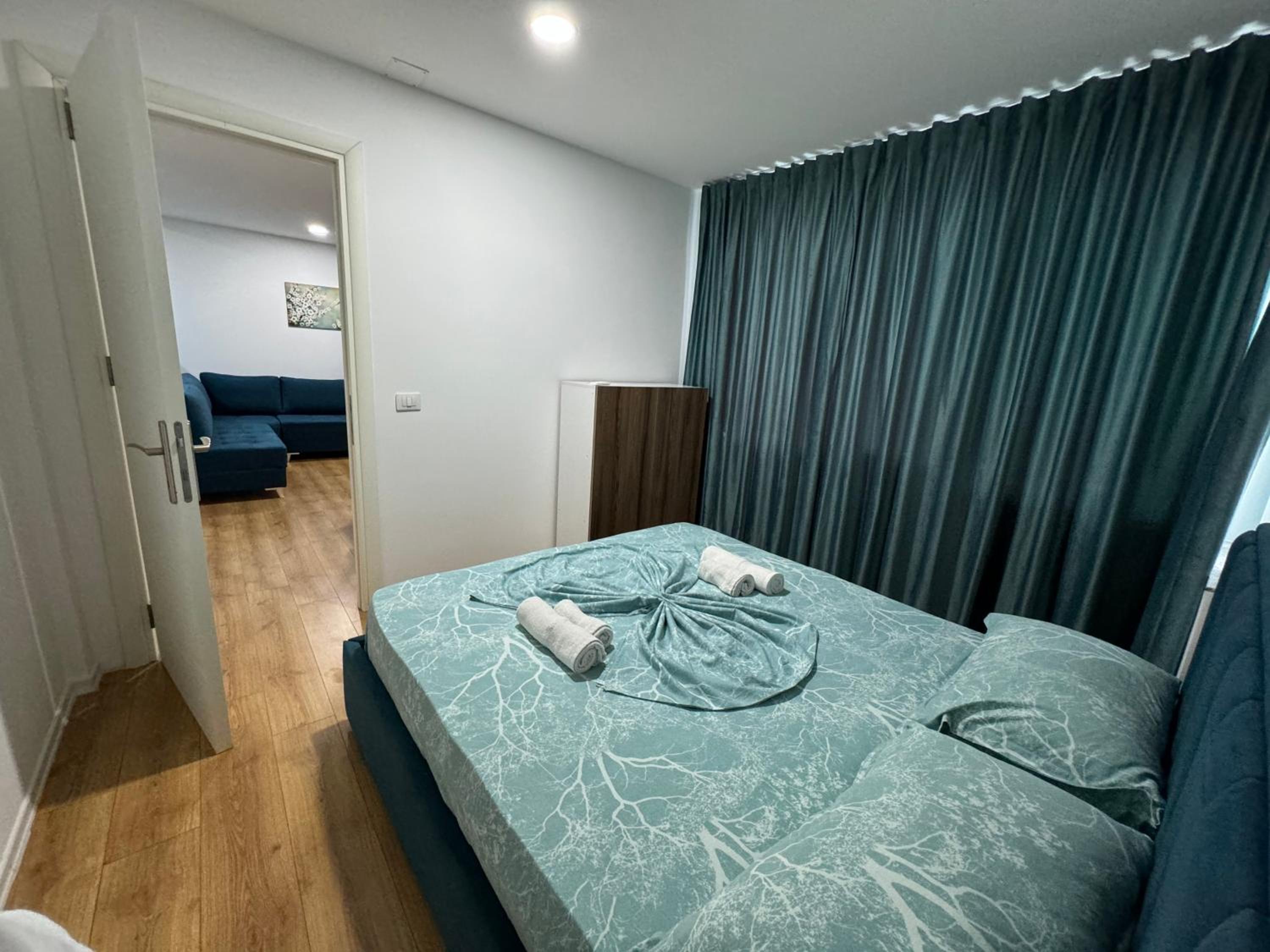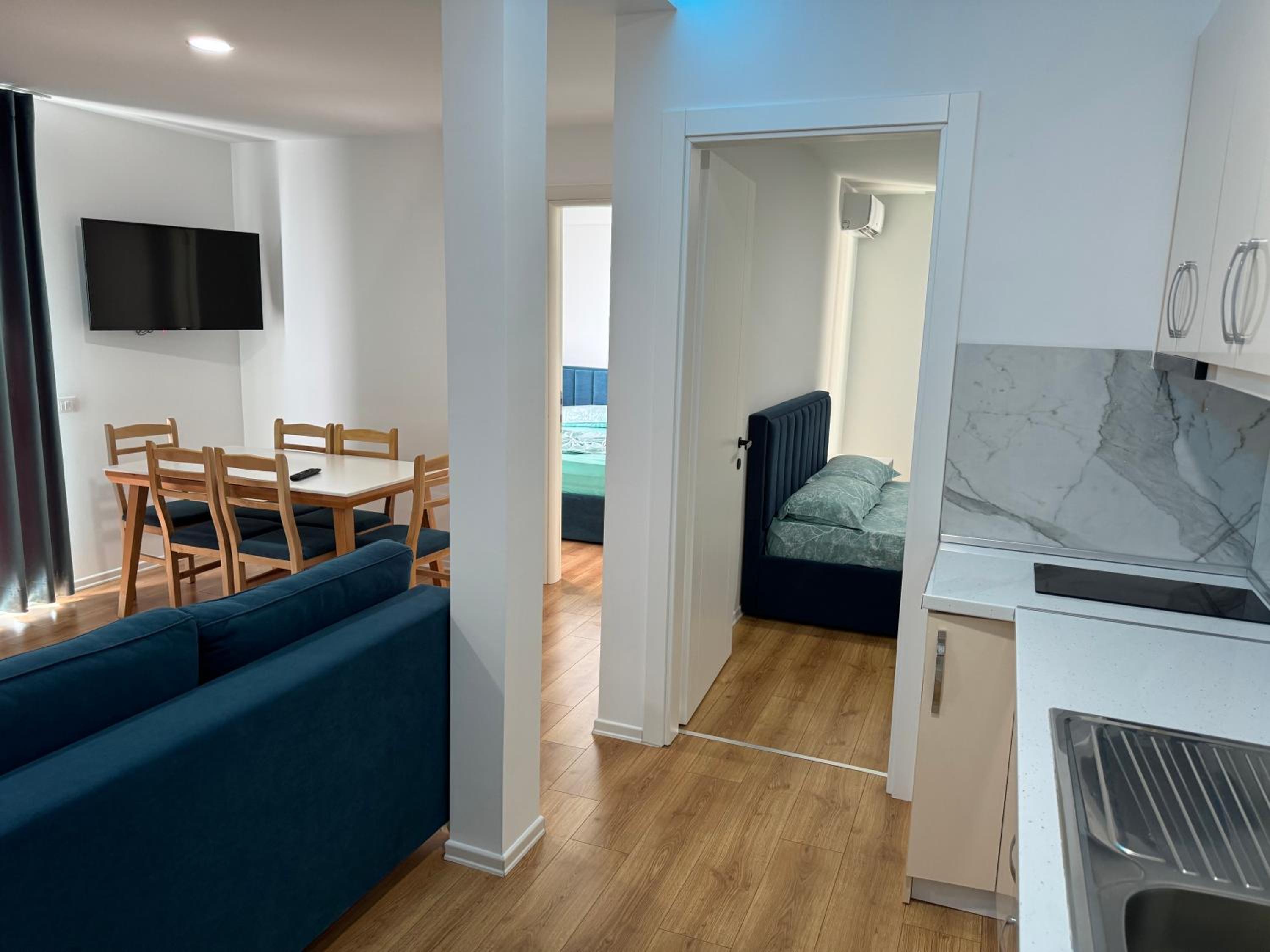 Our stay at Suite Rana Hedhun was perfect. The location is amazing — the most beautiful part of the beach in Shengjin is right in front of the apartment. The beach is clean and beautiful. It’s in a quiet area, yet you still have everything you need nearby. There are several restaurants right in front of the apartment and along the beach. You can reach everything by foot.