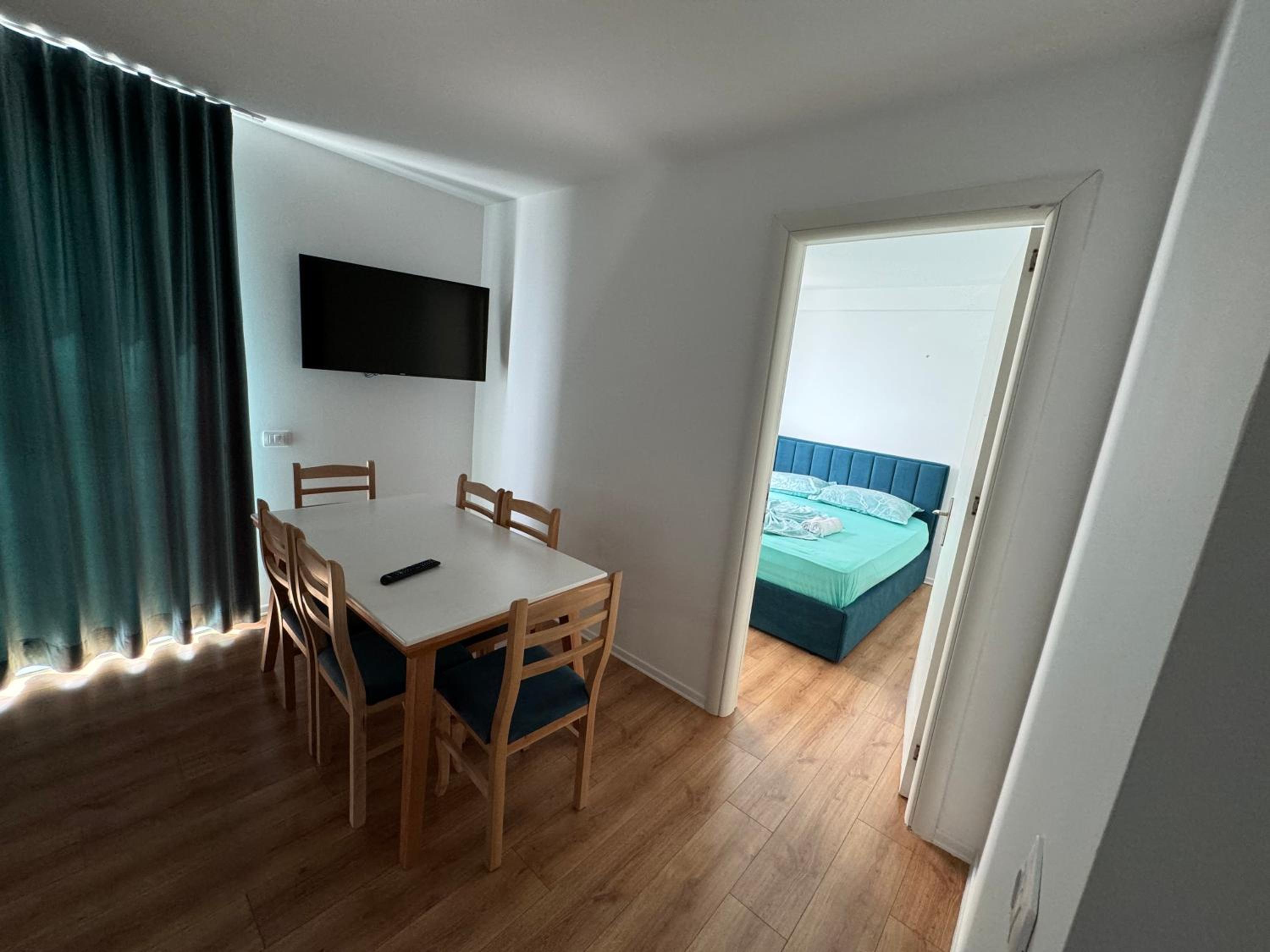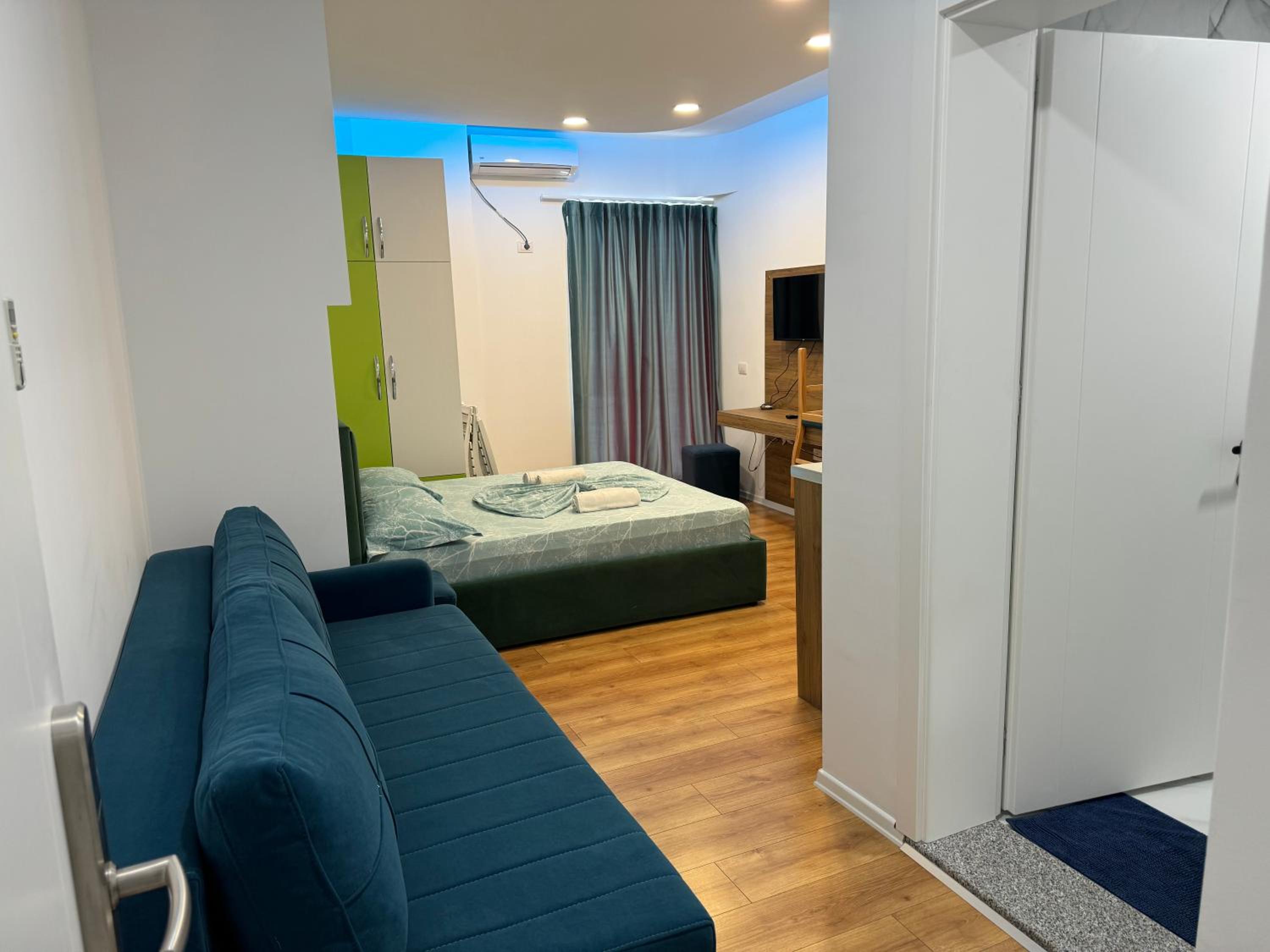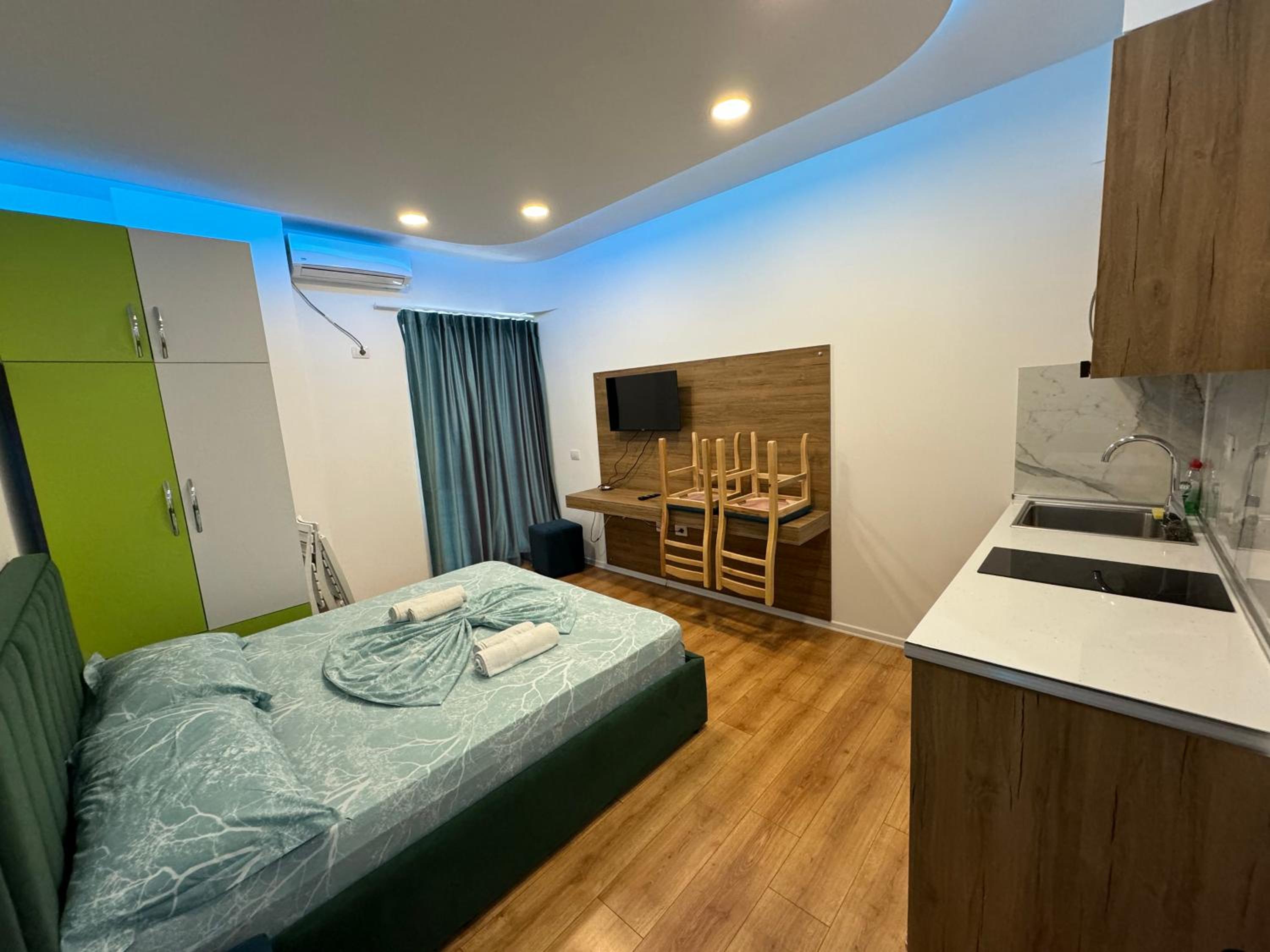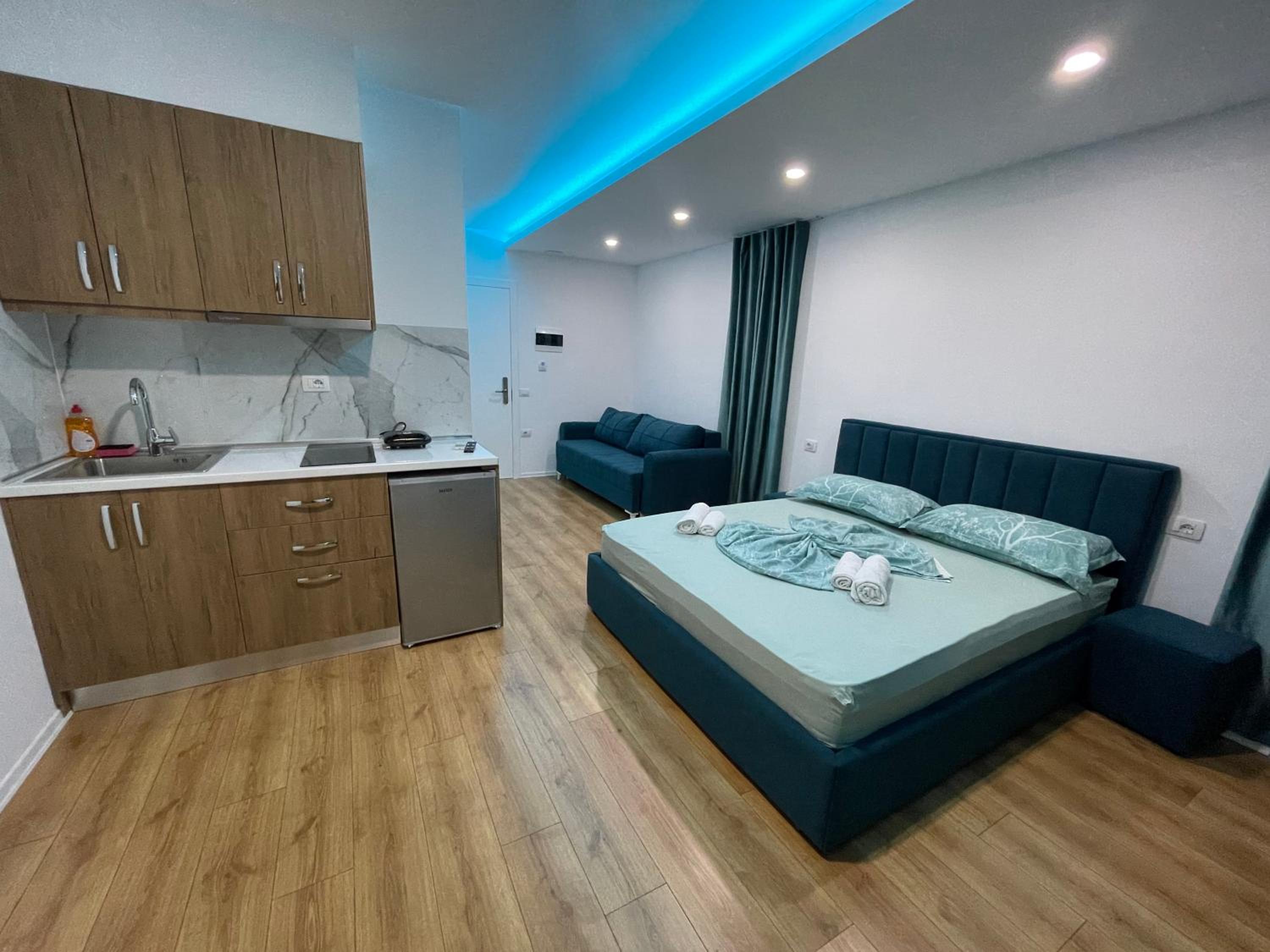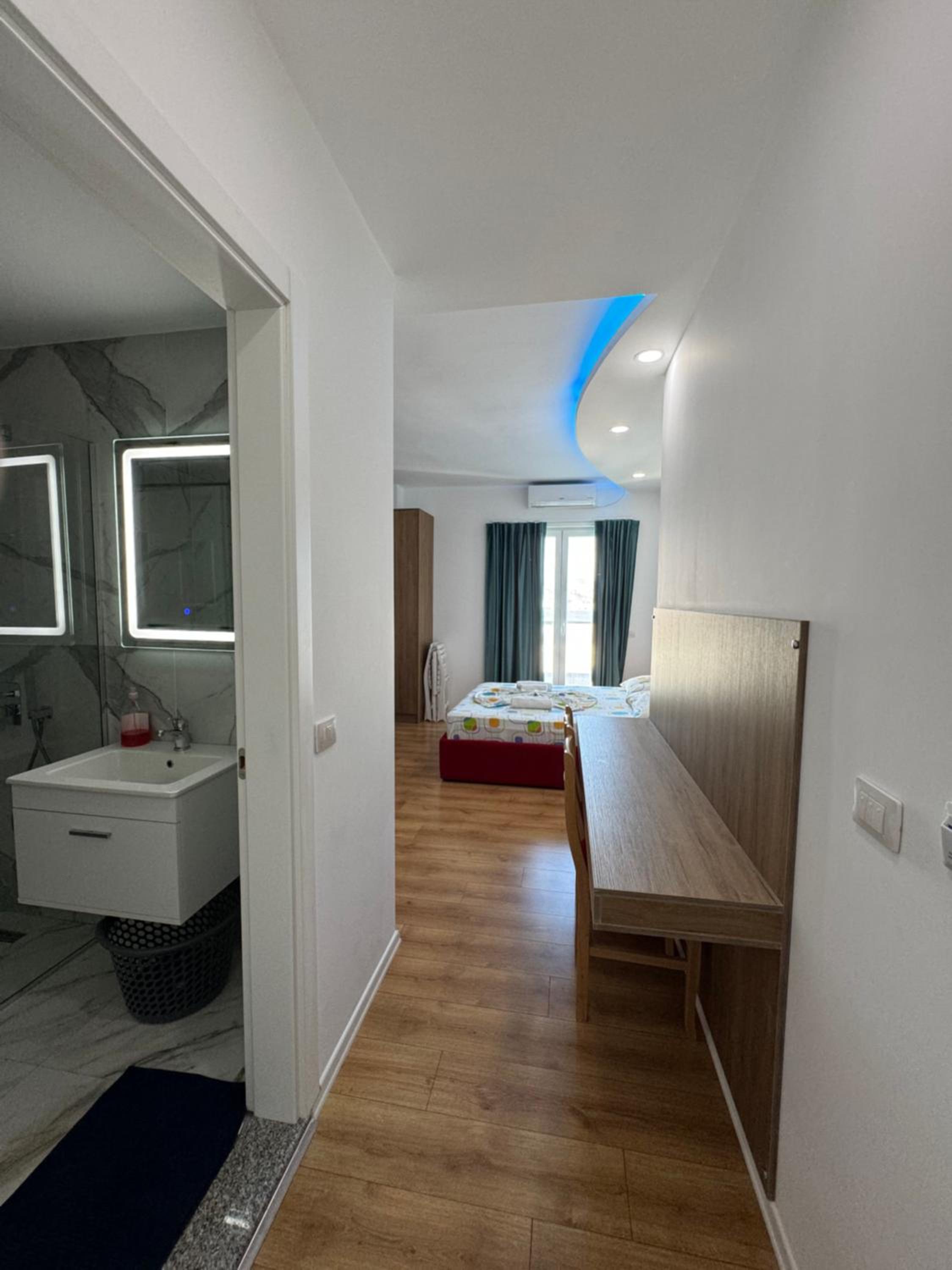 Our stay at Suite Rana Hedhun was perfect. The location is amazing — the most beautiful part of the beach in Shengjin is right in front of the apartment. The beach is clean and beautiful. It’s in a quiet area, yet you still have everything you need nearby. There are several restaurants right in front of the apartment and along the beach. You can reach everything by foot.