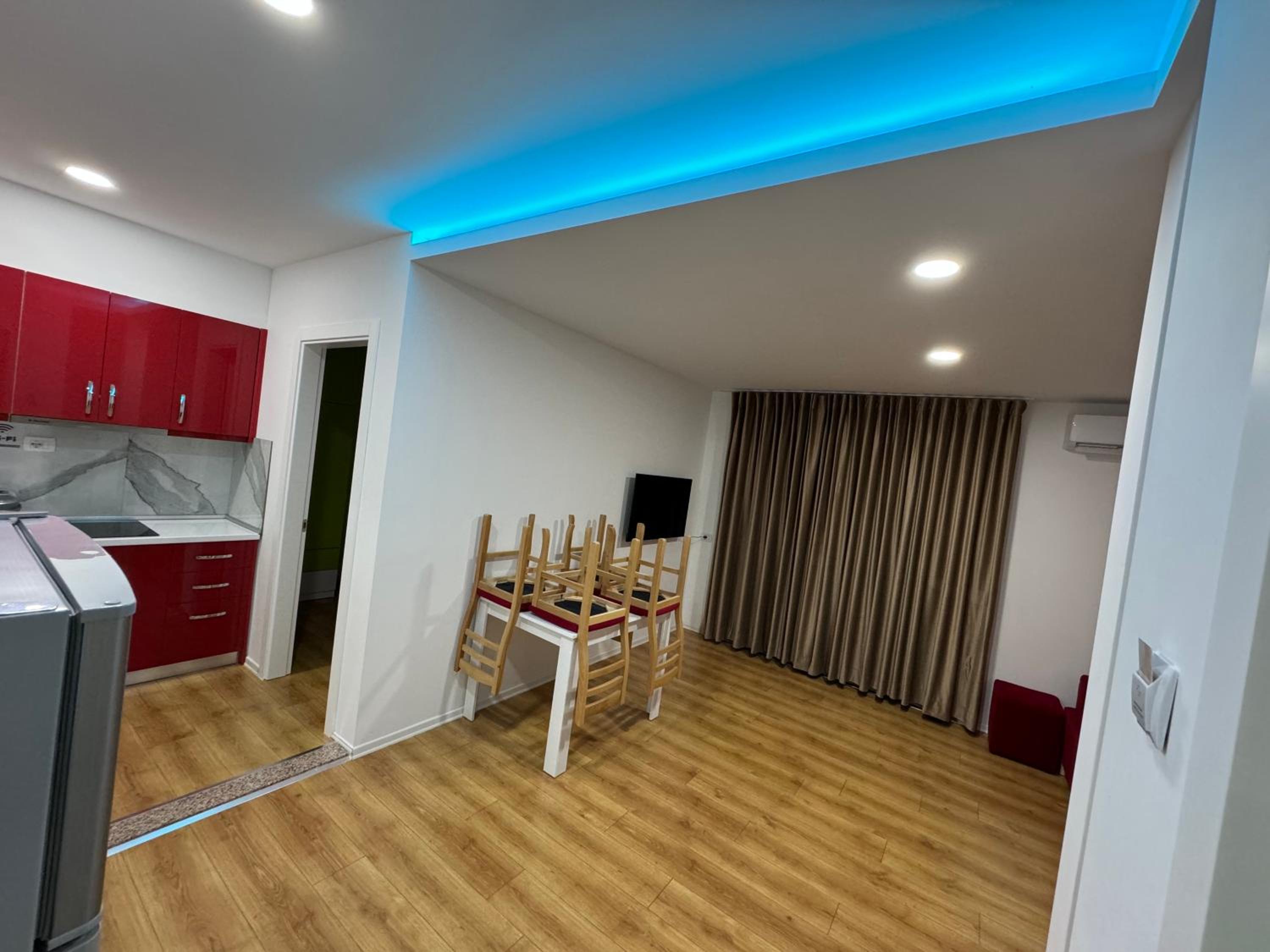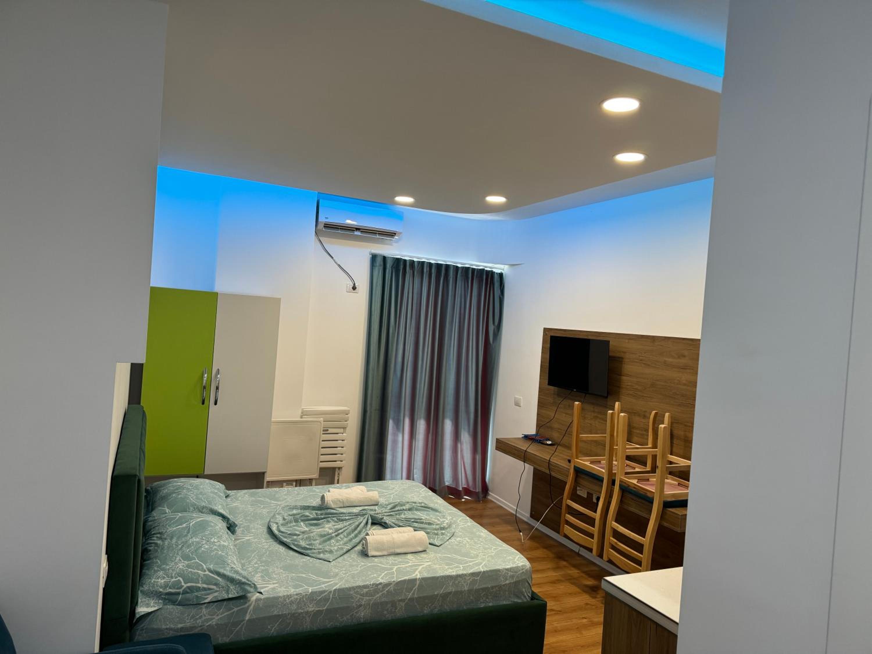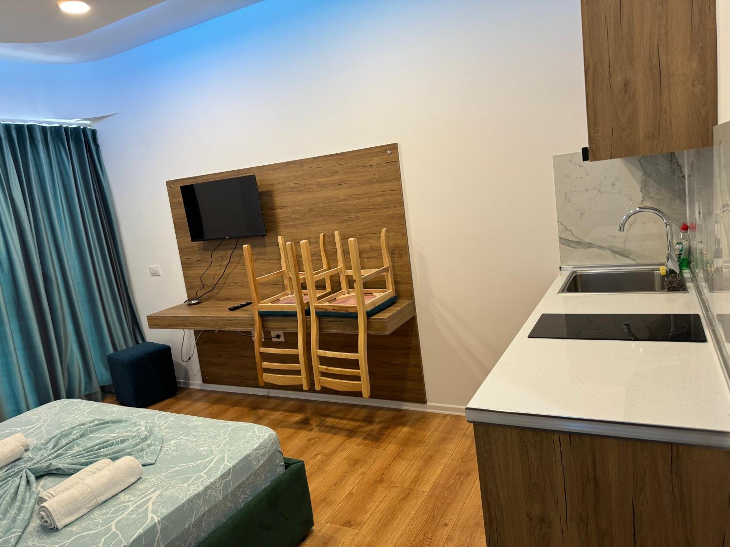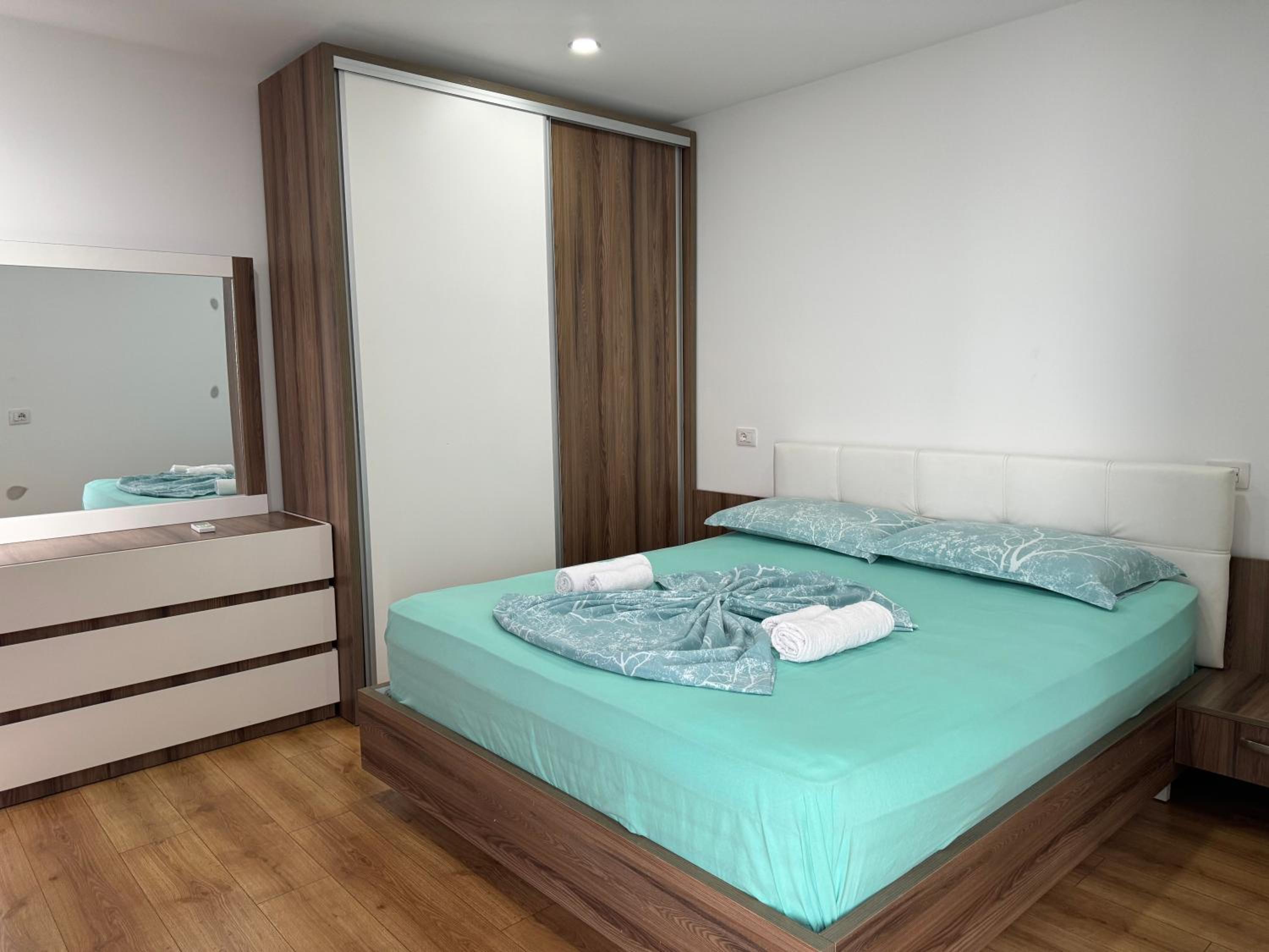 Our stay at Suite Rana Hedhun was perfect. The location is amazing — the most beautiful part of the beach in Shengjin is right in front of the apartment. The beach is clean and beautiful. It’s in a quiet area, yet you still have everything you need nearby. There are several restaurants right in front of the apartment and along the beach. You can reach everything by foot.