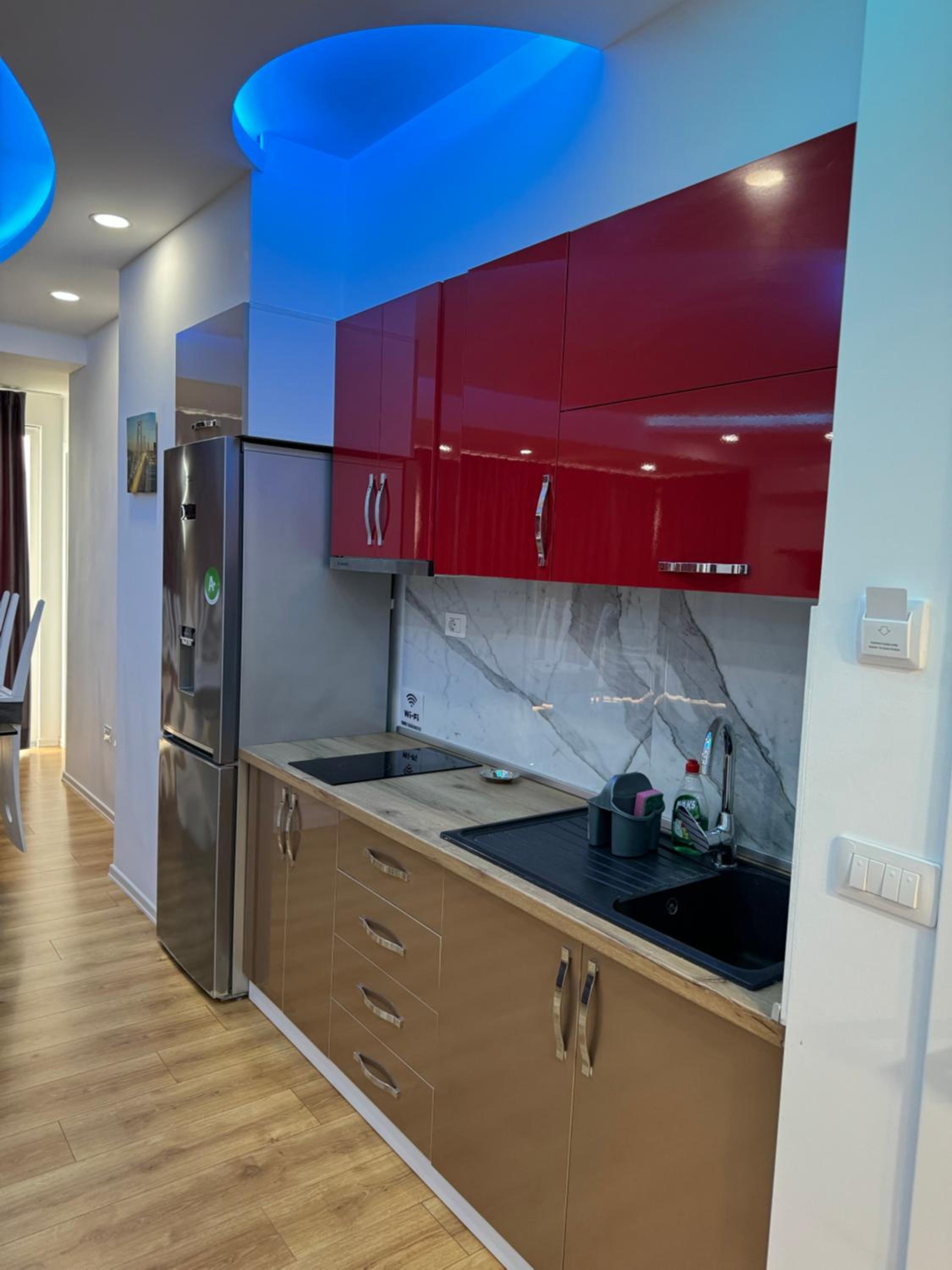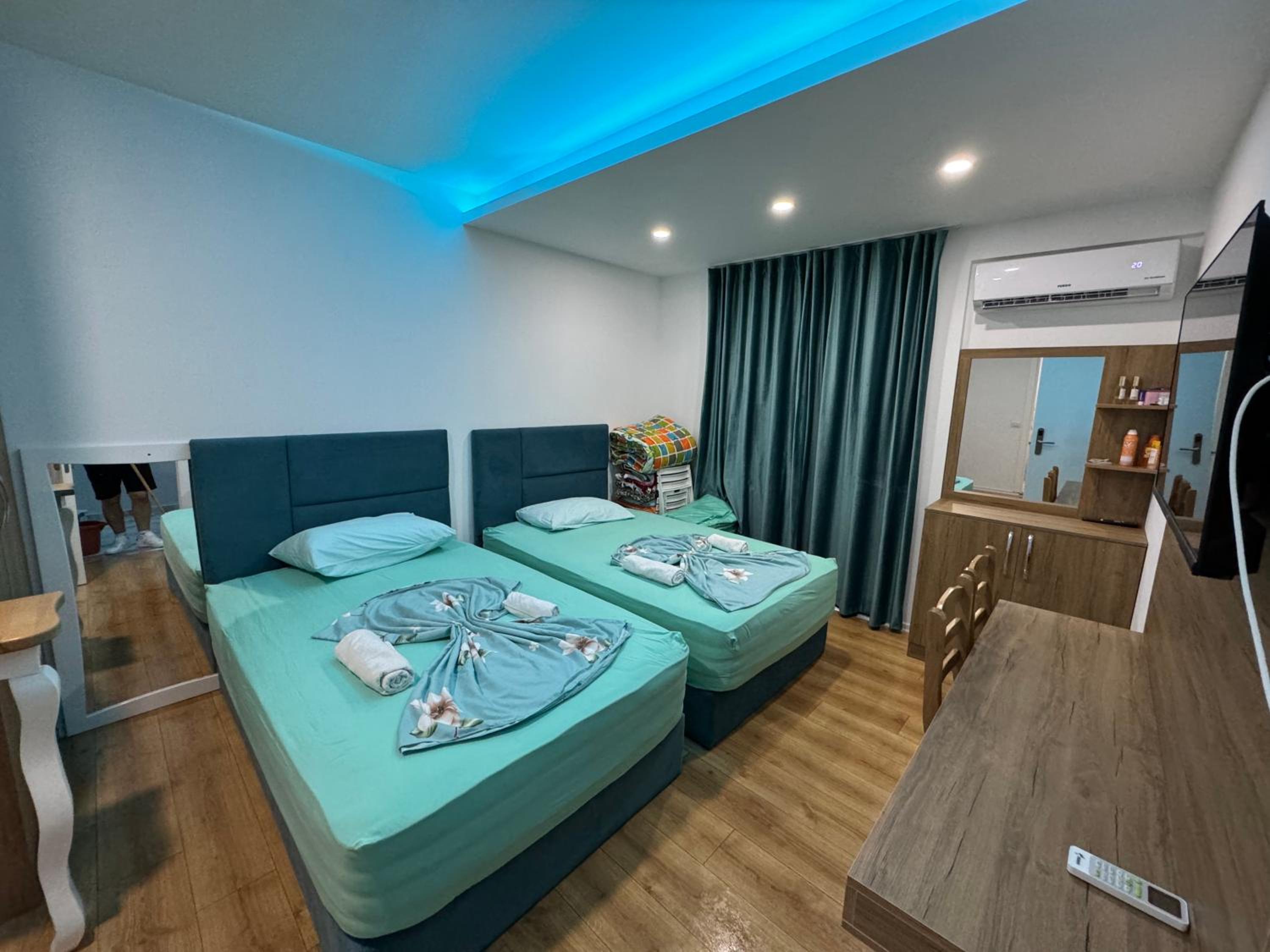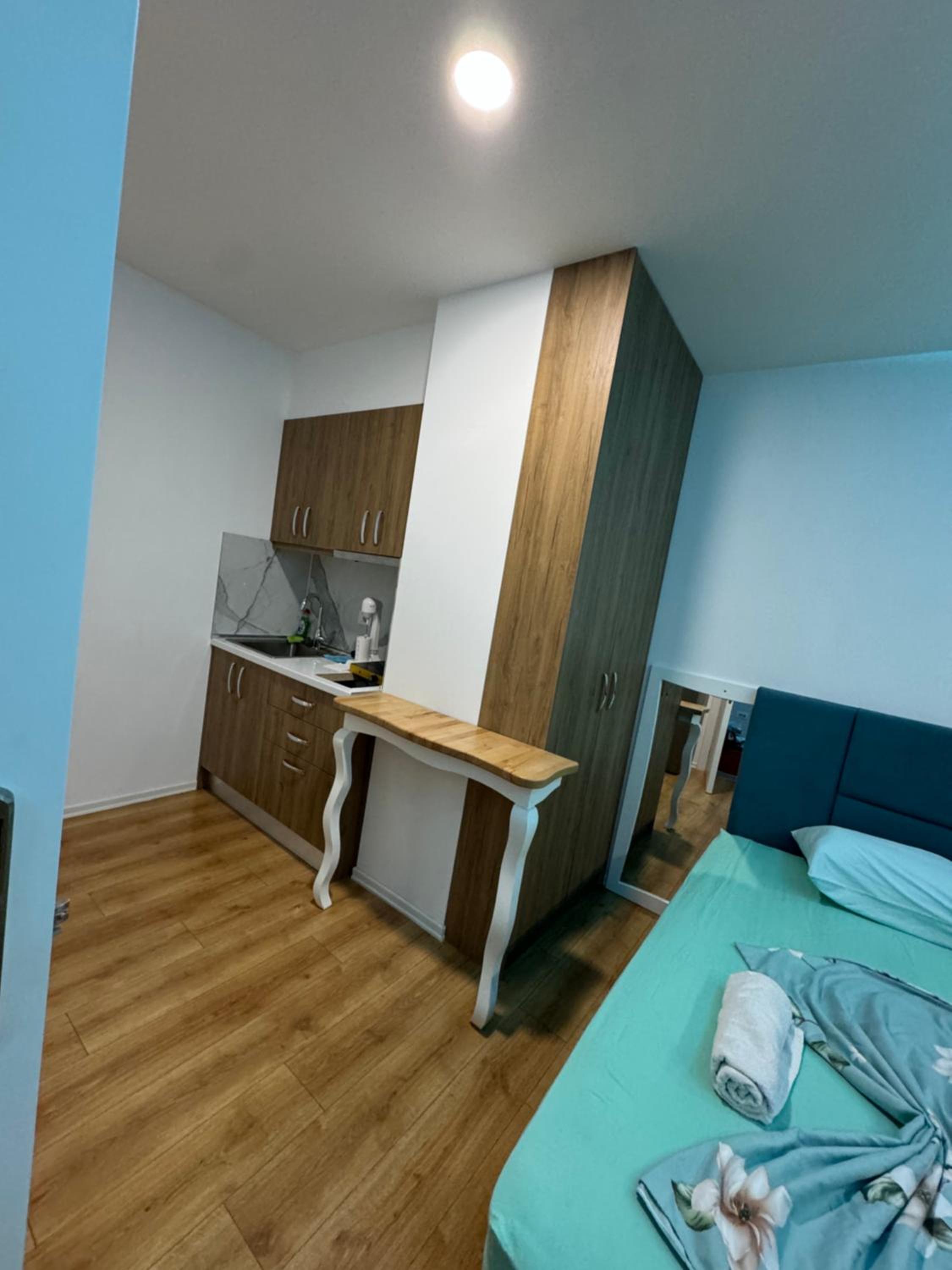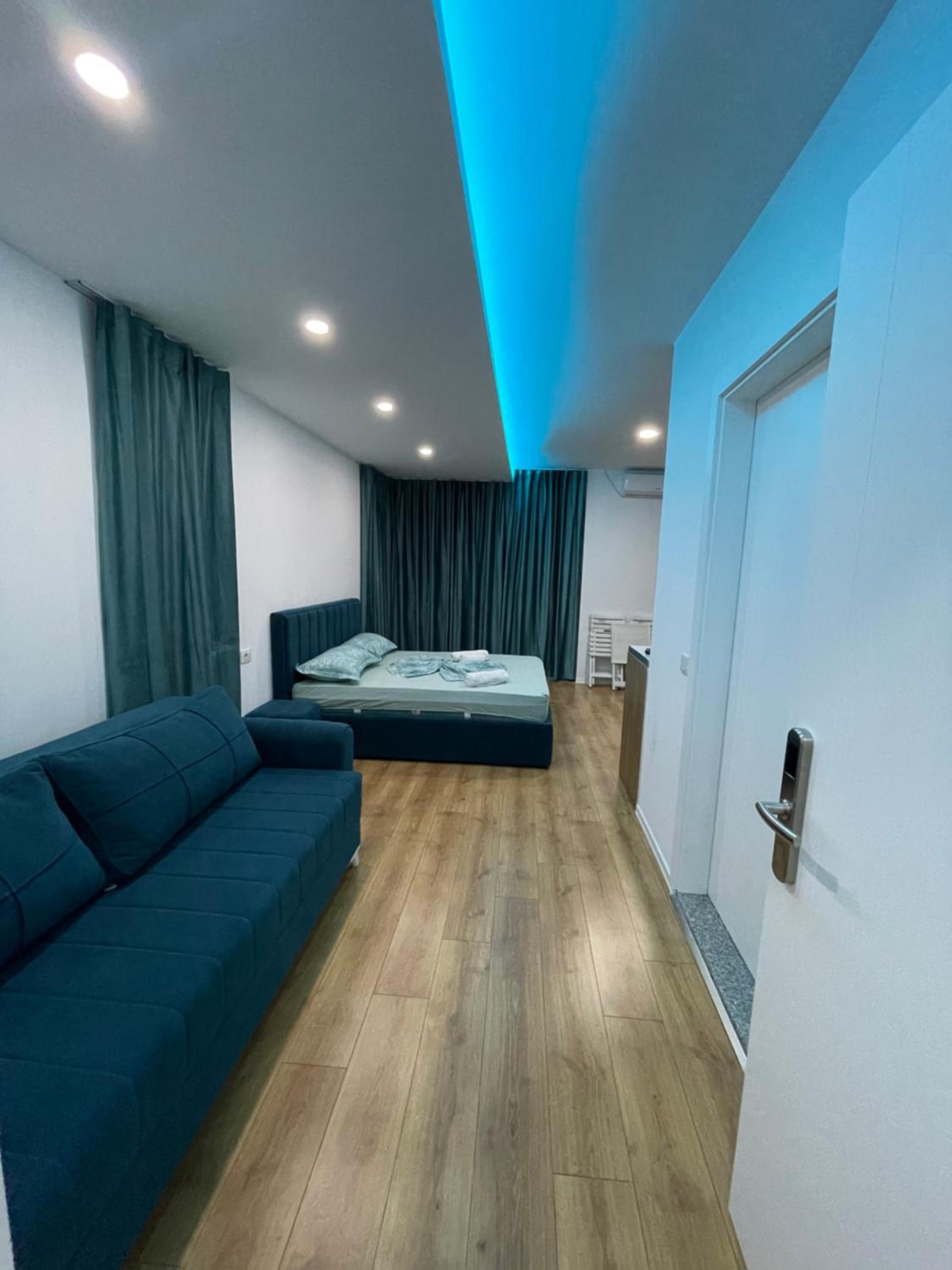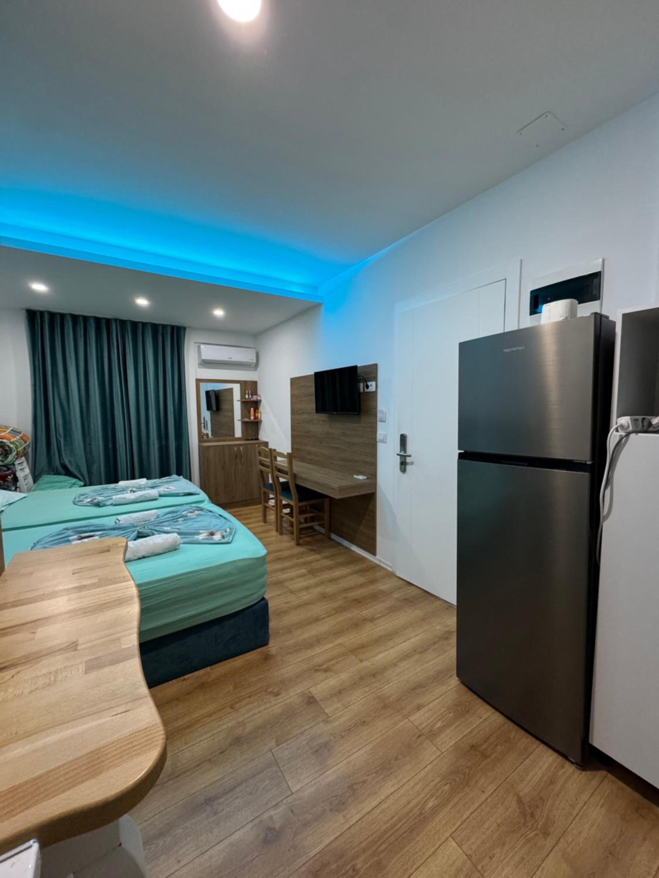 Our stay at Suite Rana Hedhun was perfect. The location is amazing — the most beautiful part of the beach in Shengjin is right in front of the apartment. The beach is clean and beautiful. It’s in a quiet area, yet you still have everything you need nearby. There are several restaurants right in front of the apartment and along the beach. You can reach everything by foot.