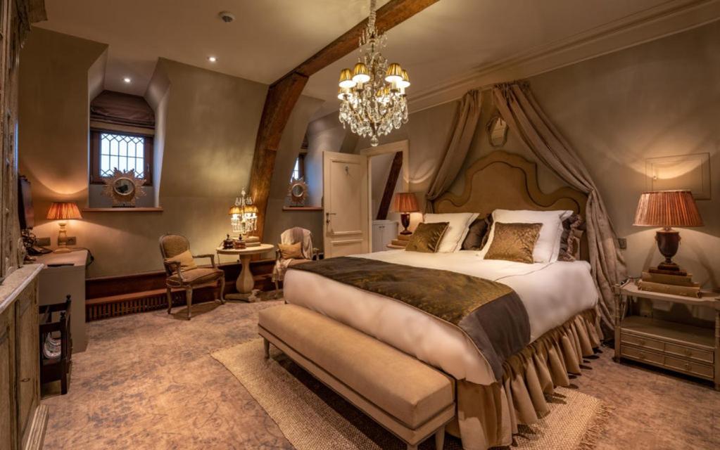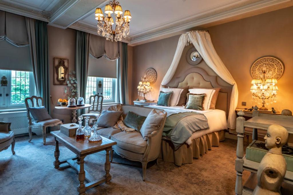 Kasteel van Ordingen, located in Sint-Truiden, offers 5-star accommodation with a spa center. The rooms are elegantly furnished with modern amenities including a flat-screen TV, private bathroom, and coffee machine.