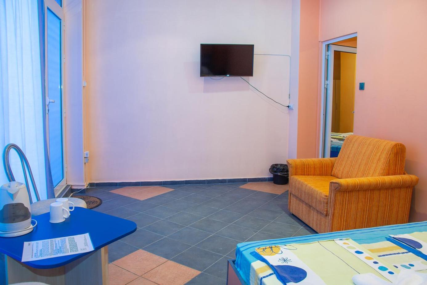 Приветливи домакини,в близост до центъра и плажове,паркинг безплатен и магазини в близост до хотела. Чувствахме се като удома.Благодарим!