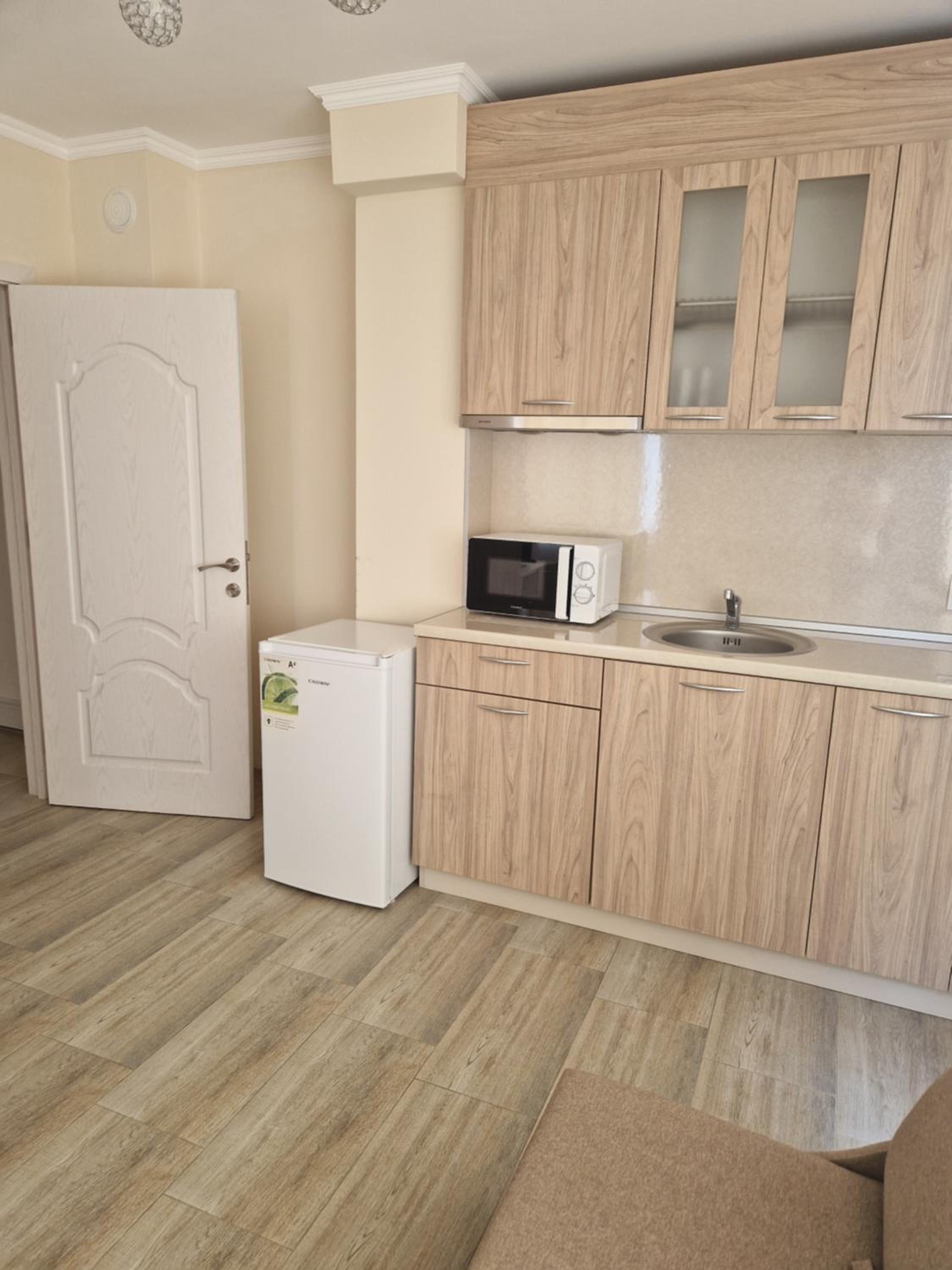 Kuchnia w apartamencie okazała sie tylko pustymi meblami kuchennymi, bez żadnych sztućców, talerzy ani kubków. Były jedynie 4 szklanki na wodę, czajnik i mikrofalowka. Wszysto musieliśmy zakupić sobie na miejscu.