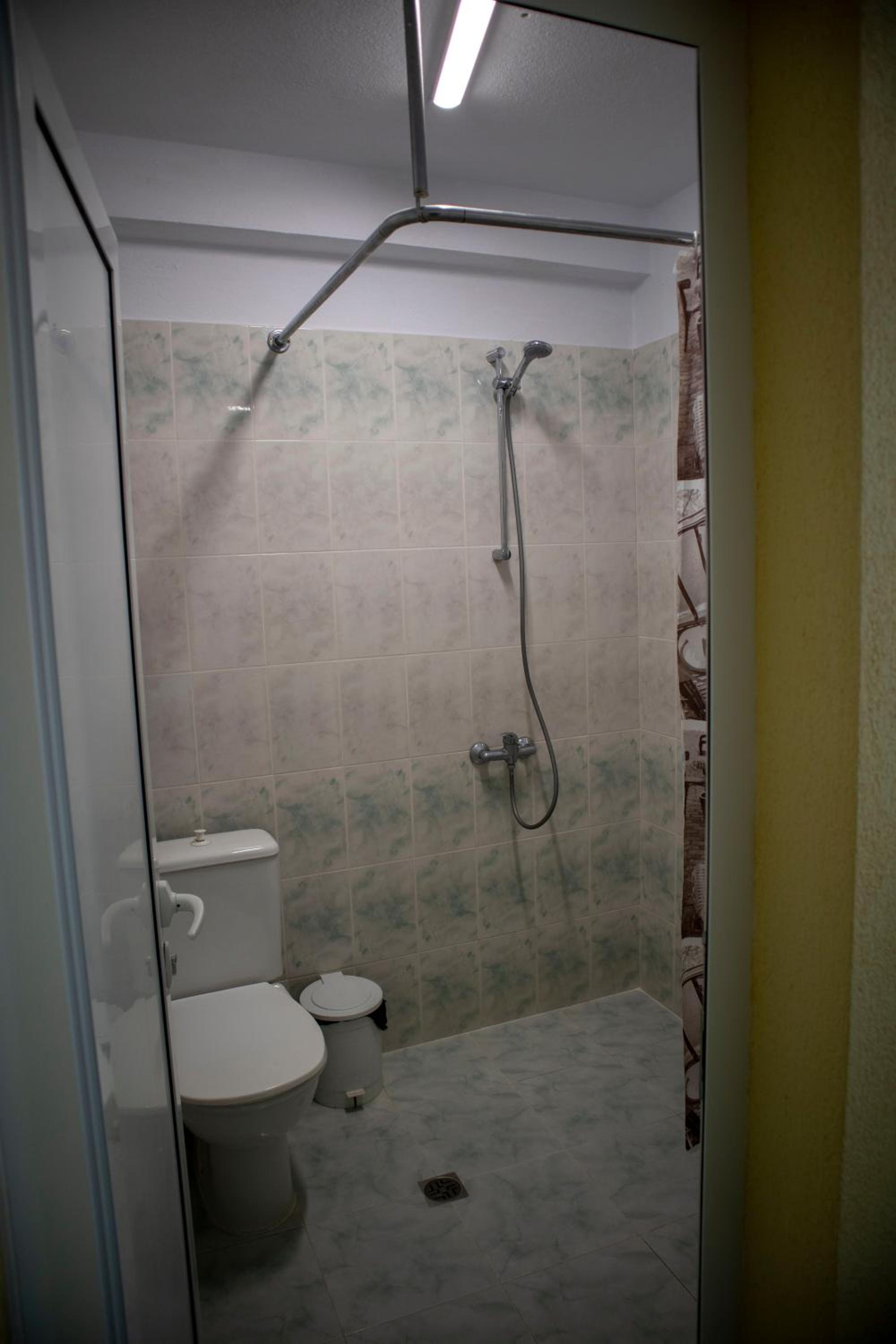 Банята беше отделно от стаята в коридор с още стаи.