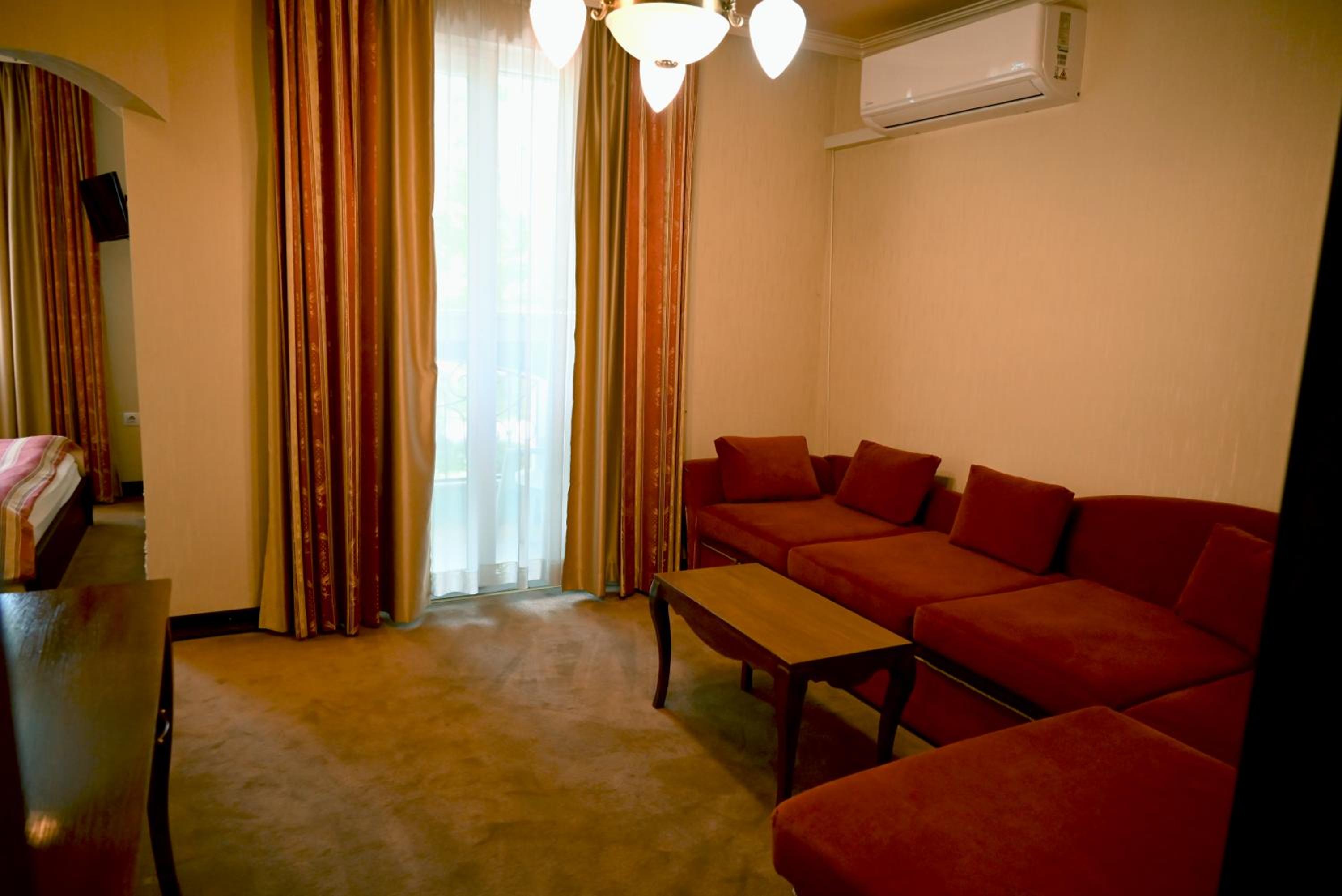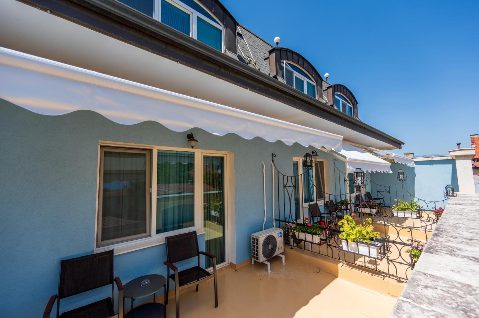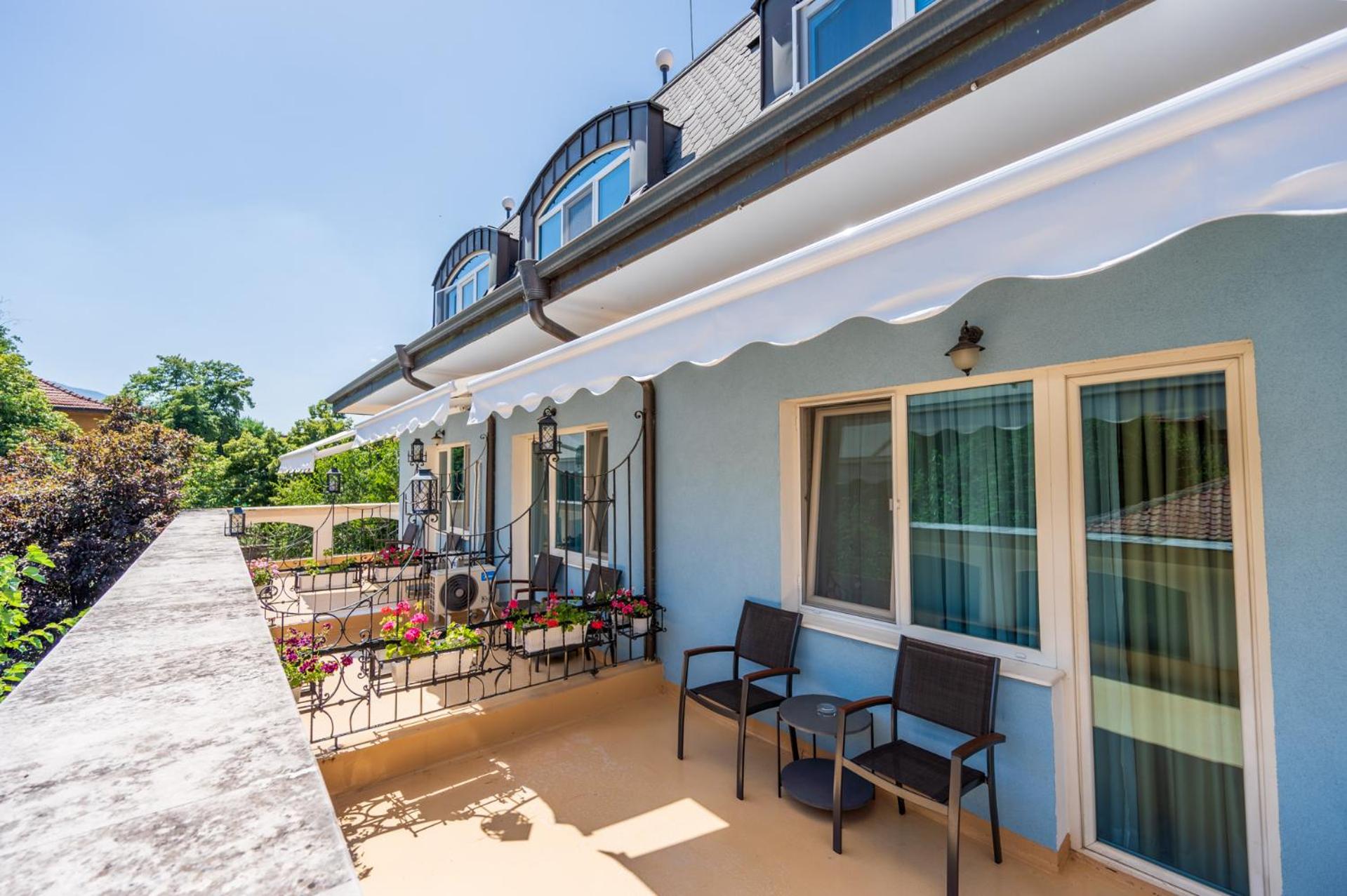 Luxurious Garden and Terrace: Enjoy the serene ambiance of Hotel Lazur's lush garden and relaxing terrace, perfect for unwinding after a day of exploring Kyustendil.
