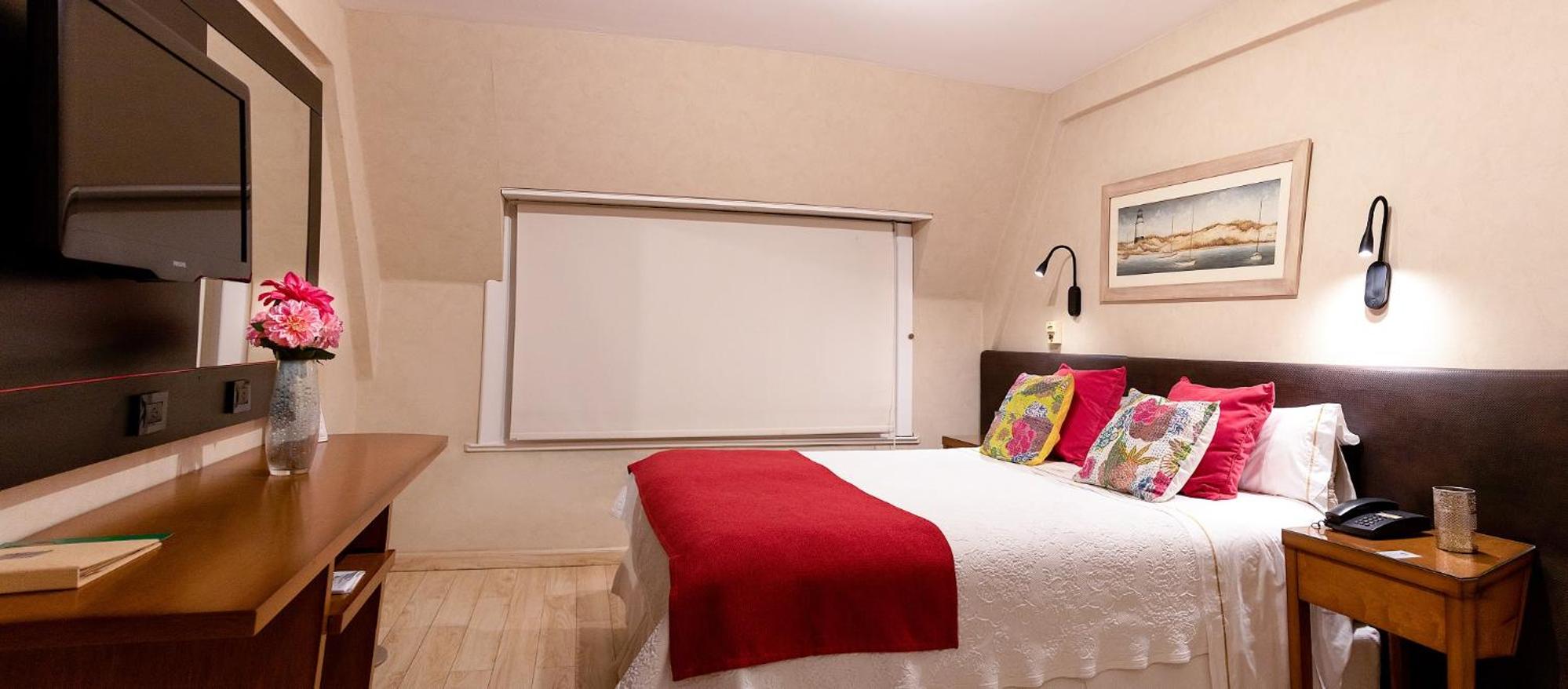 Creo que para ser un 4 estrellas el establecimiento está bastante flojo. La ducha no es buena, el wifi funciona mal, la televisión antigua, el frigobar es solo una mini heladera donde podés guardar cosas. Además el placard tenía olor a humedad y las instalaciones se sienten descuidadadas en general (basta con ver la fachada del hotel).