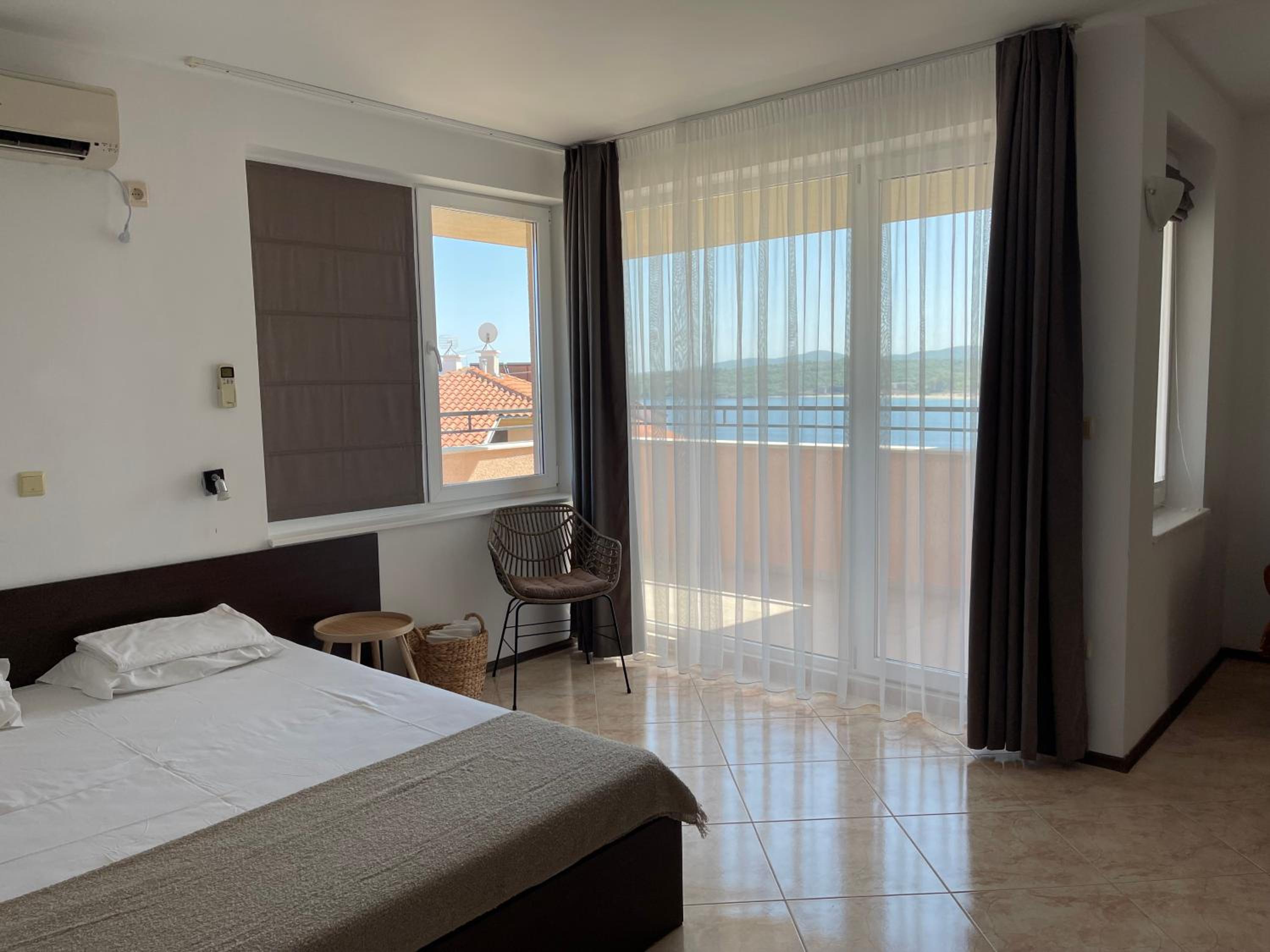 Прекрасна гледка към морето. Усмихнат и учтив персонал. Чистота. Прекрасно място за почивка. Бихме дошли отново.