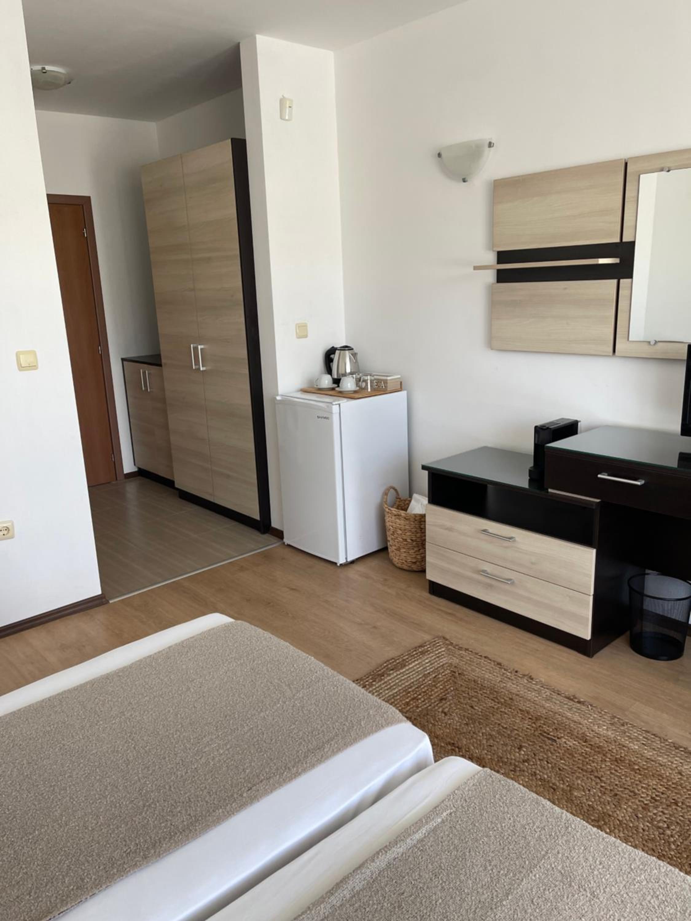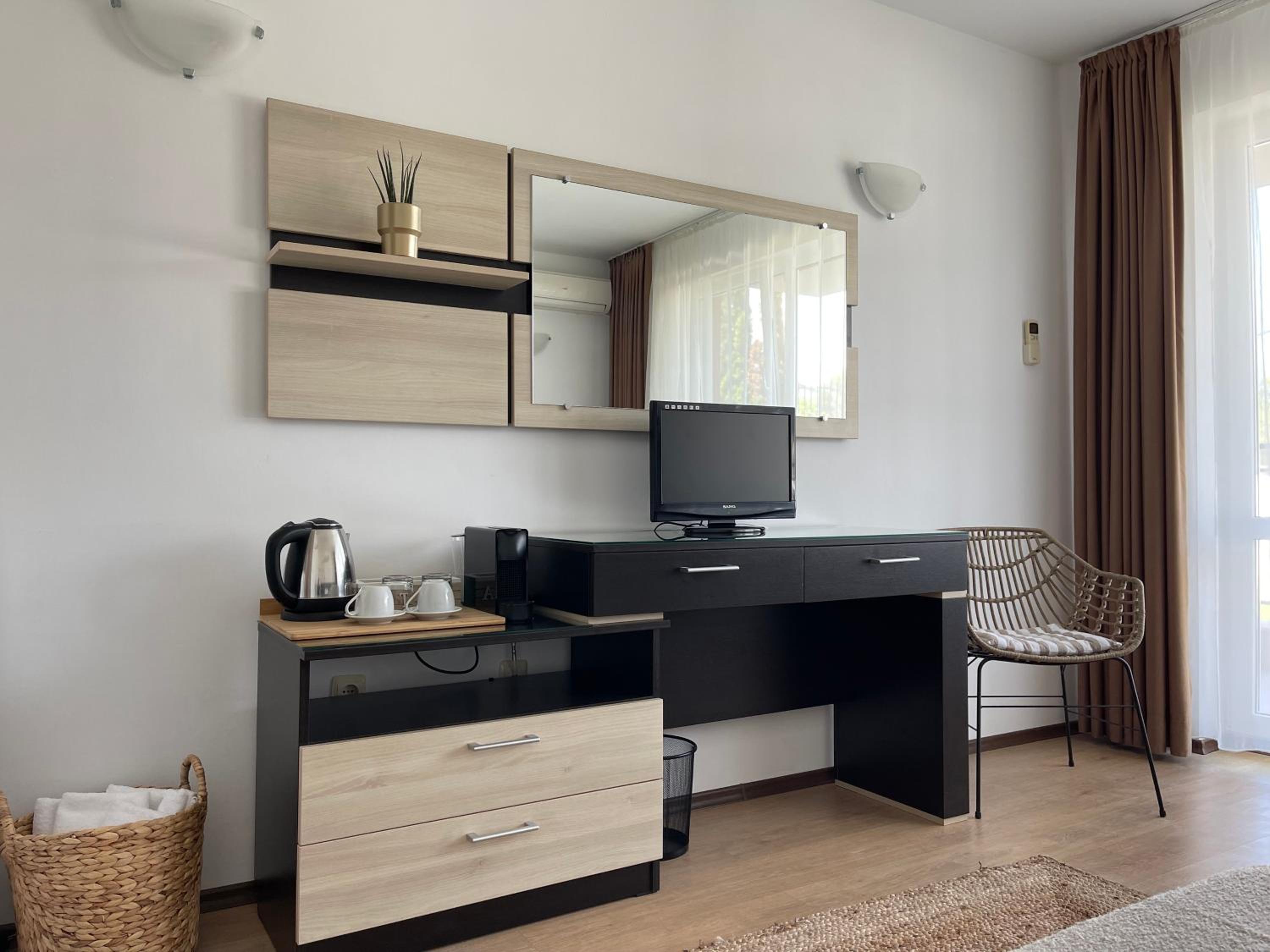 La salle de bain est un peu ancienne et ce qui nous a moins plu c’est que les capsules de café étaient payantes à chaque fois qu’on les demandait à la réception. La plage se trouve à environ 10 minutes à pied, et le centre-ville (Old Sozopol), où l’on peut sortir, est à environ 40 minutes à pied. En taxi, il faut compter environ 20 leva (10 €) par trajet, sinon il vaut mieux louer une voiture.