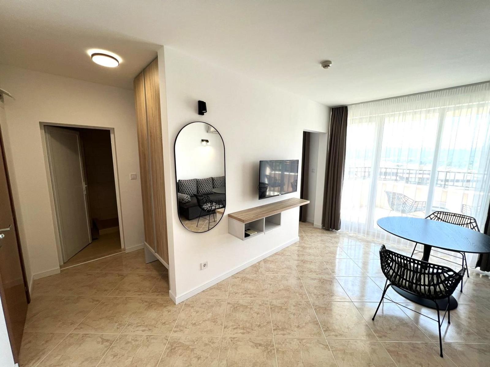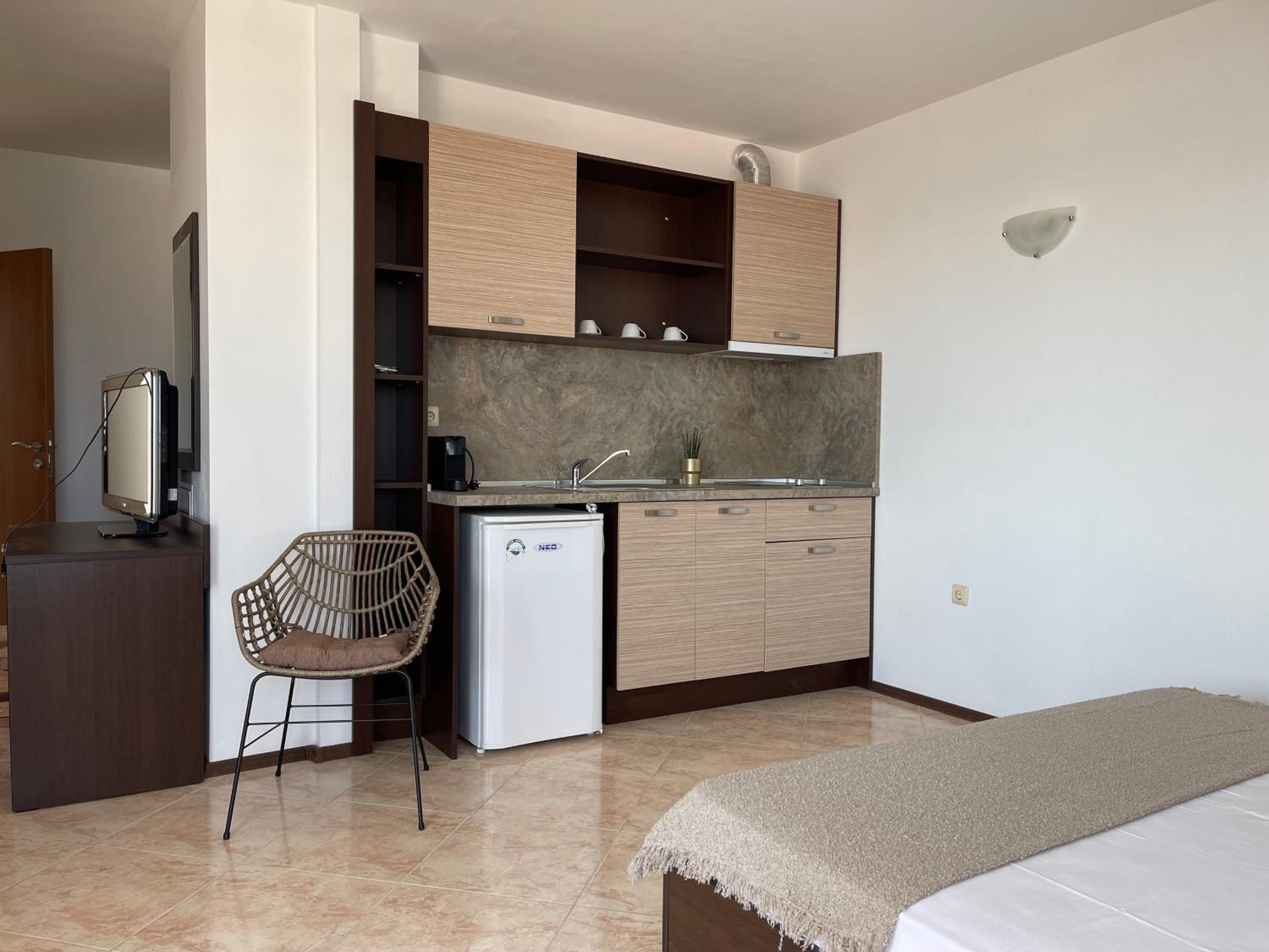 The appartment, and the whole hotel, was very clean and tidy with exceptional attention to detail and practicality. The stage were willing to assist us with anything with a smile on their faces. We also enjoyed the pool area. The beach is located just about 10-15 min walking and the area where the hotel is located, is very calm.