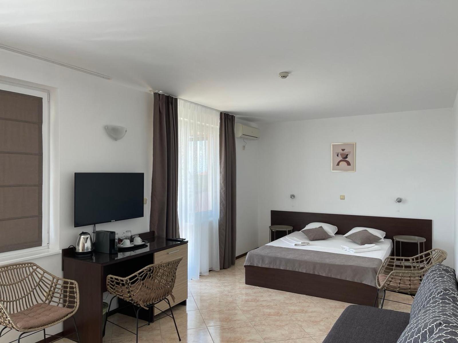 Indulge in a stay at Villa Mia, a luxurious hotel in Sozopol just 1 km from Kavatsi Beach. Each room offers modern amenities like air conditioning, flat-screen TV, and a balcony with stunning sea views. Upgrade to a room with a kitchenette for added convenience.