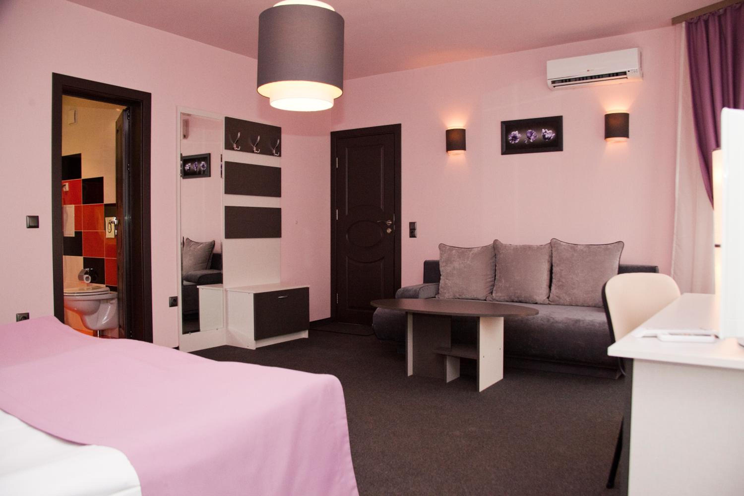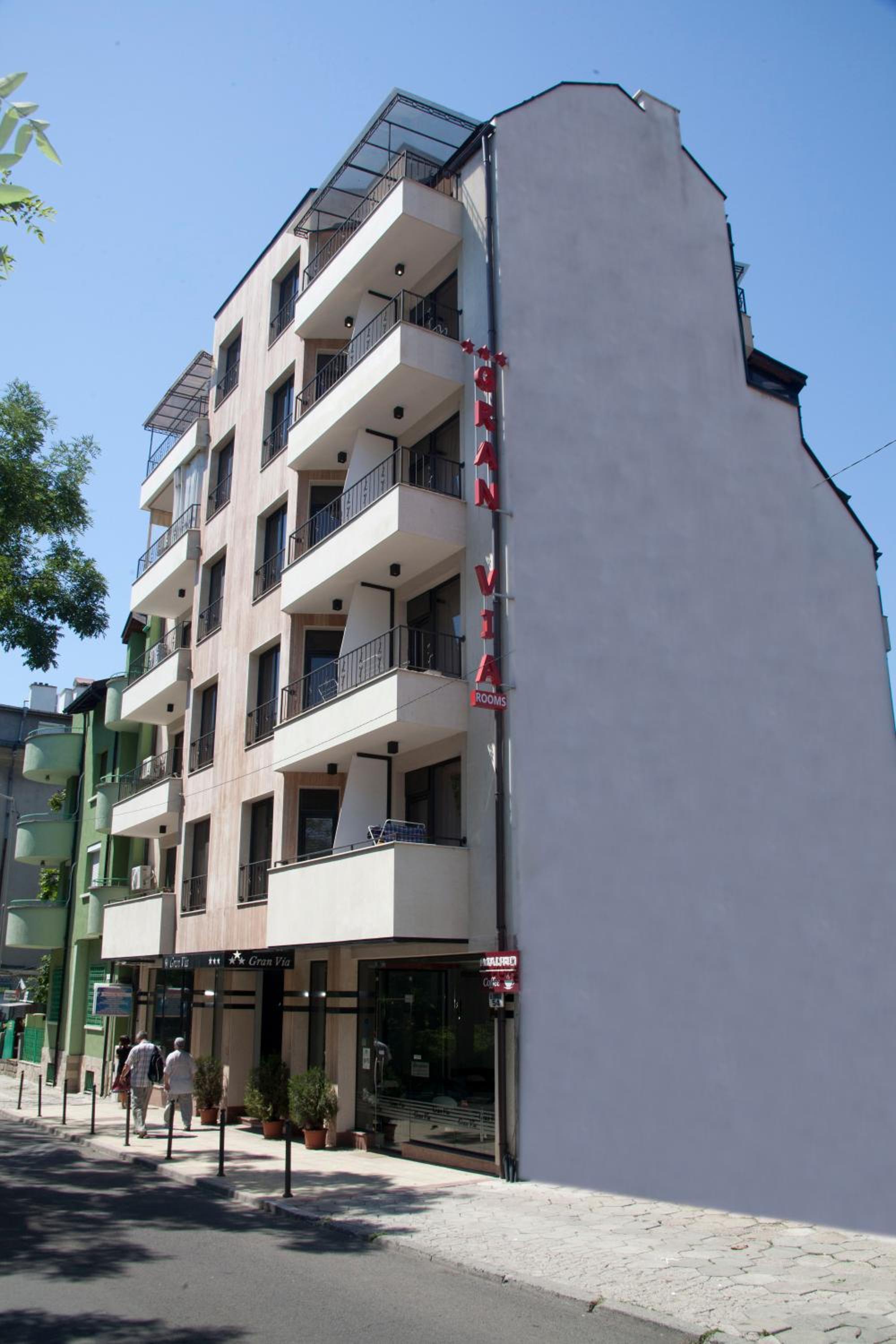 Hotel Gran Via, located near Burgas’ Sea Garden Casino, offers stylish rooms with balconies overlooking the Garden Park. Each room features modern design with red and black bathrooms, a flat-screen TV, and free Wi-Fi.