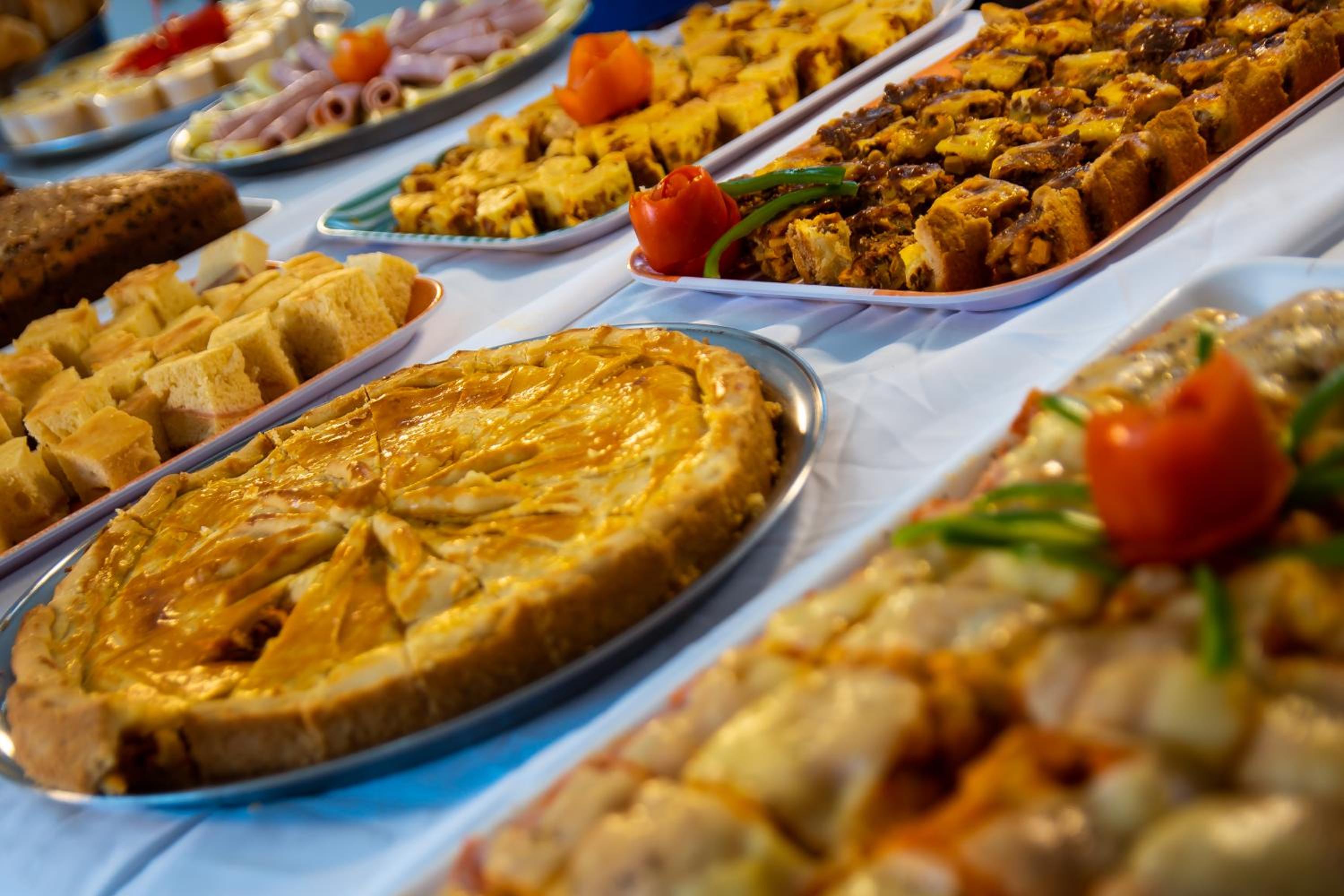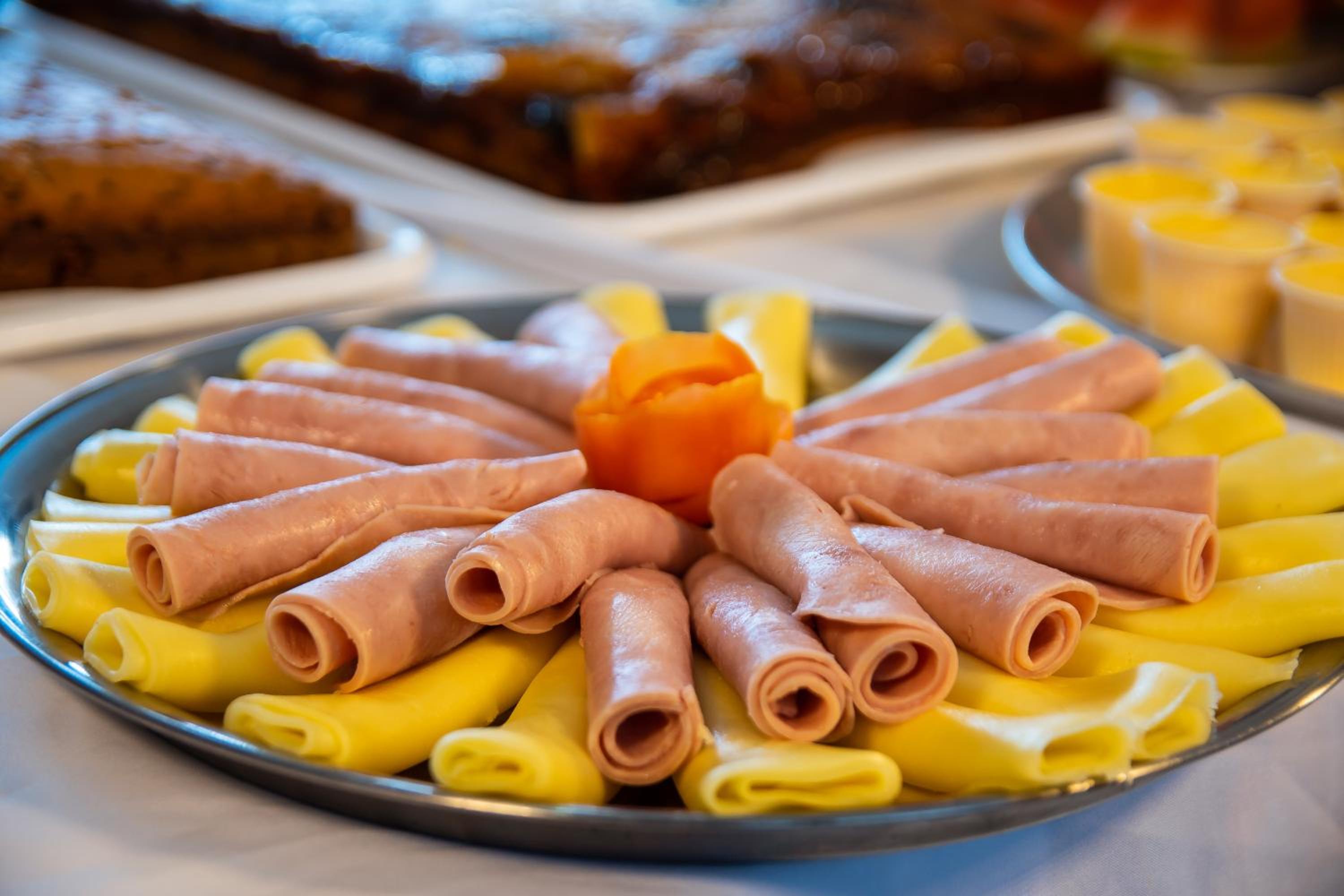 Delicious Buffet Breakfast: Start your day right with a buffet breakfast offering a variety of fresh fruits, breads, cold meats, and hot/cold drinks in the breakfast room.