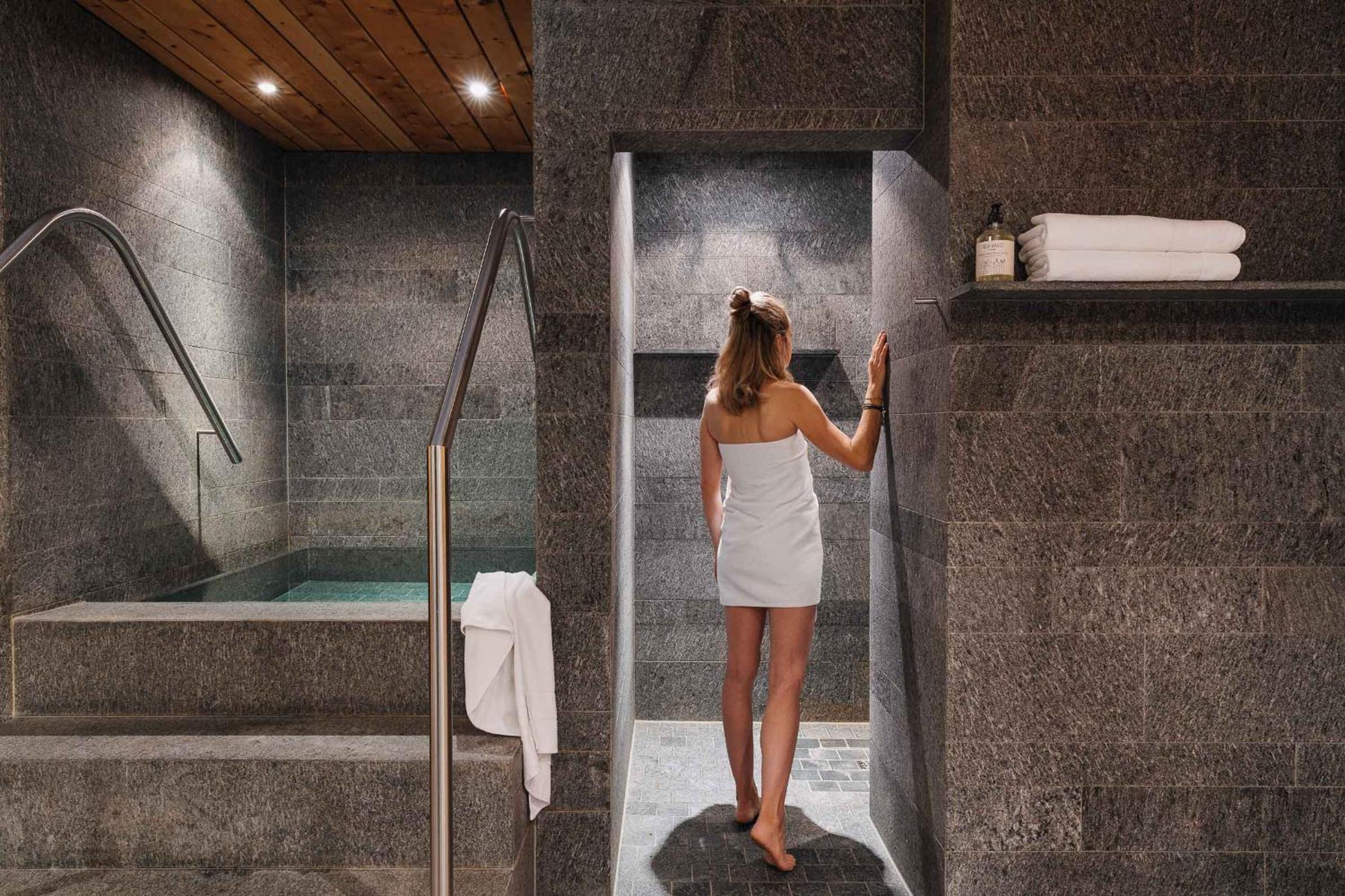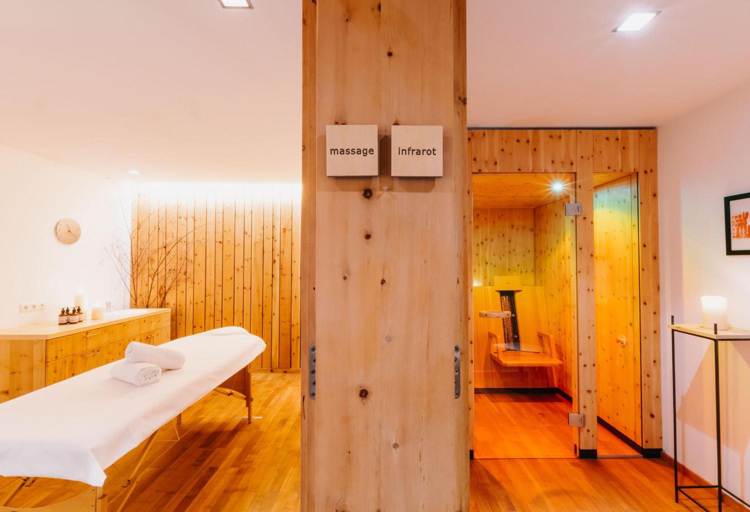 Guests can easily purchase ski passes on-site and securely store their ski gear. After a day of skiing, unwind in the spa area equipped with a sauna, steam bath, and massage services.