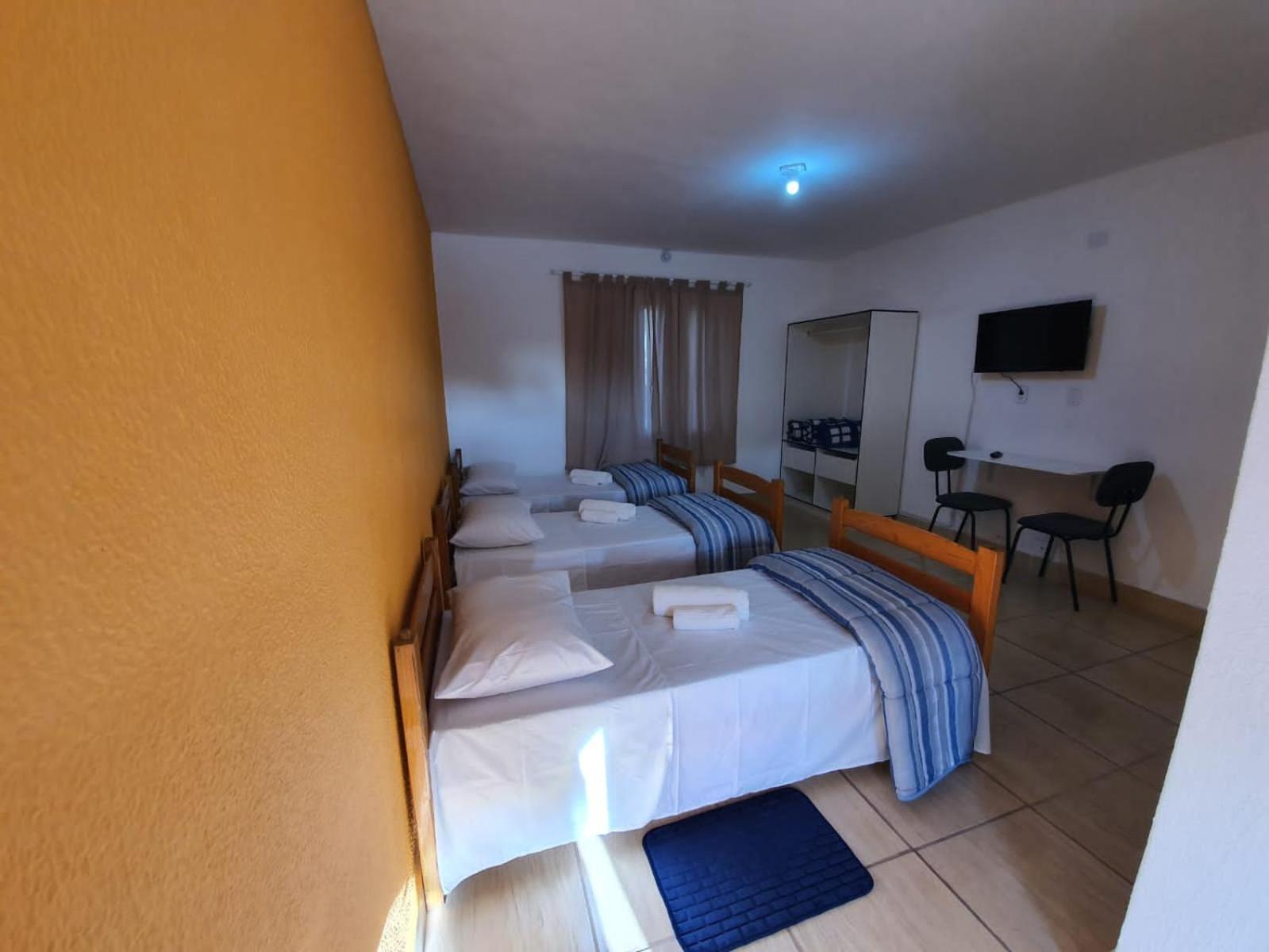 Nao tinha Internet, nao tinha tomada no banheiro, e o banheiro era horrivel , no lado do banho, dividiram com um pedaço de madeira no chão, quando tomávamos banho,molhava o banheiro inteiro , sem contar que nao tinha um rodo nem um pano pra secar e a cama de casal estava quebrada, faltando 1 pezinho, colocamos o colchão no chão, pra ficar mais confortável.