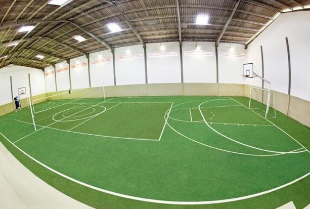 Área da academia e quadras muito escuras;