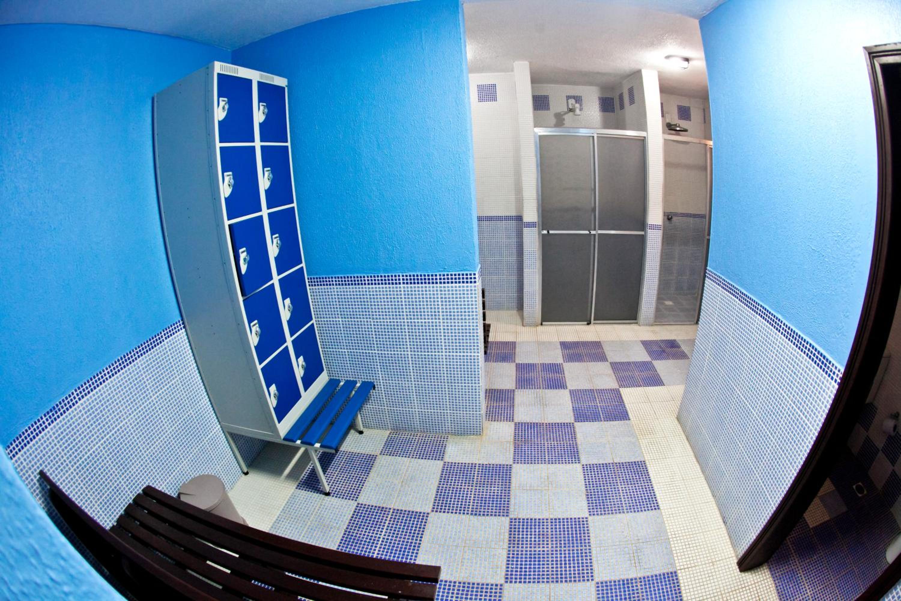 Vestiário masculino da academia sem chuveiro;