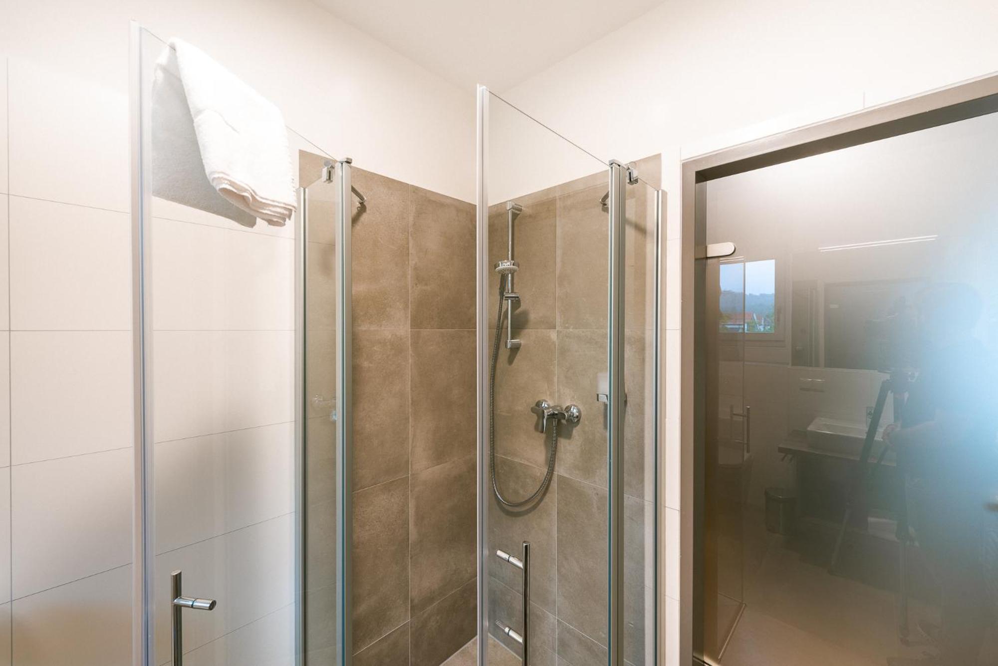Leider war die Dusche nicht "dicht"....Wasserpfütze leider bis ins Zimmer (also auch außerhalb vom Bad)....musste ein Handtuch zum Aufwischen verwenden