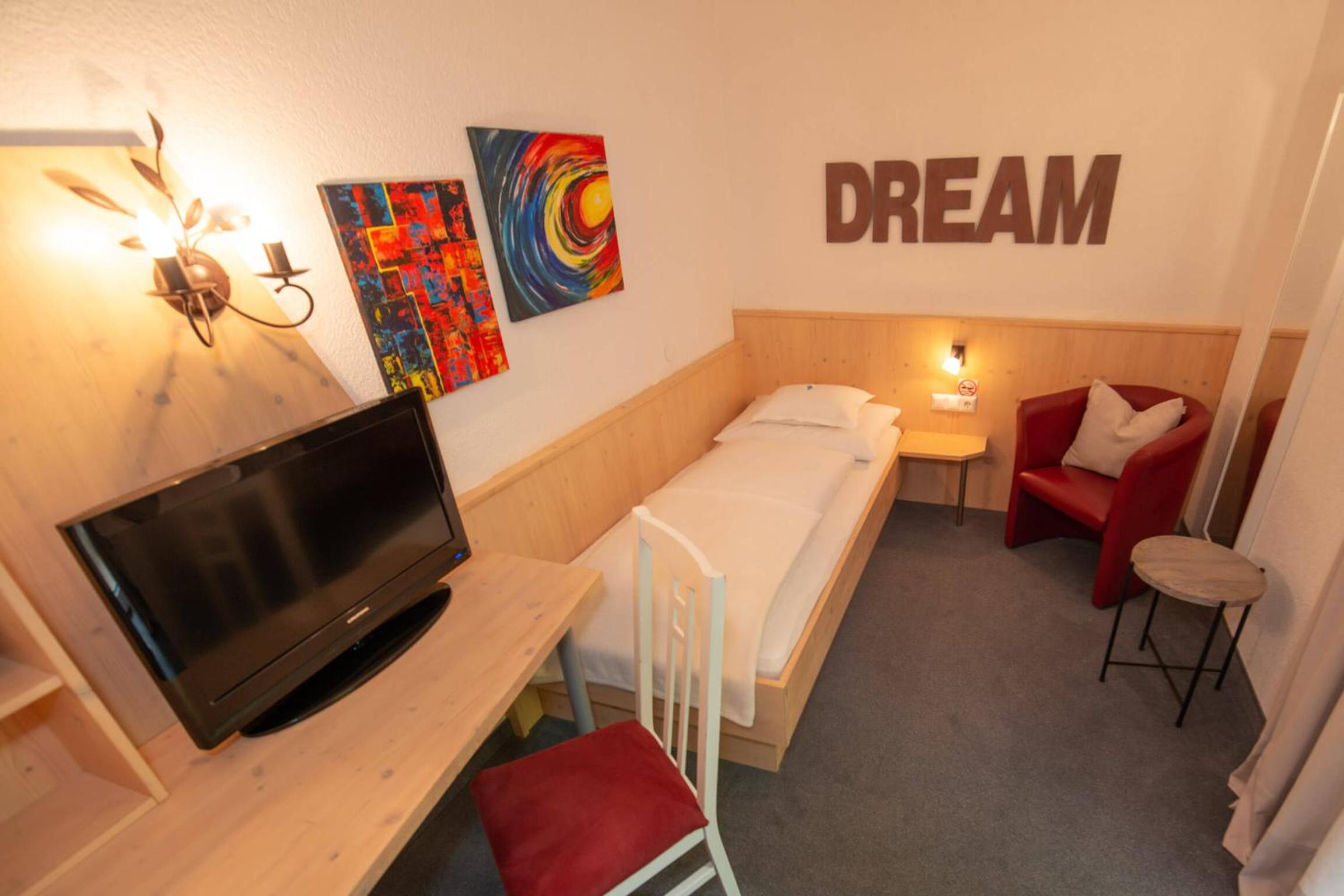 Unser Zimmer war sehr klein, was aber unserer späten Buchung geschuldet war. Es gibt auch grössere Zimmer.