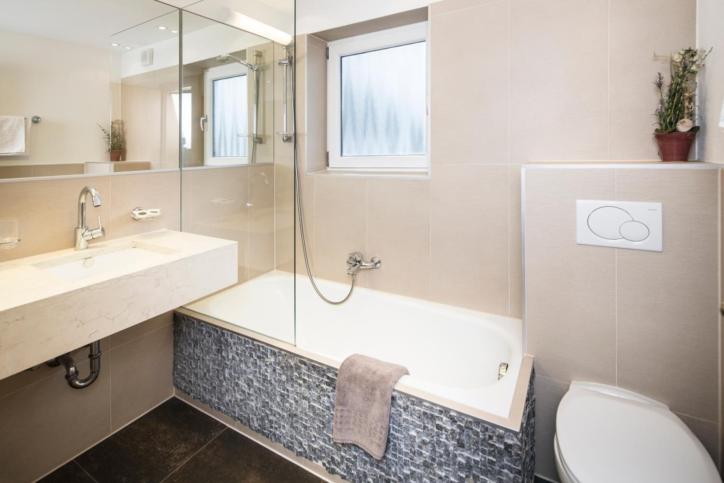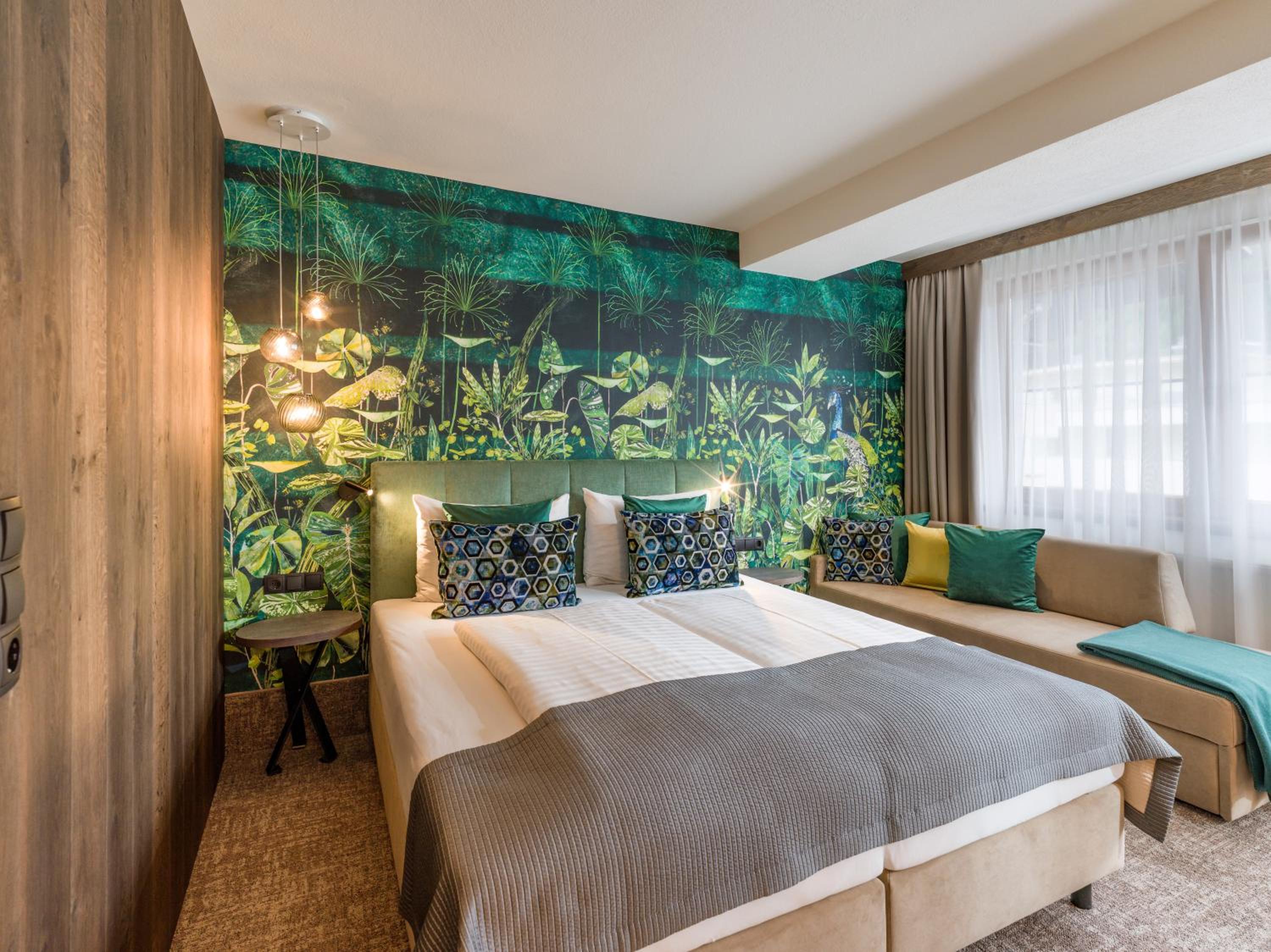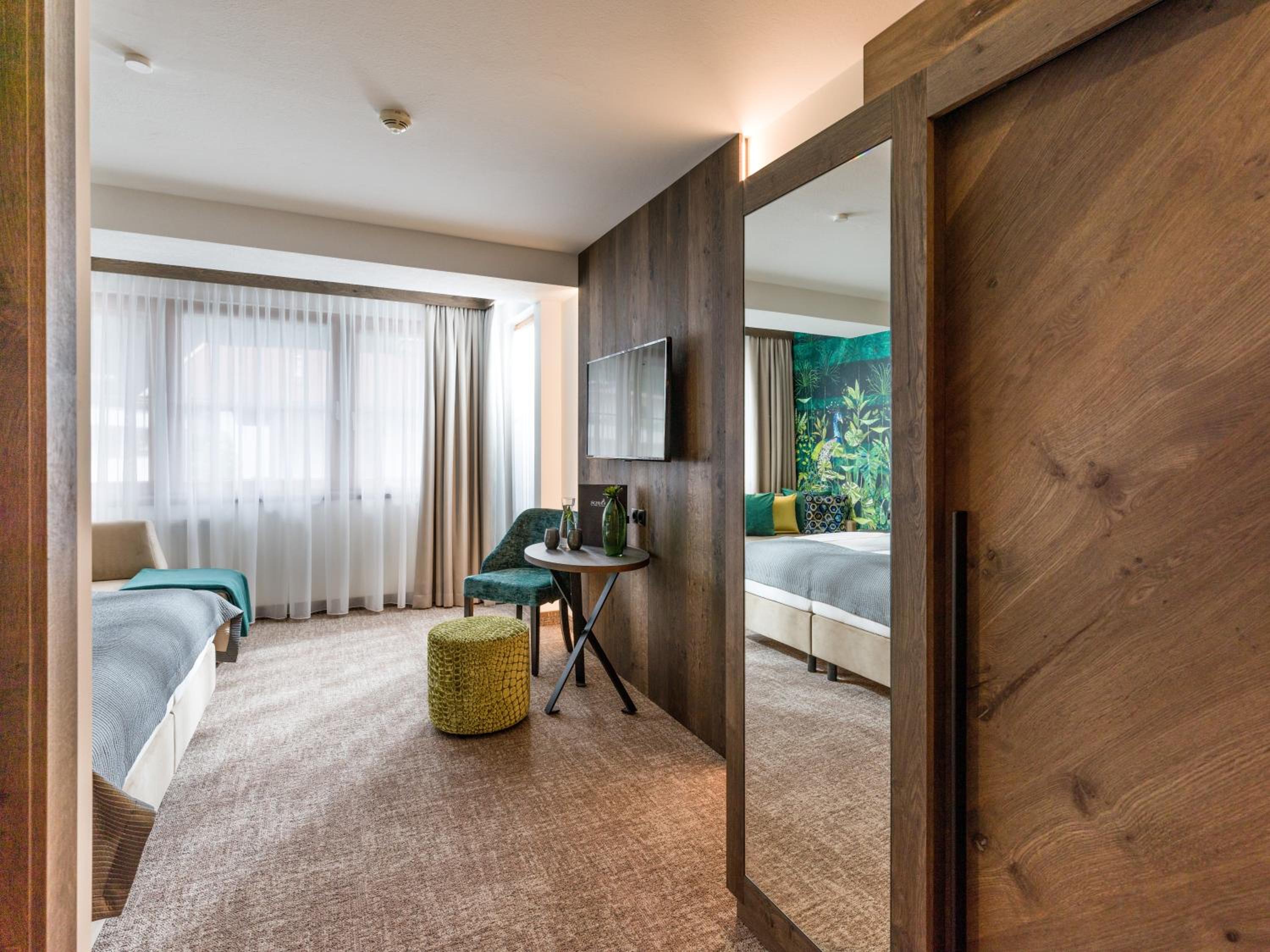 Modern Spa Area and Balcony in Every Room - Indulge in relaxation at our modern spa area featuring a sauna, steam bath, and more. Enjoy the fresh mountain air from your own balcony in every room.