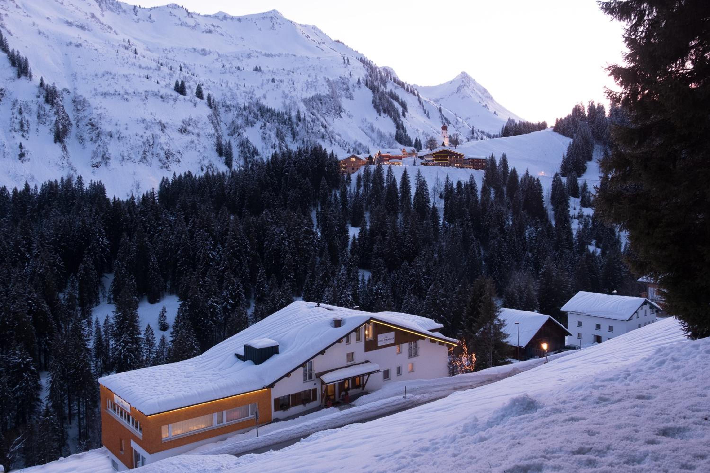 Ein gemütliches, stilvolles Hotel mit hervorragender moderner Ausstattung und überall Teppichen. Vom Balkon hat man einen wunderbaren Blick ins Tal und hinauf nach Damüls.