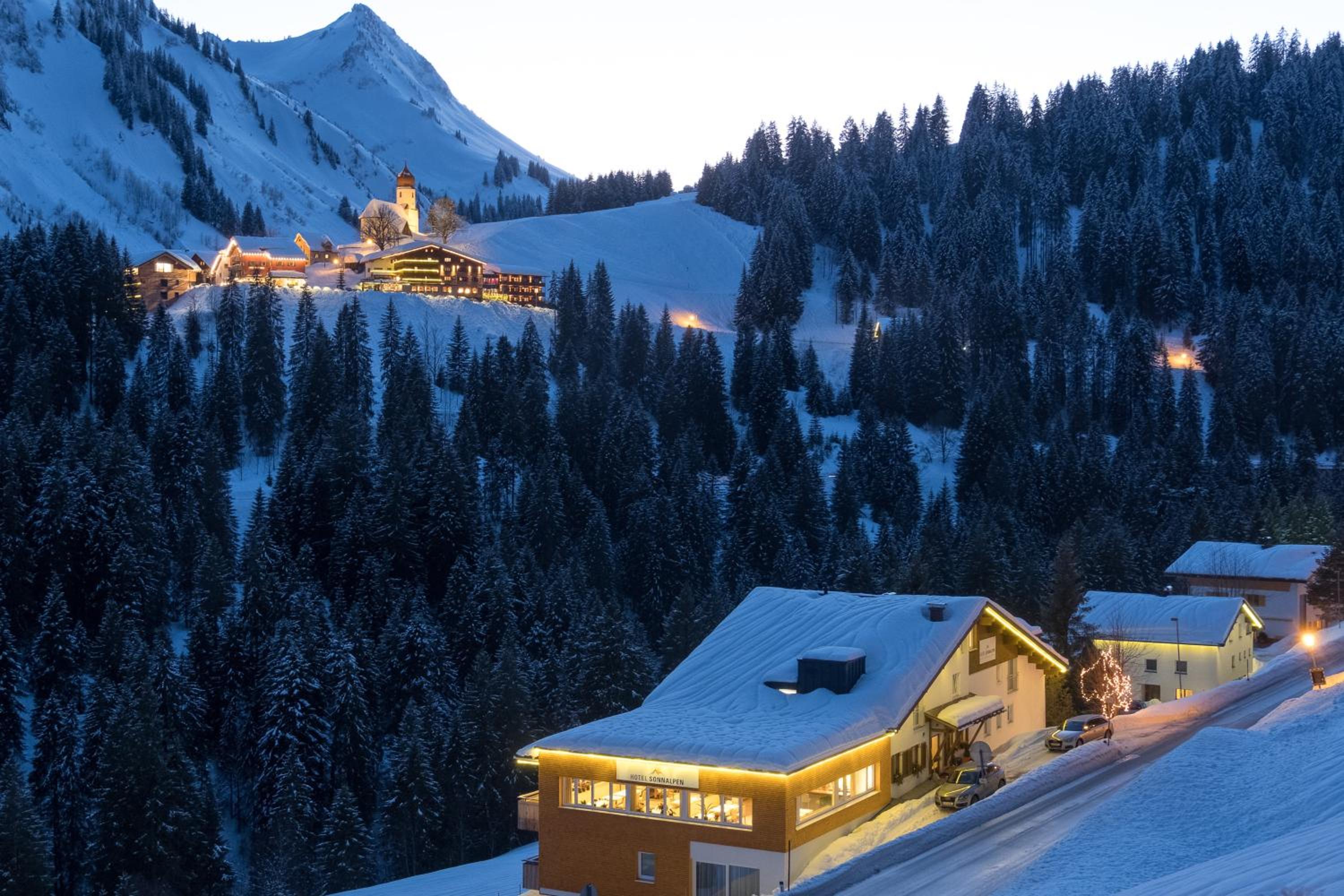 Hotel Sonnalp, nestled just a short drive from Damüls, offers a cozy Alpine retreat with a sauna area and easy access to ski slopes.