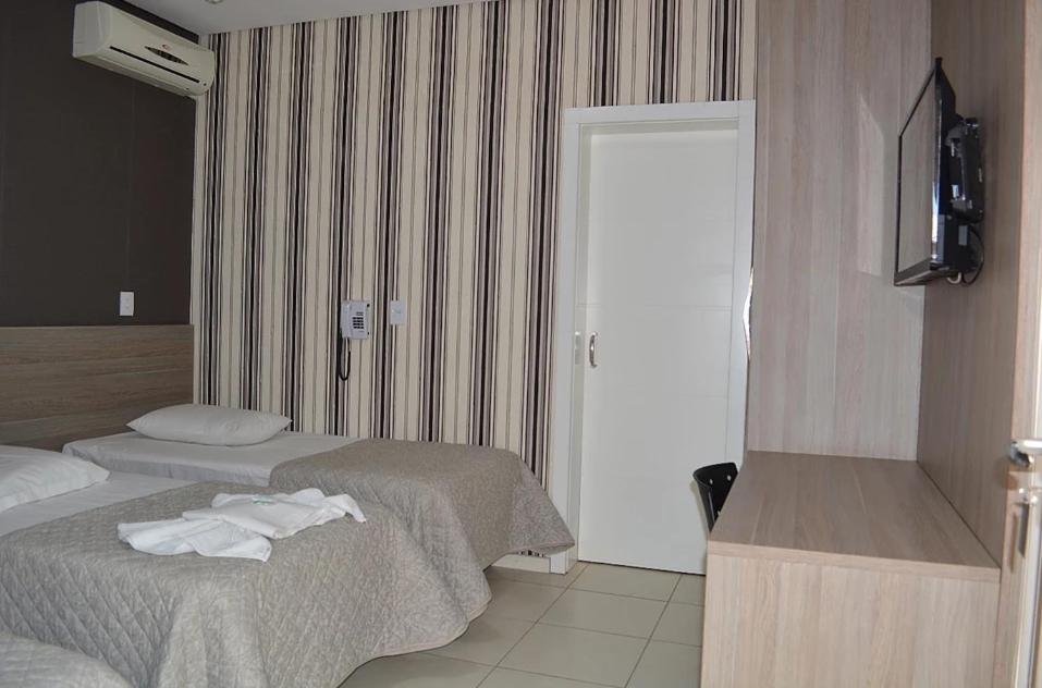Star Hotel in Chapecó provides air-conditioned rooms with modern amenities including a flat-screen TV, plush bed linens, and a private bathroom for a comfortable stay.