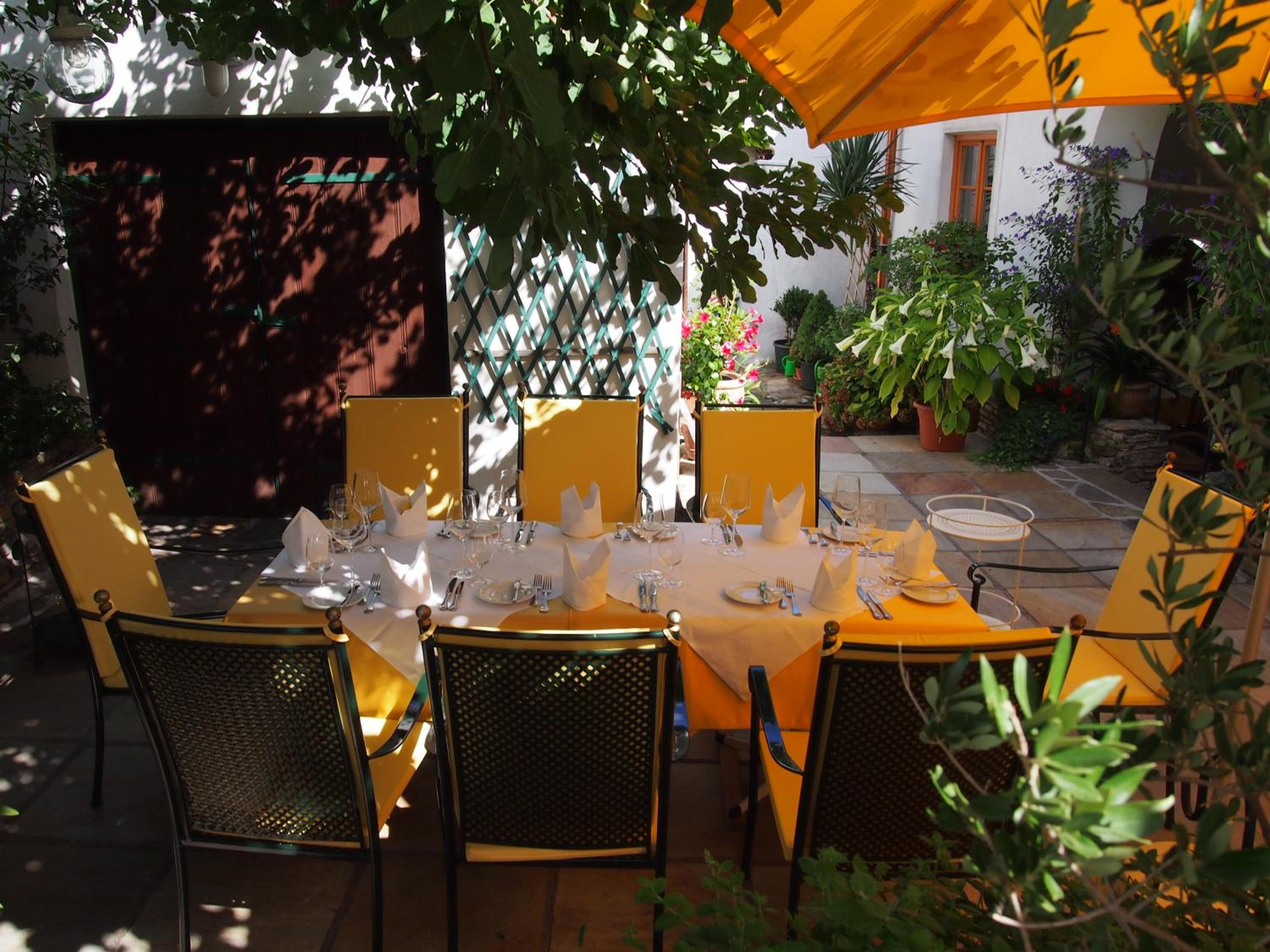 Indulge in a lavish breakfast spread at the former house chapel, now transformed into a charming breakfast room. During summer evenings, savor Wachau wines and gourmet treats on the Mediterranean terrace or in the Golden Lounge.