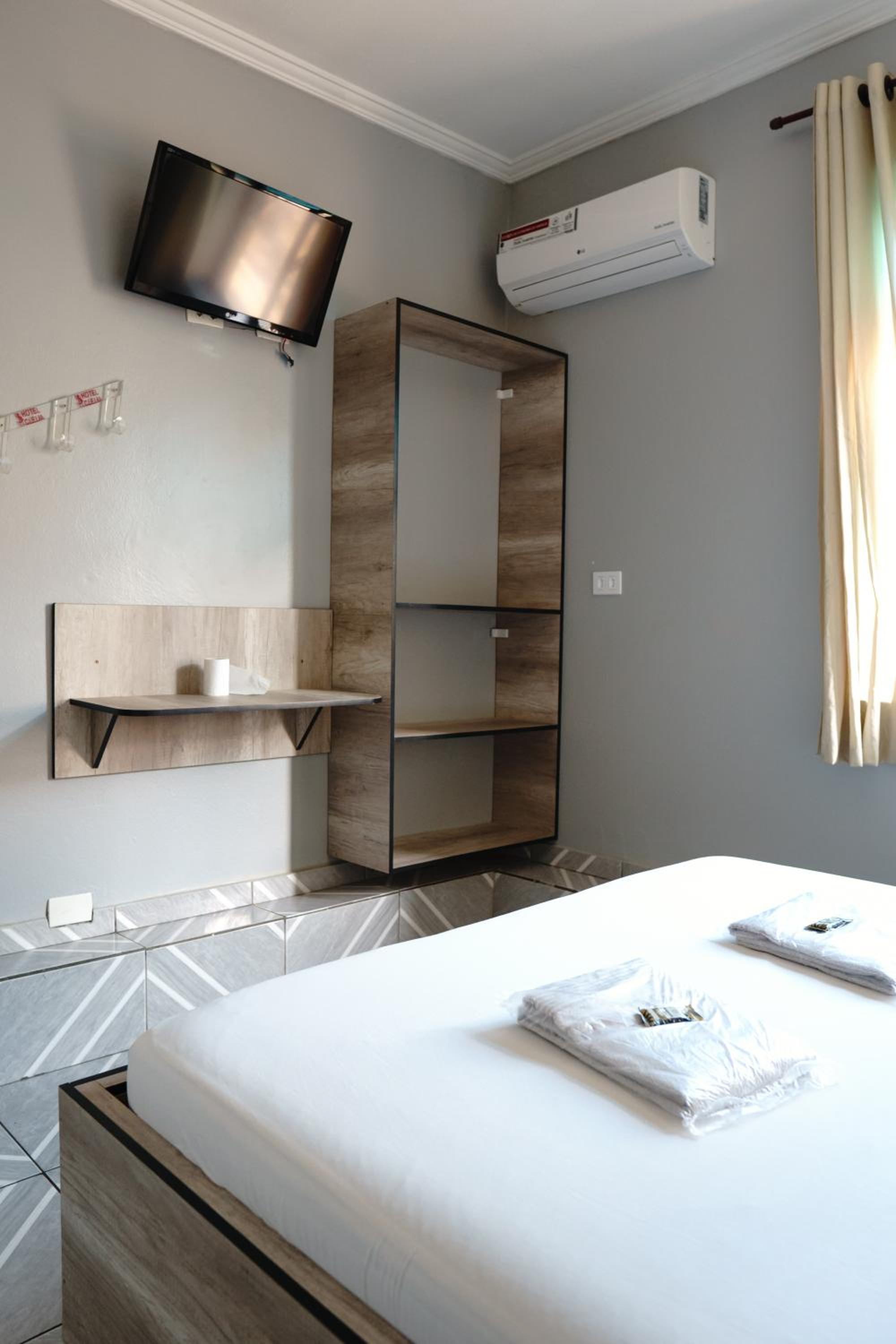 Each room at Hotel city Clélia is equipped with a flat-screen TV for entertainment and relaxation.