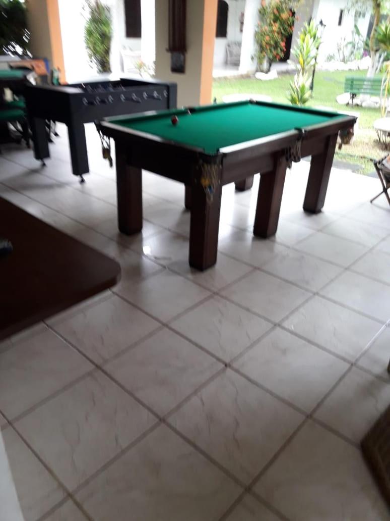 Área externa linda, com mesa de Pebolim, Sinuca e baralho, piscina, jardim bem cuidado com casinha debone a e um balancinho