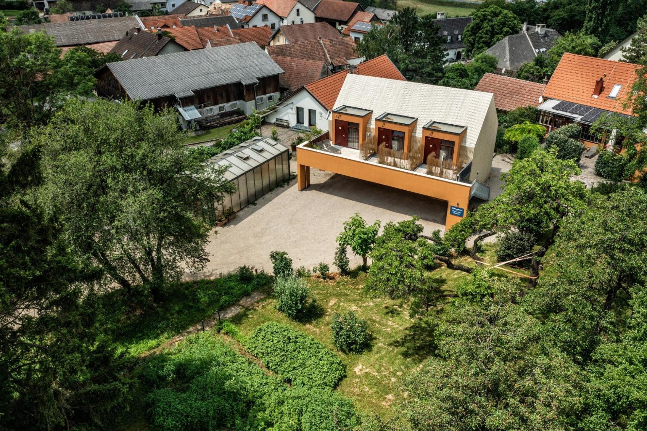 Flora auf Gut Guntrams offers air-conditioned rooms with modern amenities such as a coffee machine, microwave, and flat-screen TV. Guests can enjoy garden views from select rooms and relax on the terrace.