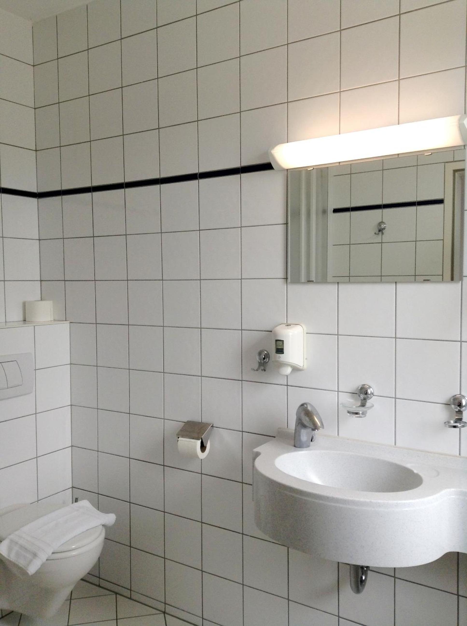 Geräumige Dusche und gutes Frühstück