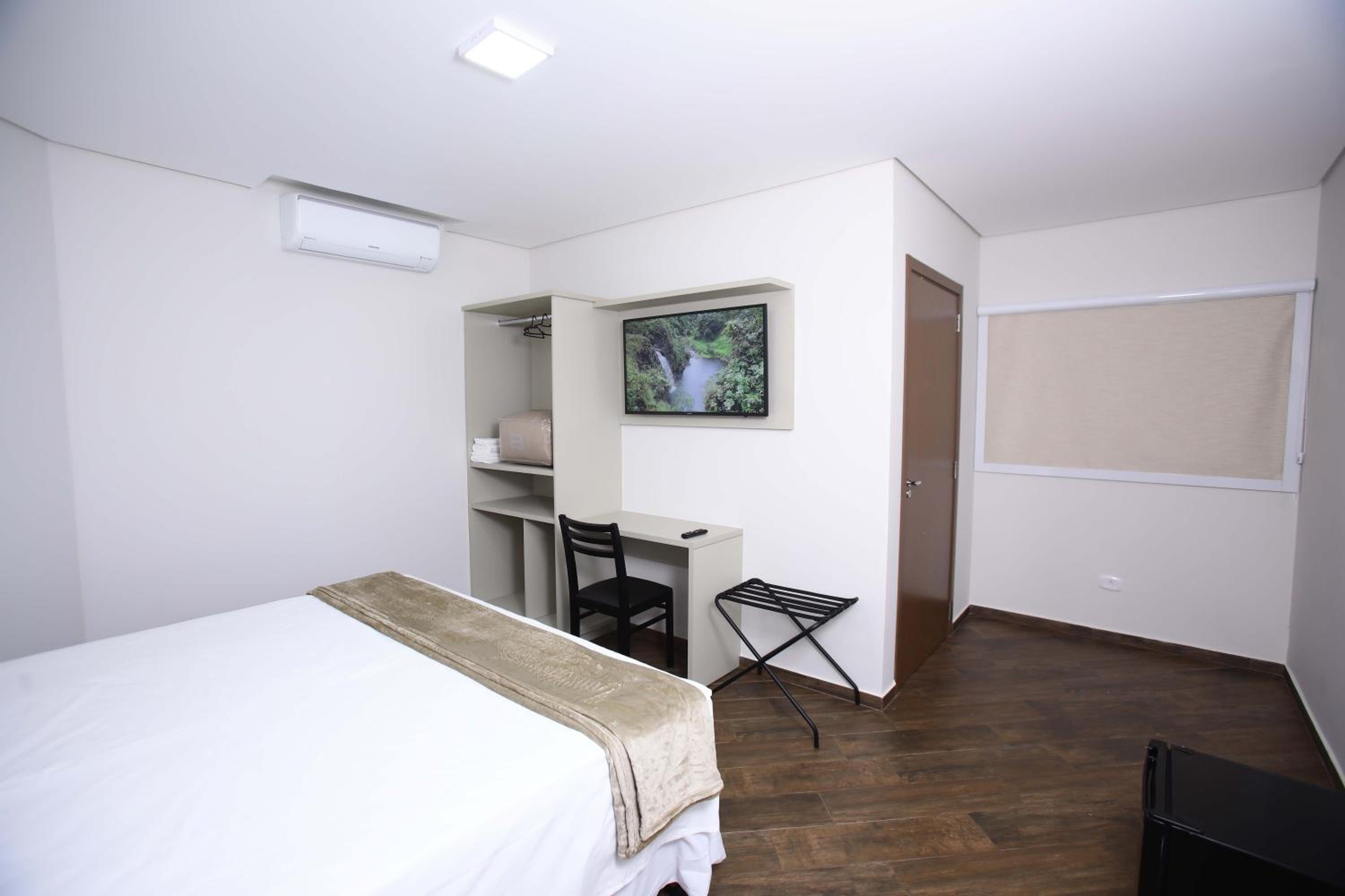 Experience comfort and style at Hotel Pro Tork Confort, where every room is equipped with modern amenities such as a flat-screen TV, air conditioning, and plush bed linens.