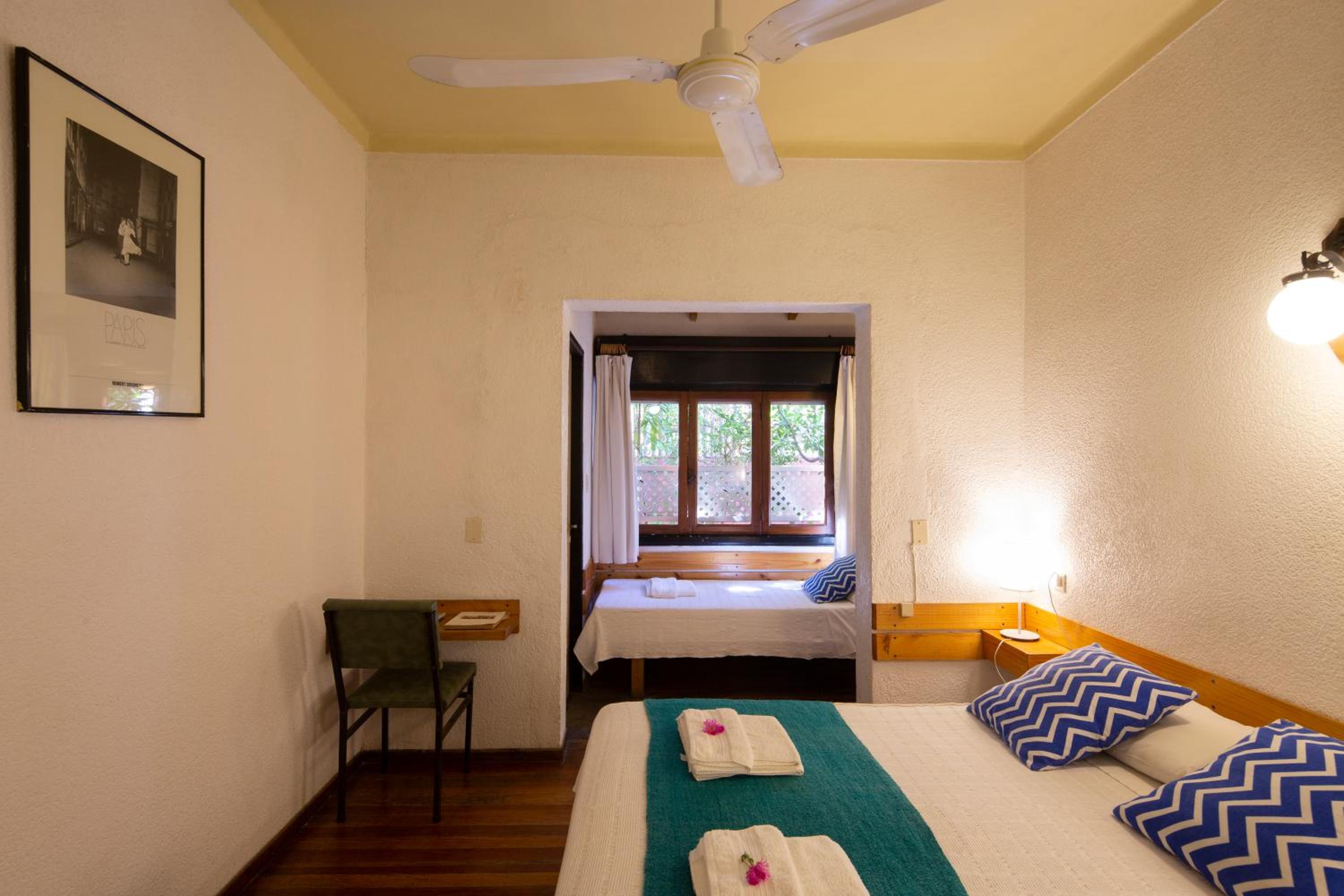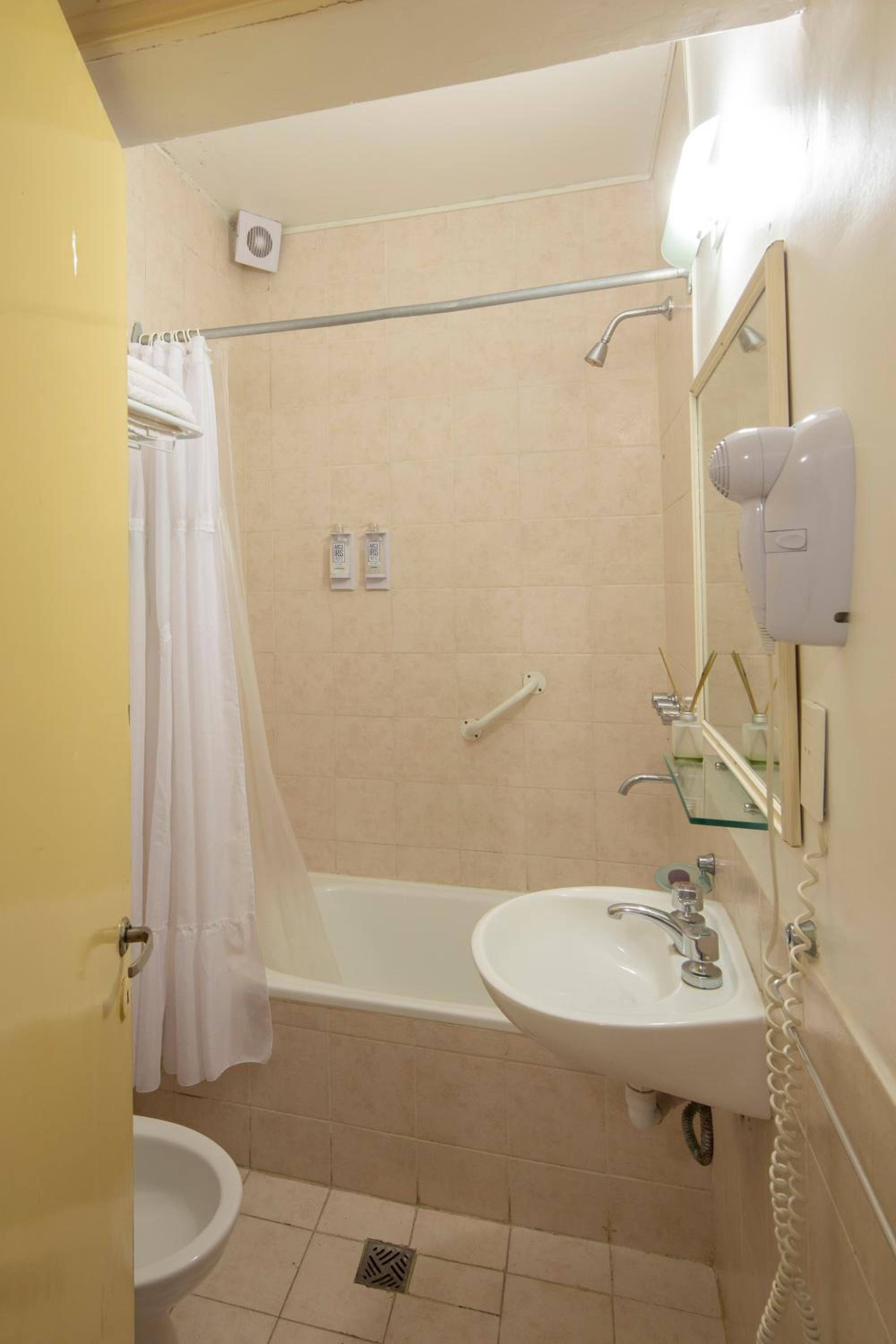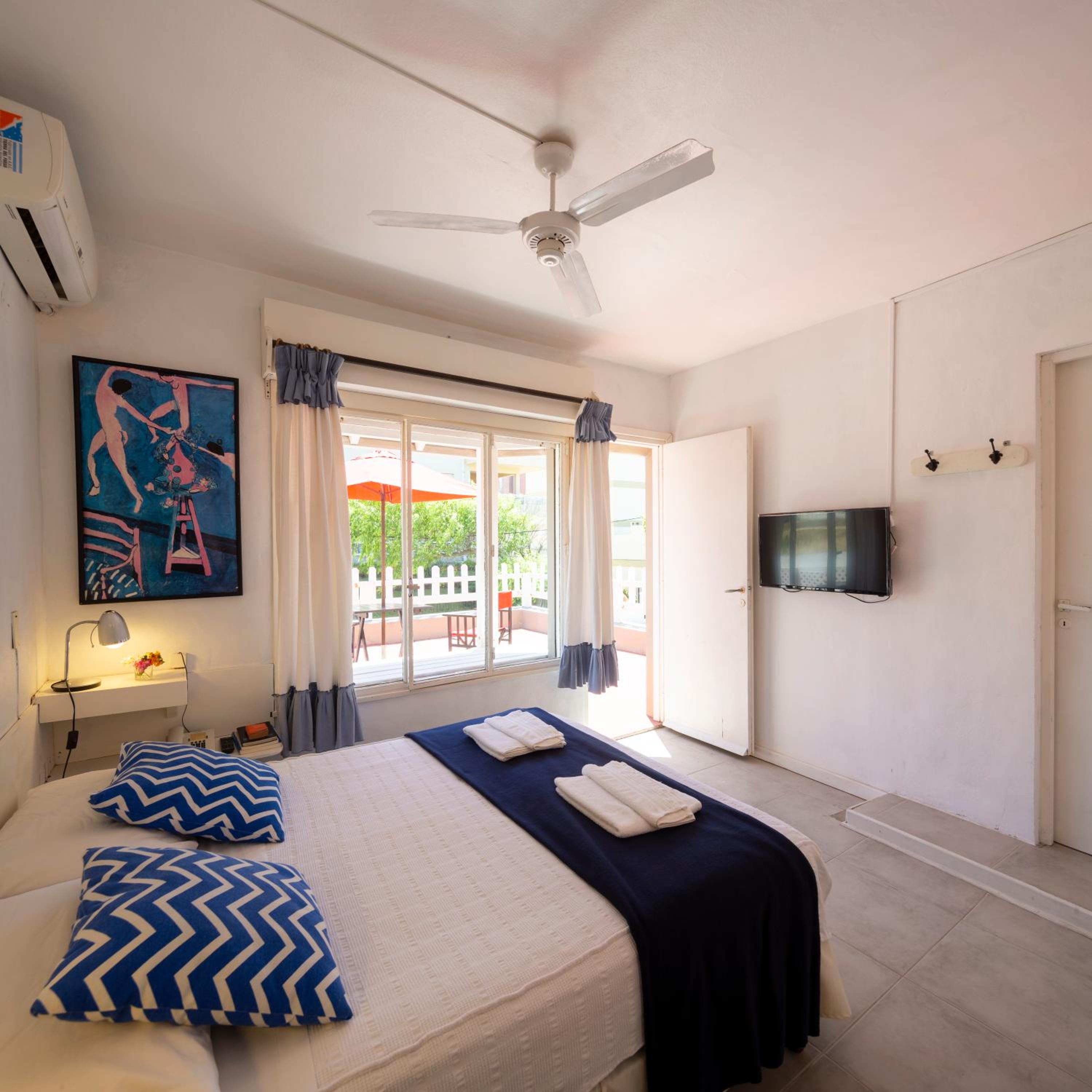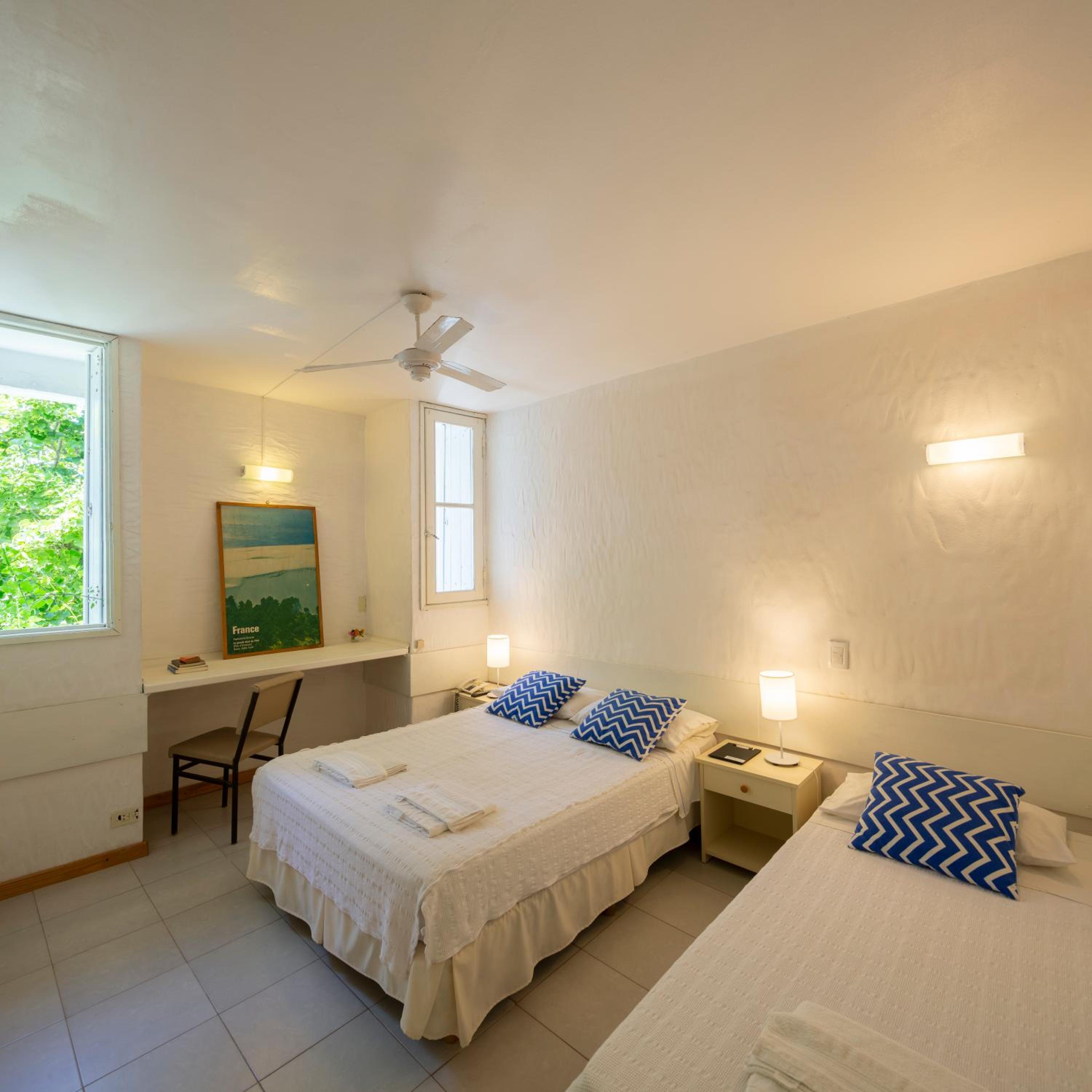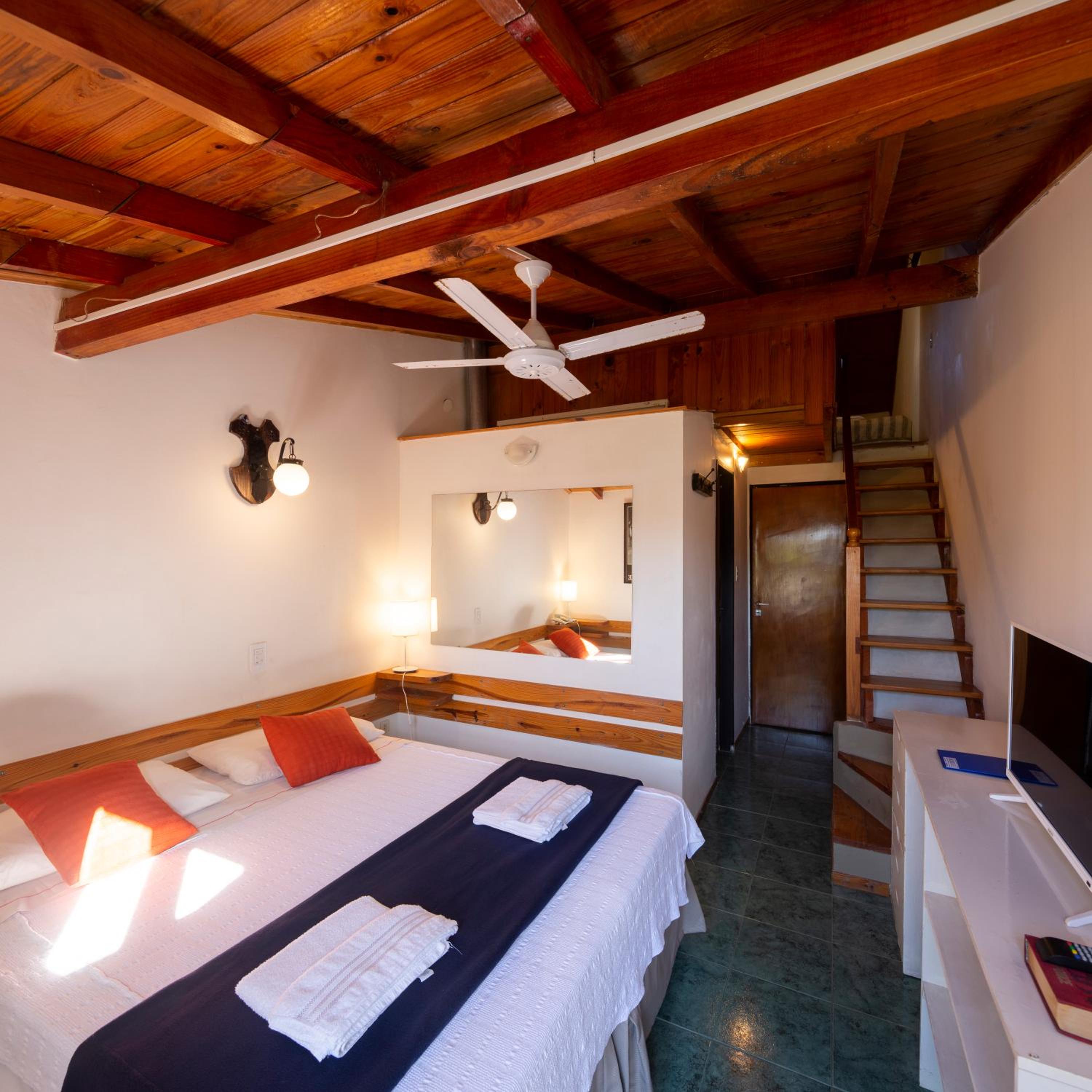 Nos encantó la disposición de la habitación, las camitas individuales arriba y la cama grande debajo. Todo limpio y en condiciones. El agua de la ducha con buen flujo y temperatura. El desayuno estuvo justo, tostadas, pastaflora, medialunas, yogures, café con leche y jugo de naranja y algo de fruta. La atención del personal muy amable. Destaco la ubicación del hotel, desde la puerta hacia la derecha se ve la playa a 100 metros y hacia la izquierda el centro. Cerca de todo, me encantó eso. La opción de la terraza se ve el mar también desde ahí, muy tranquilo todo. Y se puede almorzar o cenar en el resto del hotel. Muy conformes.