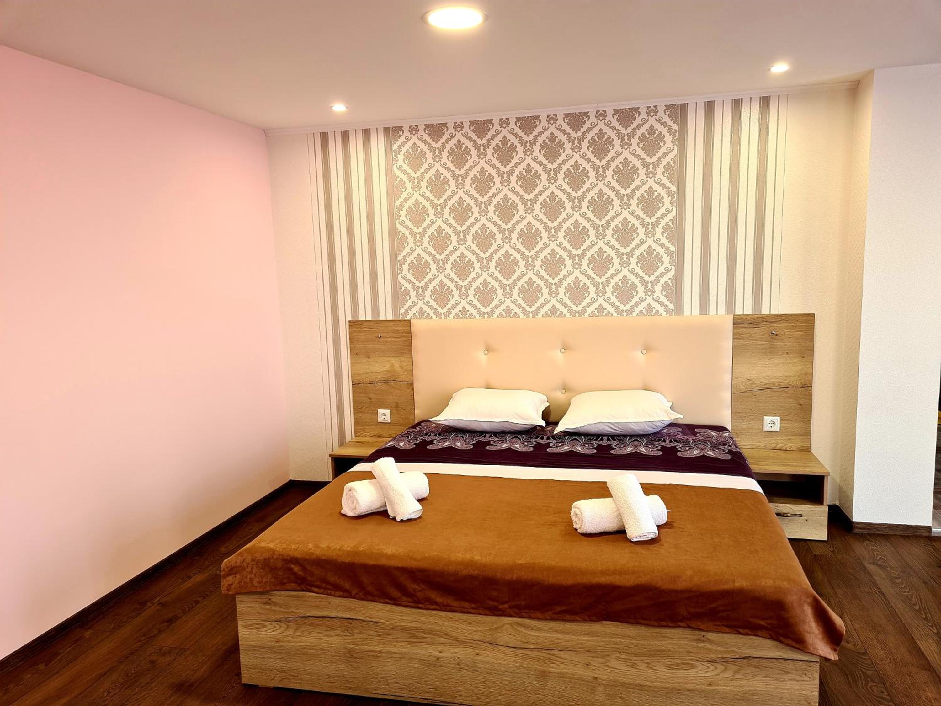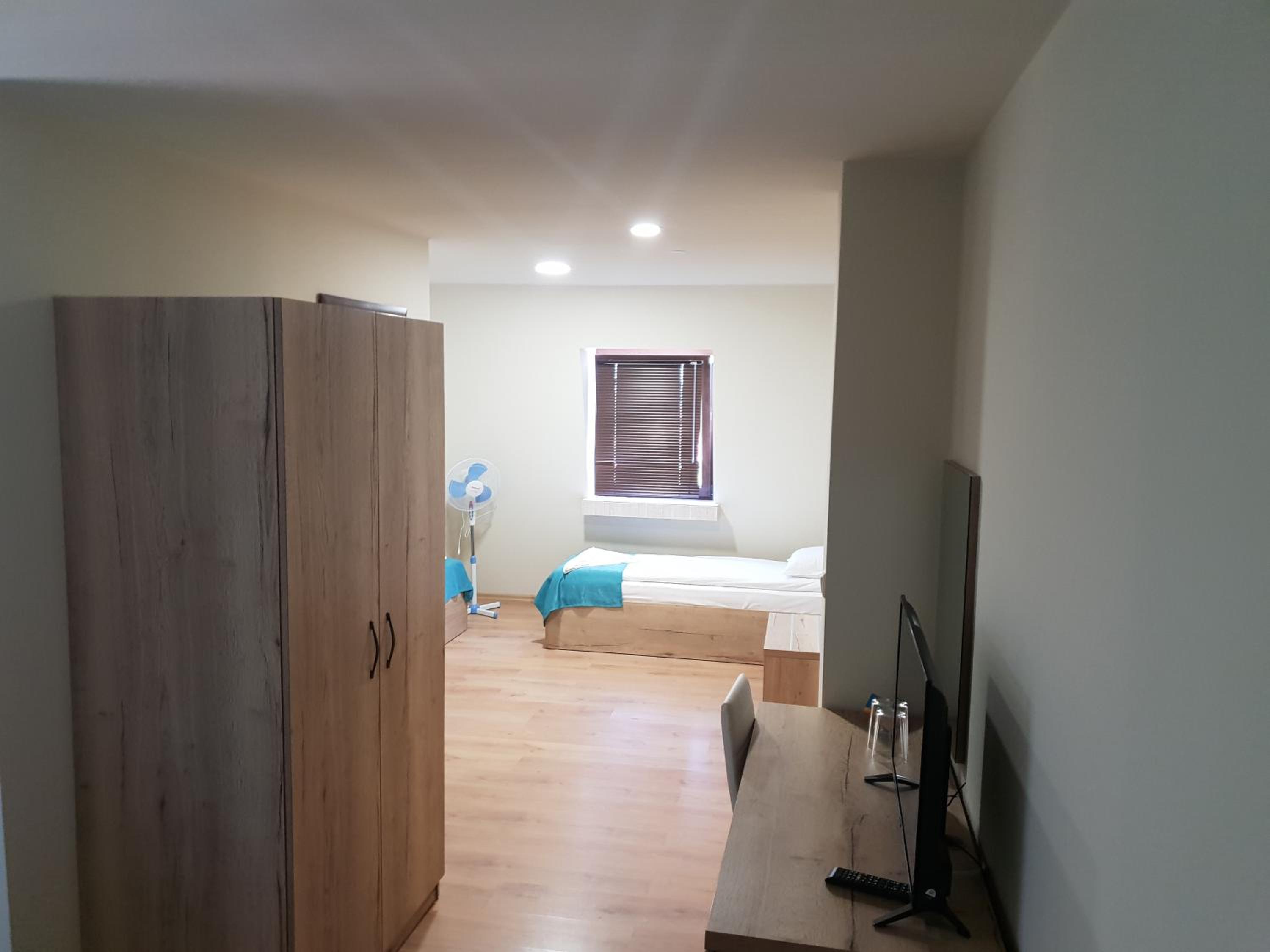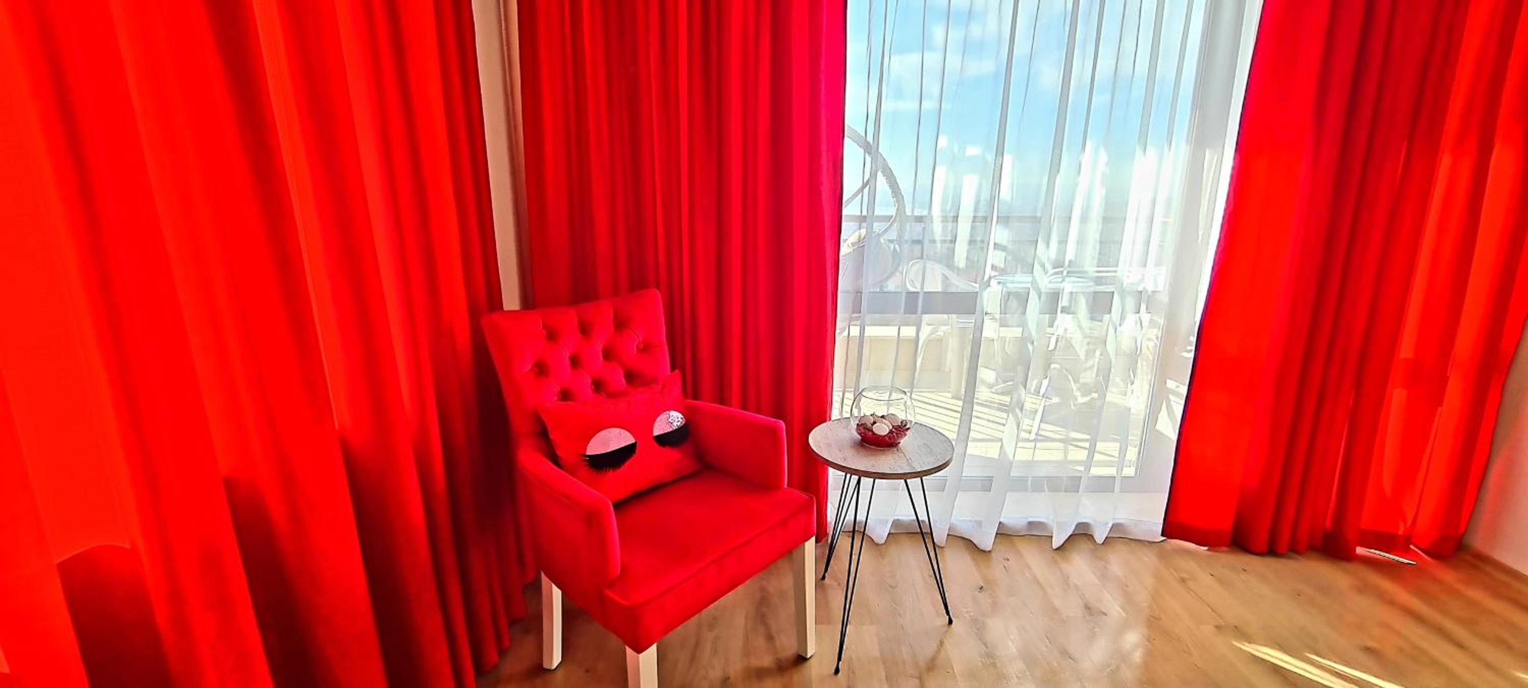 Большой четырёхместный двухкомнатный номер с прекрасным видом на море. Удобные и красивые кресла, два вместительных шкафа, два стола и два холодильника.