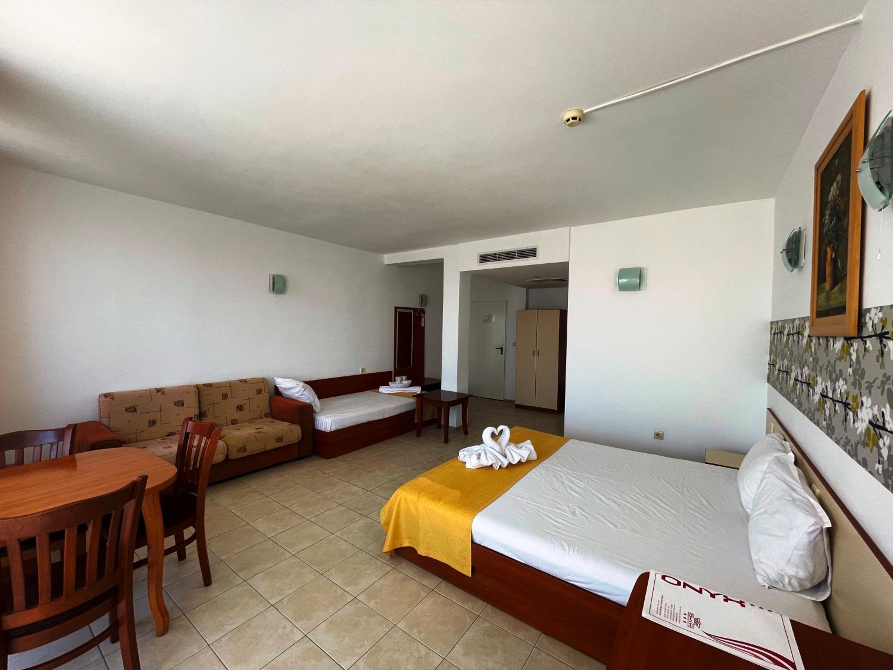 The fully air-conditioned Onyx hotel, located just steps away from Kiten and Atliman beaches, offers an array of luxurious amenities. From the outdoor swimming pool and jacuzzi to the water cascade and fitness centre, guests can indulge in relaxation and leisure.
