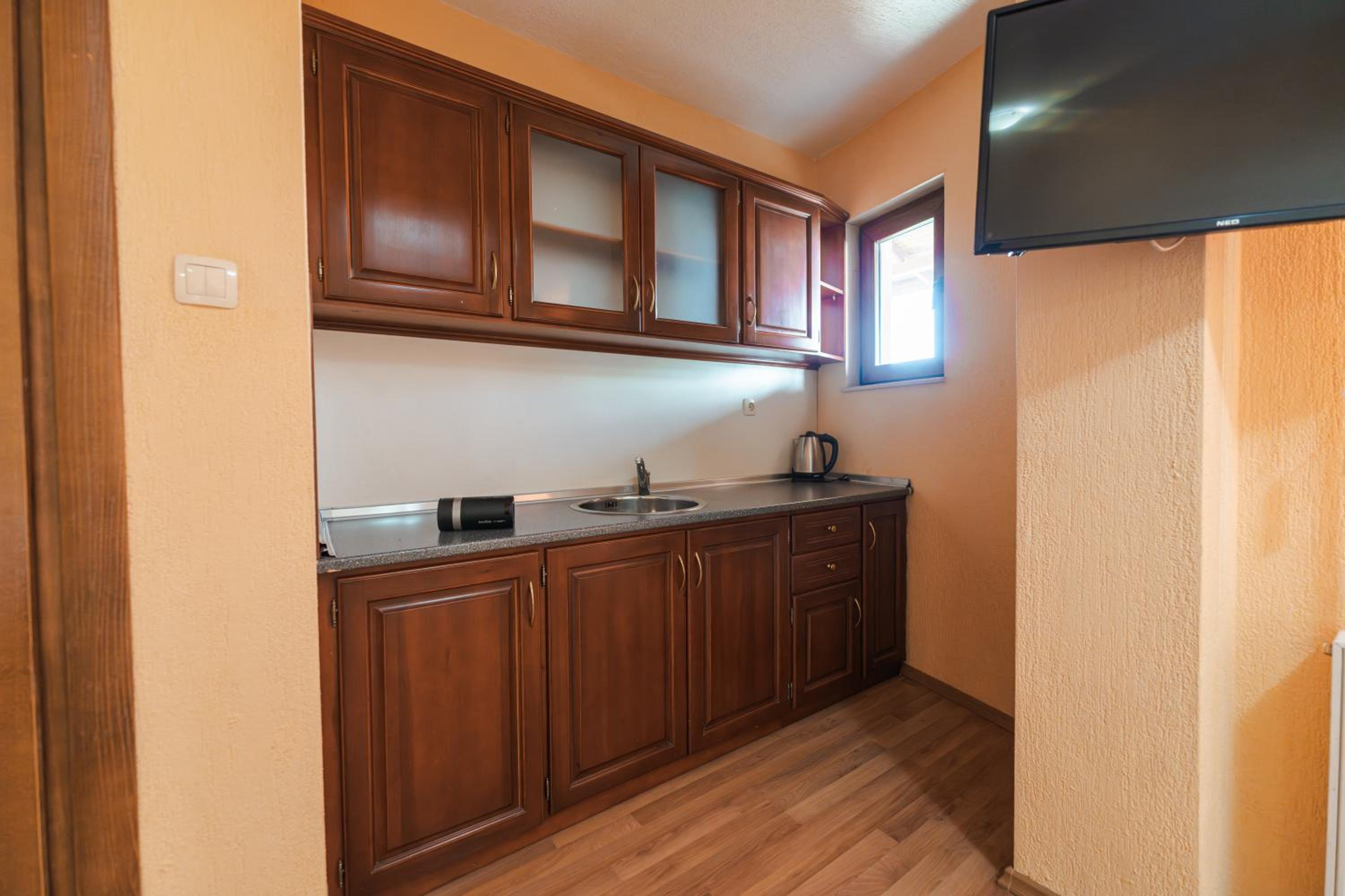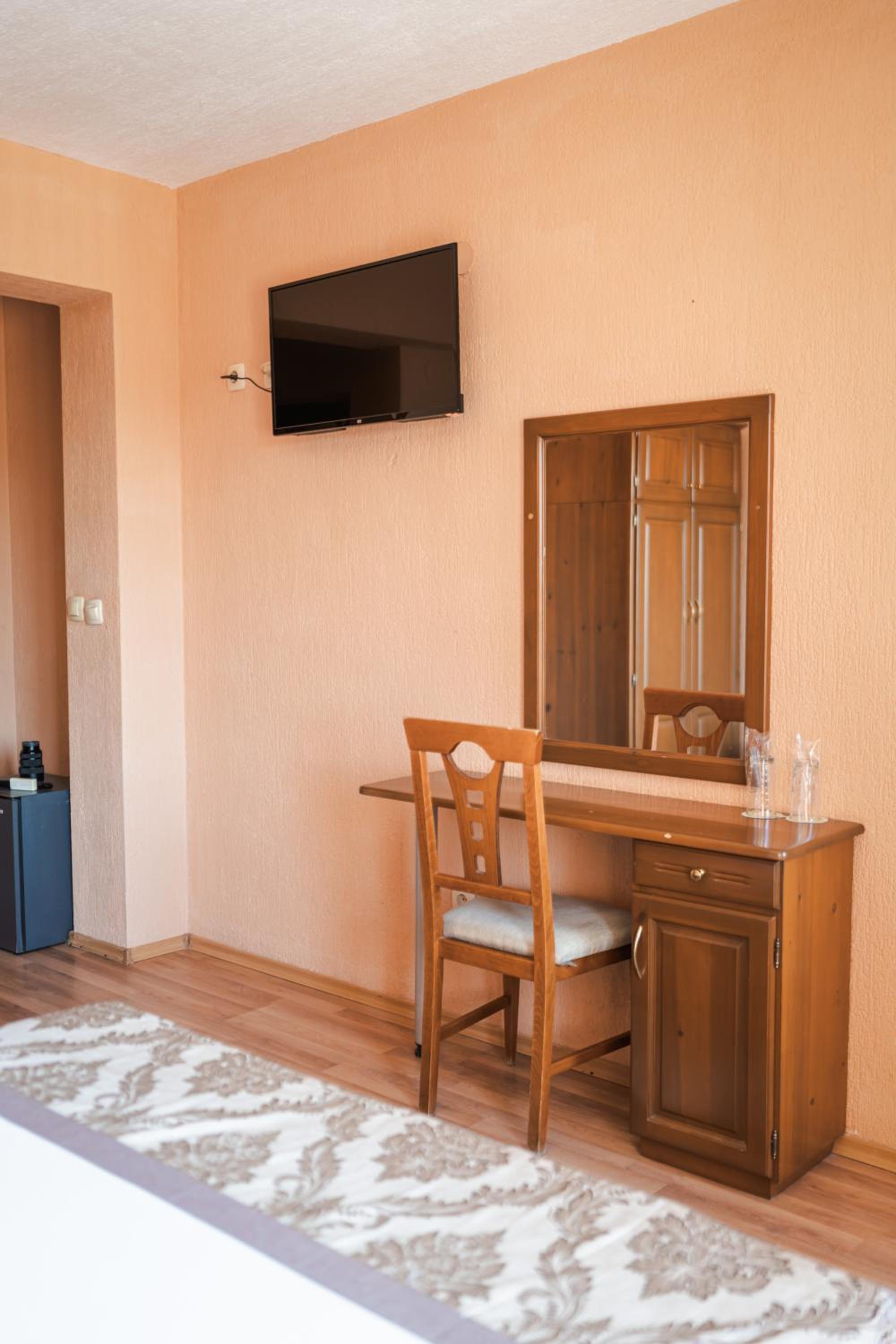 The air-conditioned rooms at Sveti Georgi Hotel offer a comfortable stay with private bathrooms, a seating area with cable TV, and some rooms even feature a balcony and a refrigerator.