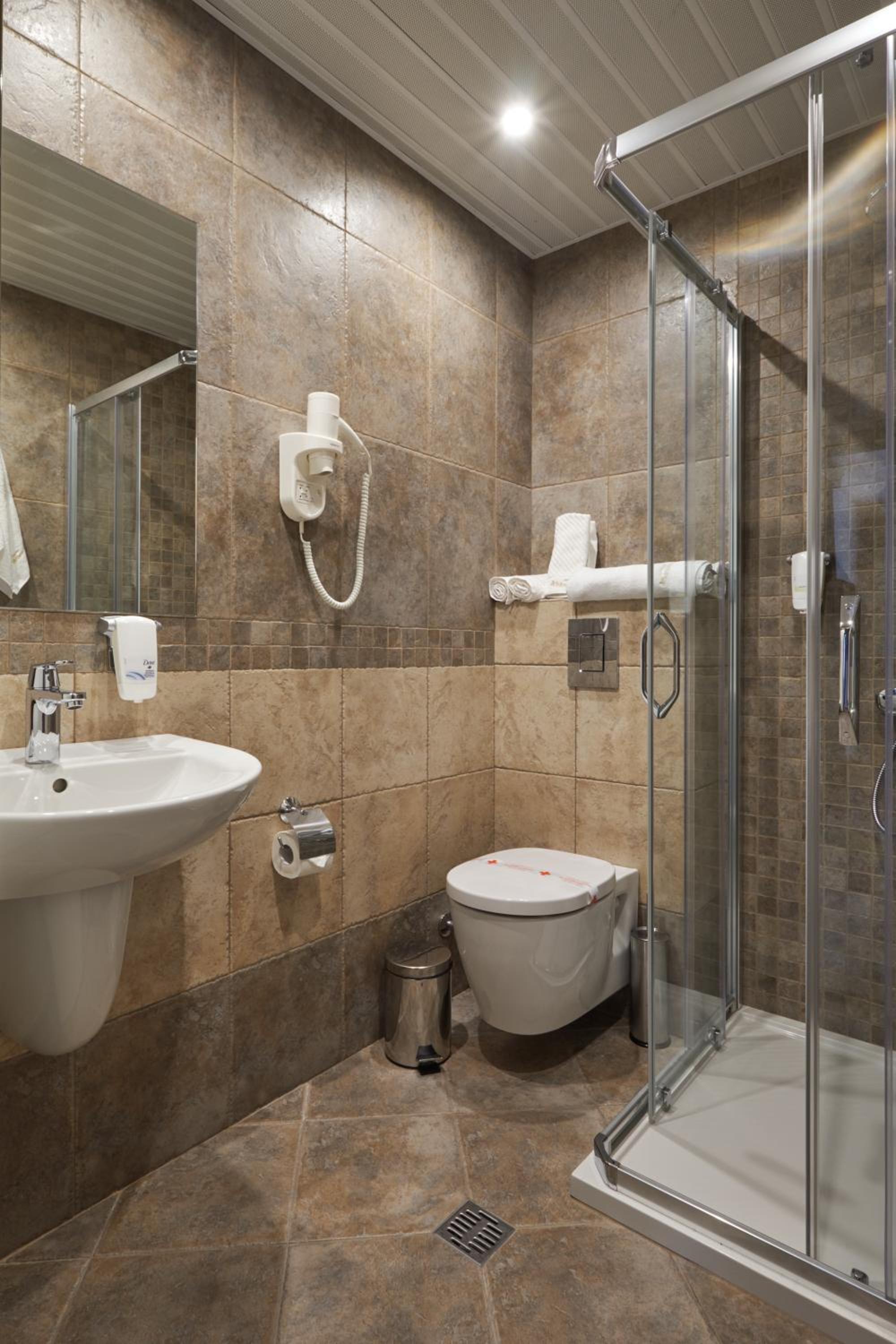 малка стая...много тясна баня с тоалетна....сутринта до 9 часа нямаше топла вода и това за 195лева !!?
