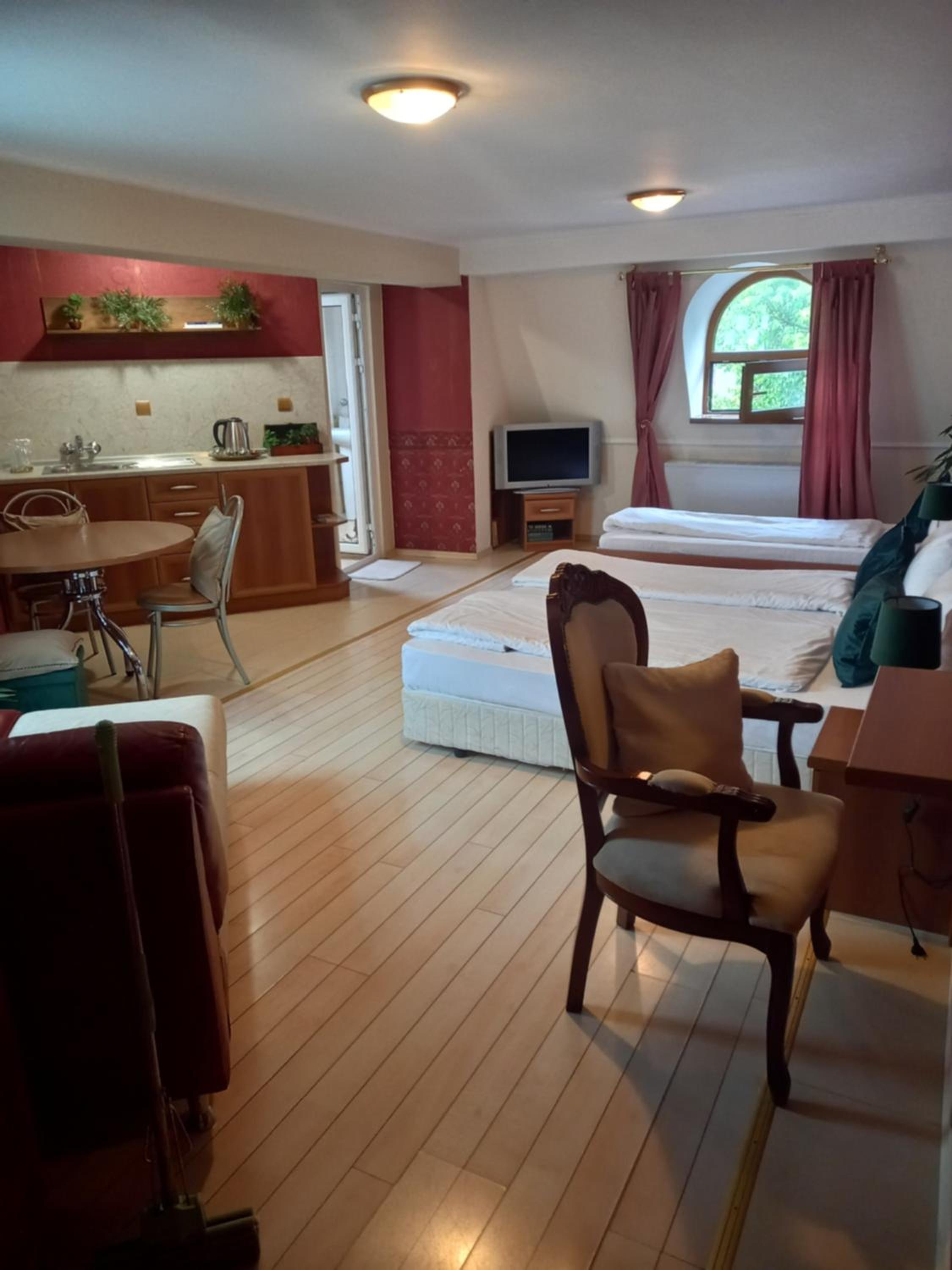 Food,market,coffee was near the hotel,easy to find in the centre of the town.Also comfortable bed and polite staff.Room was clean.In general we were very satisfied, everything was great.
