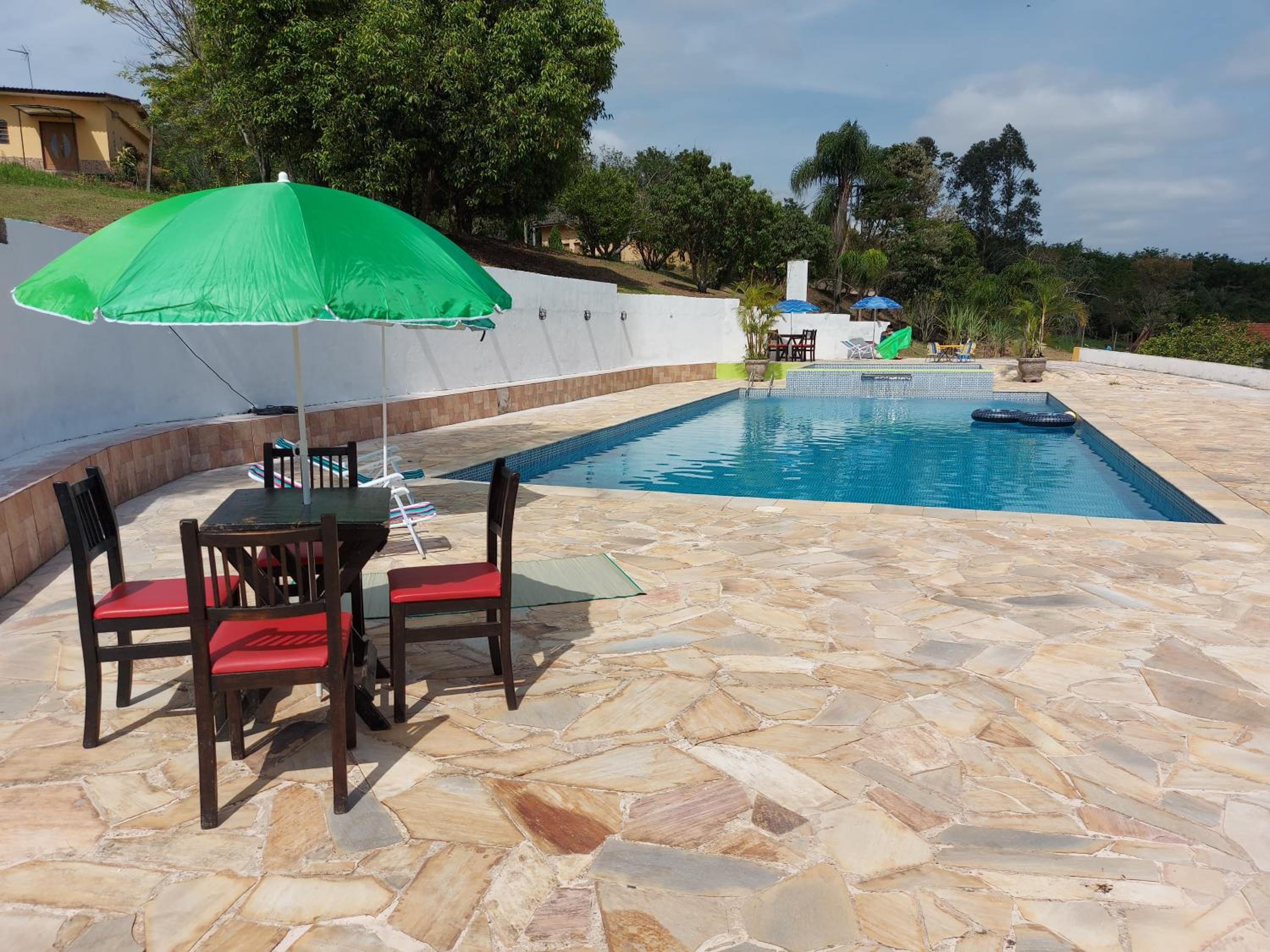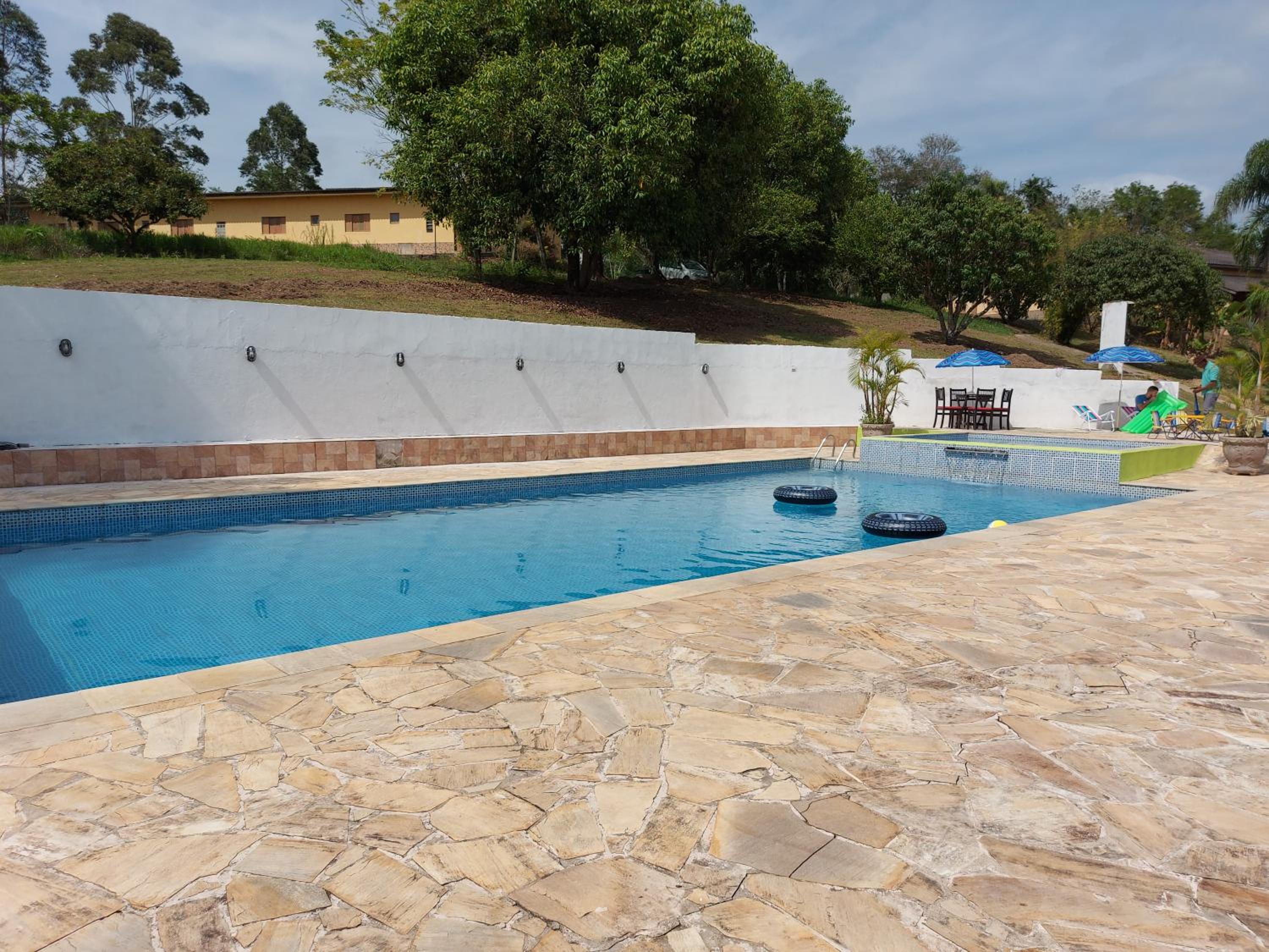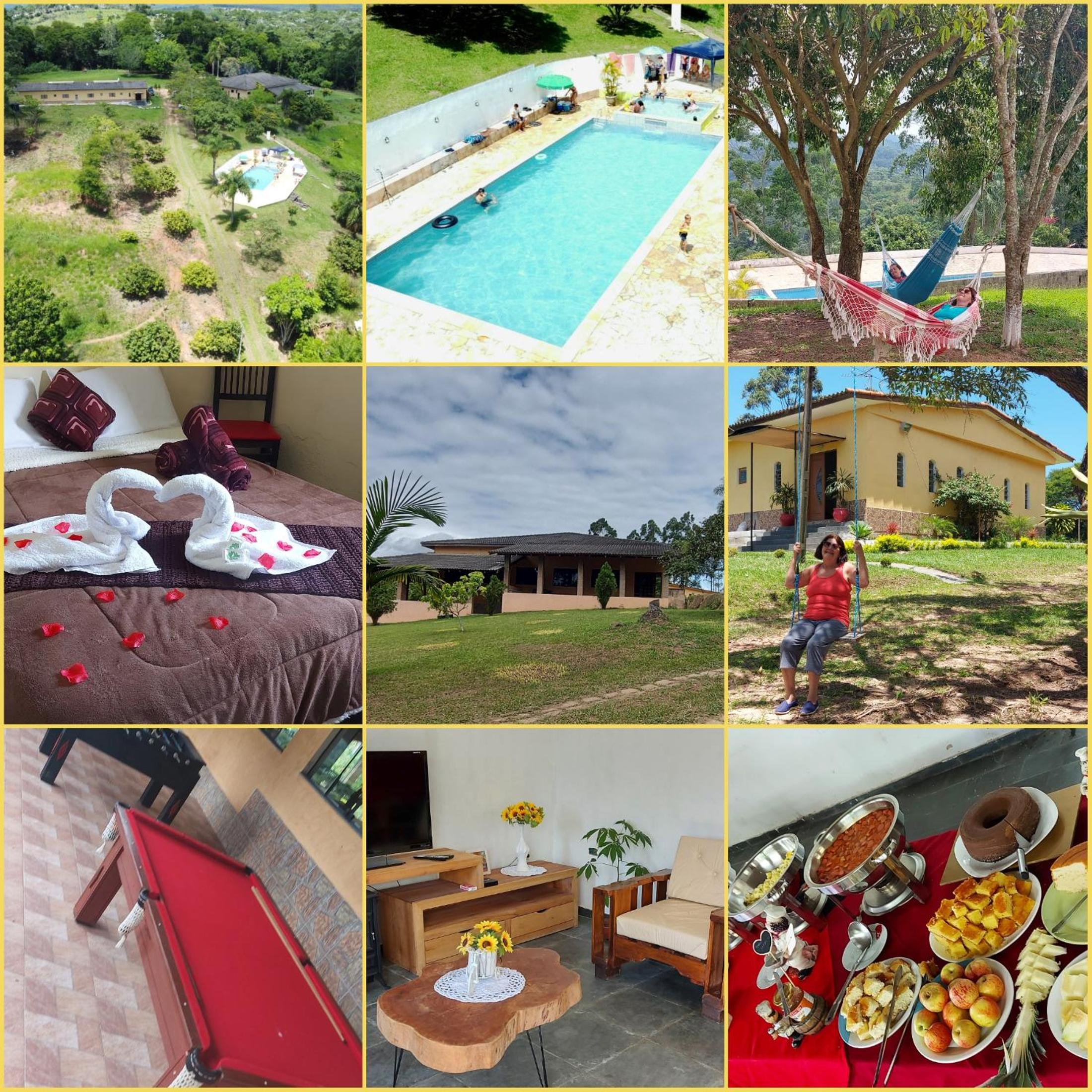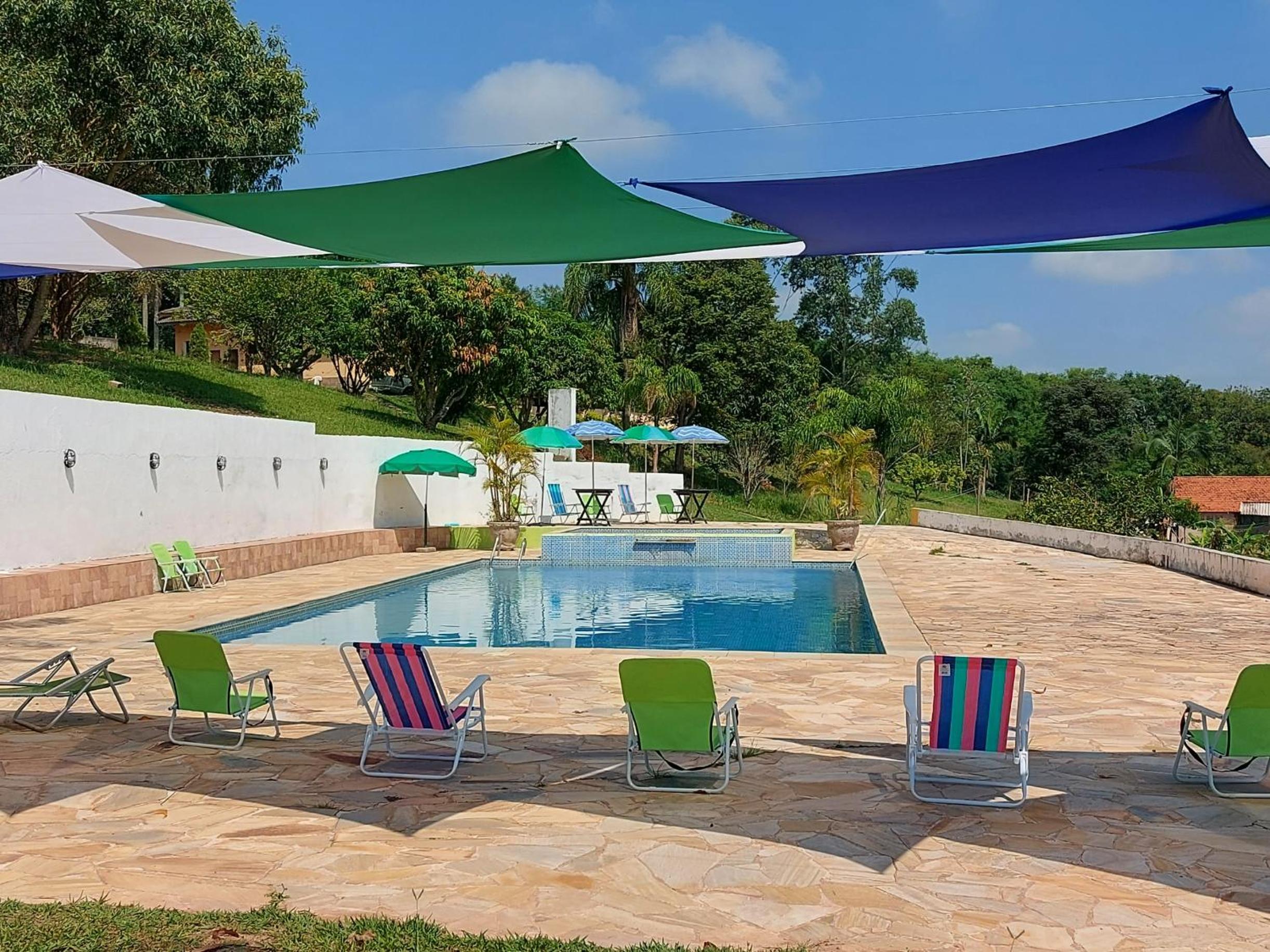 Recanto Varandas Guararema offers an impressive array of outdoor features, including a sparkling swimming pool and lush garden, perfect for relaxation and enjoyment.