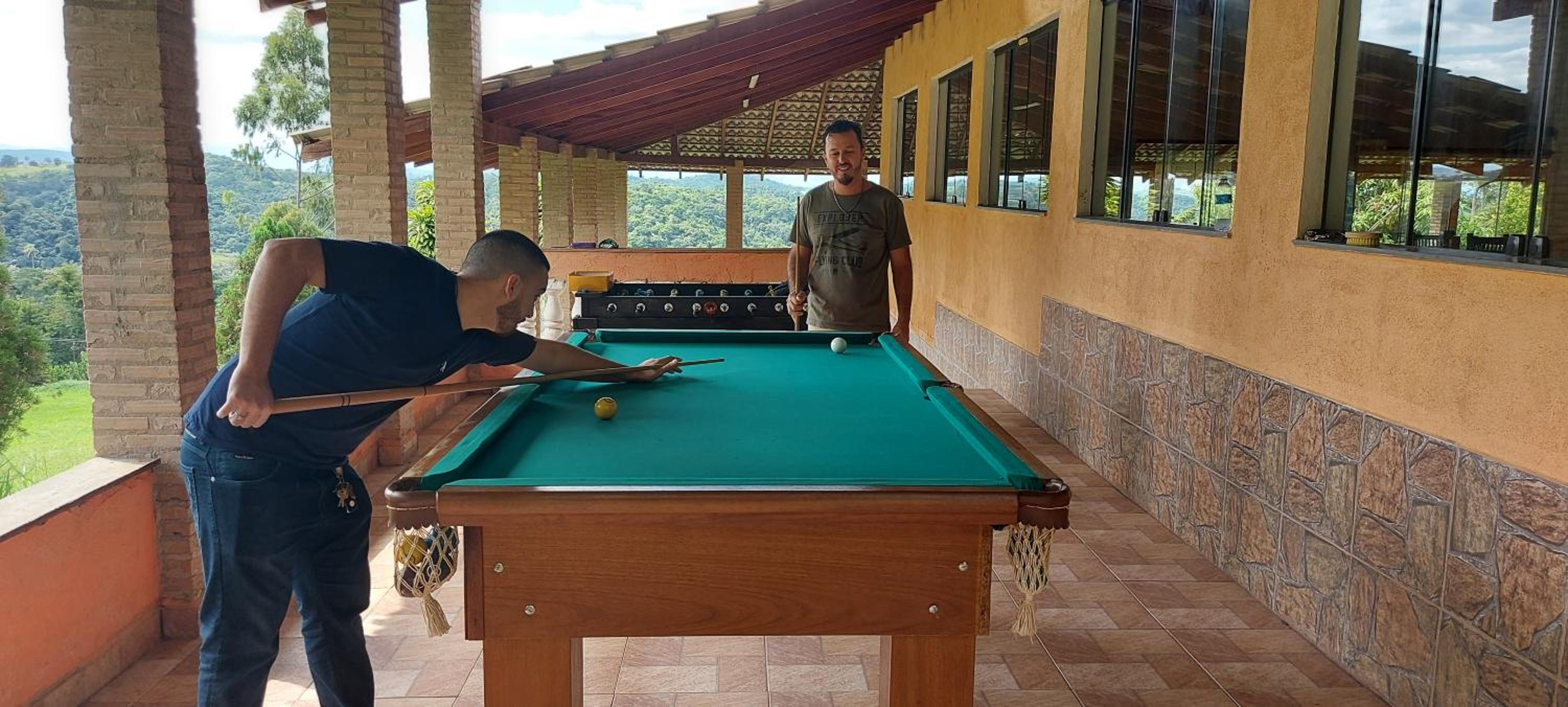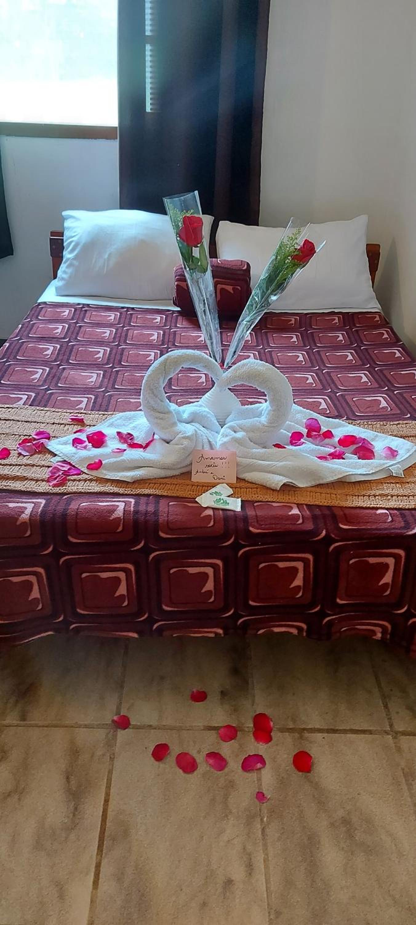 A pousada é bem casa de campo do jeito que imaginamos, só que precisa de algumas melhorias, como por exemplo: a privada do banheiro do quarto de onde ficamos, a descarga não funcionava normalmente , o ventilador também não conseguimos outras posições para uma melhor ventilação no quarto . E também sobre avisos: ter um aviso sobre a hora que a pousada fecha , pois quem vai a passeio, obviamente quer passear e conhecer a cidade, e imagina que quando voltar irá entrar na pousada com facilidade , e não tivemos uma boa experiência em relação a isso, não tinha nenhuma aviso em que a pousada ficaria fechada por dentro sem ao menos os outros hospedes terem como entrar caso chegassem mais tarde, se não tinha aviso sobre horário que estaria fechado , mas pelo menos os hospedes poderiam ter a chave da porta principal para ter acesso a pousada a hora que quisesse. Por fim ,foram esses nossos descontentamentos , fora isso, a pousada e pizzaria são ambientes bastante agradáveis.