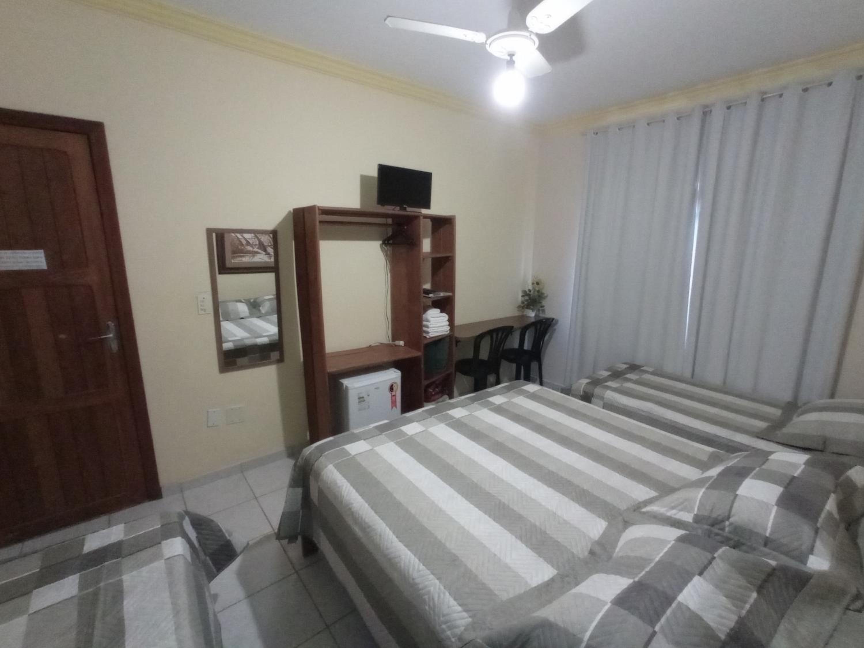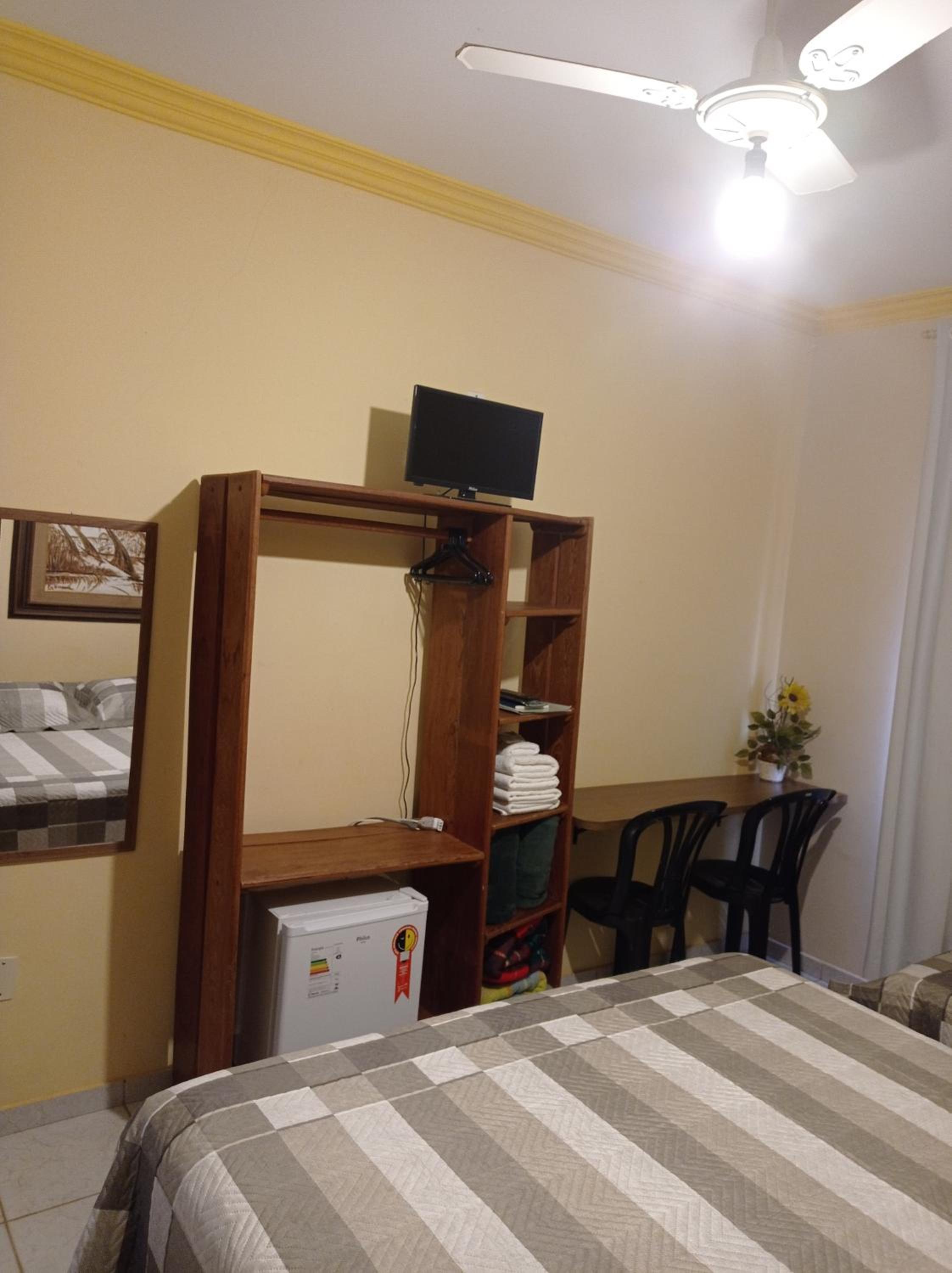 The rooms at Aconchego Canastra Hotel are equipped with a fan, satellite TV, and a private bathroom with a shower, ensuring a comfortable stay for guests.