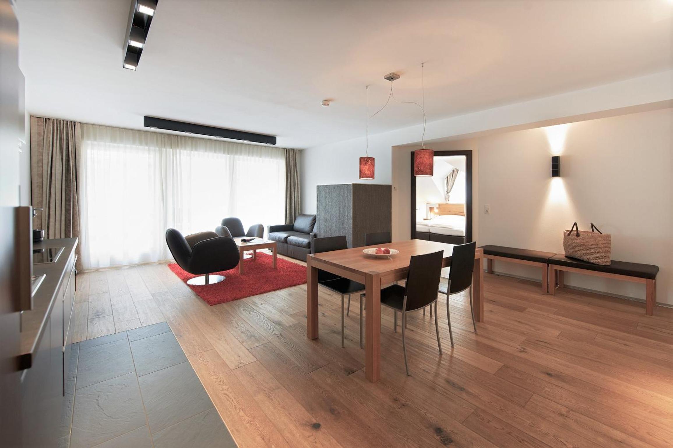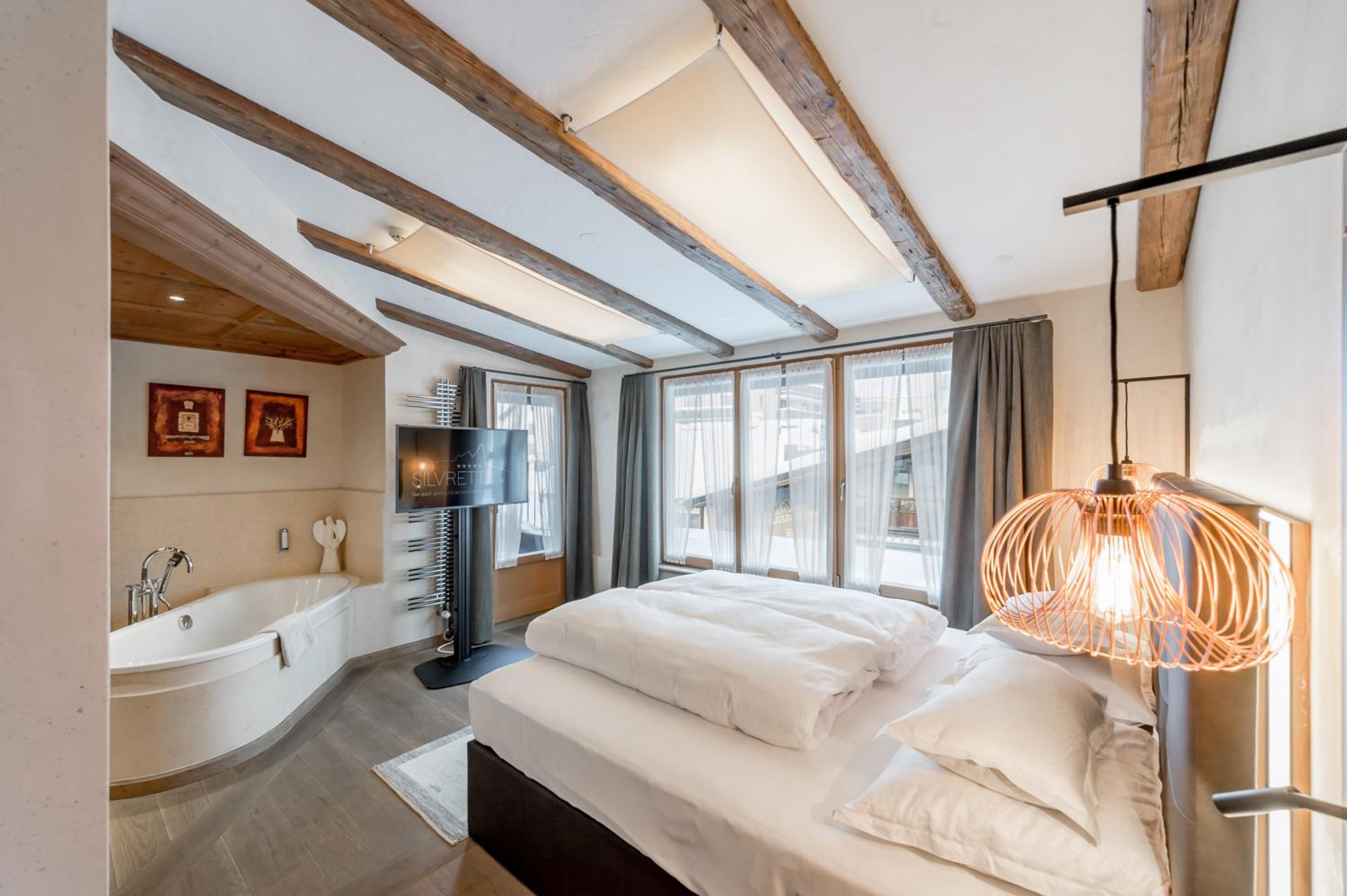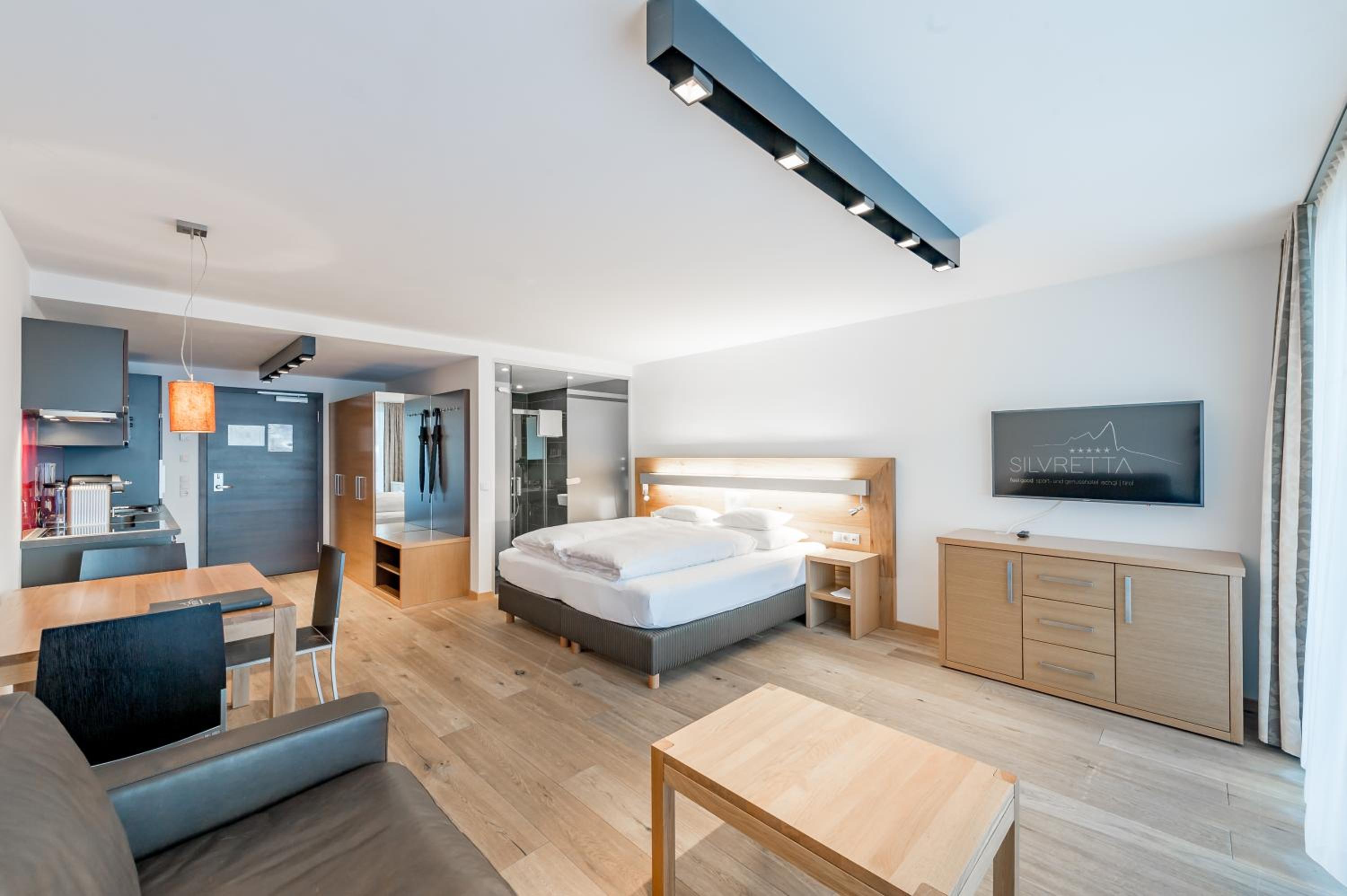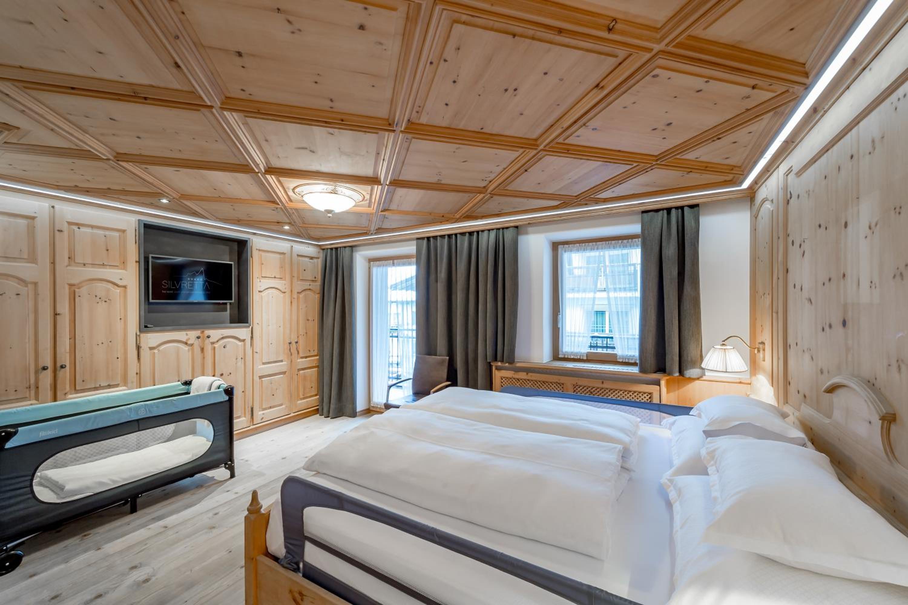 Enjoy complimentary Wi-Fi, ski storage on-site, and free access to the underground car park. Additionally, benefit from The Silvretta Basic Card for exclusive discounts and freebies in the Paznaun Valley and Samnaun region. Upgrade to the Silvretta Card - Premium Package for even more perks.