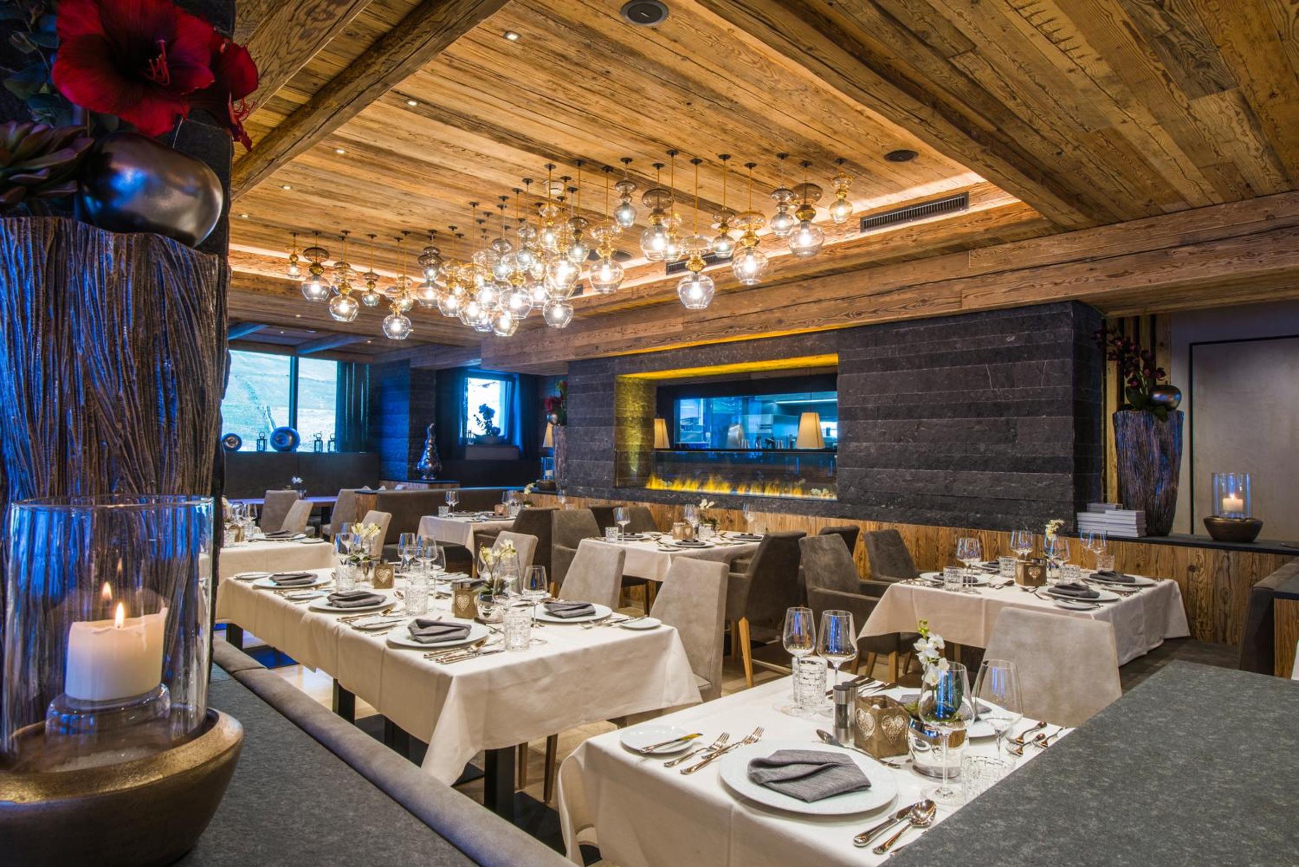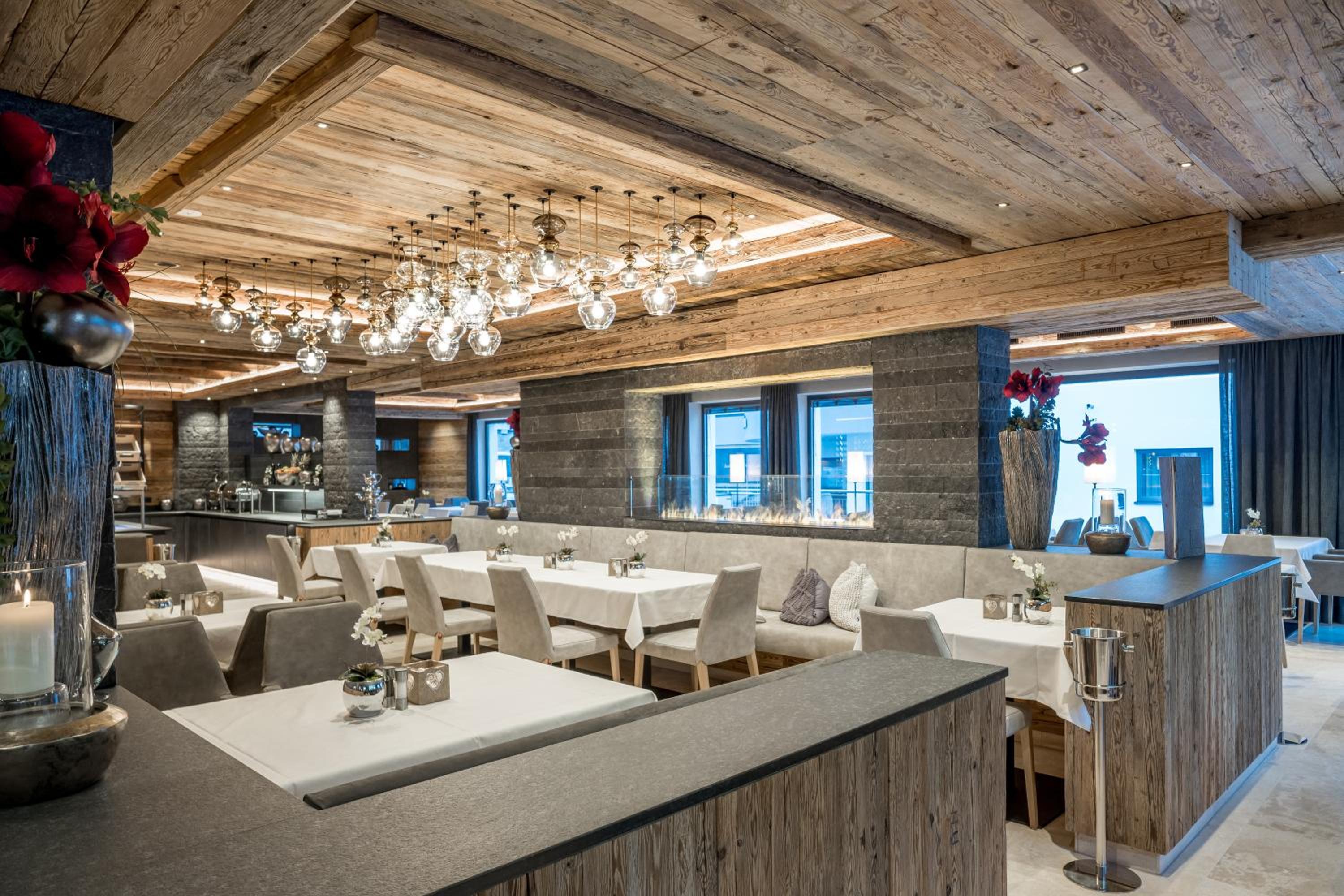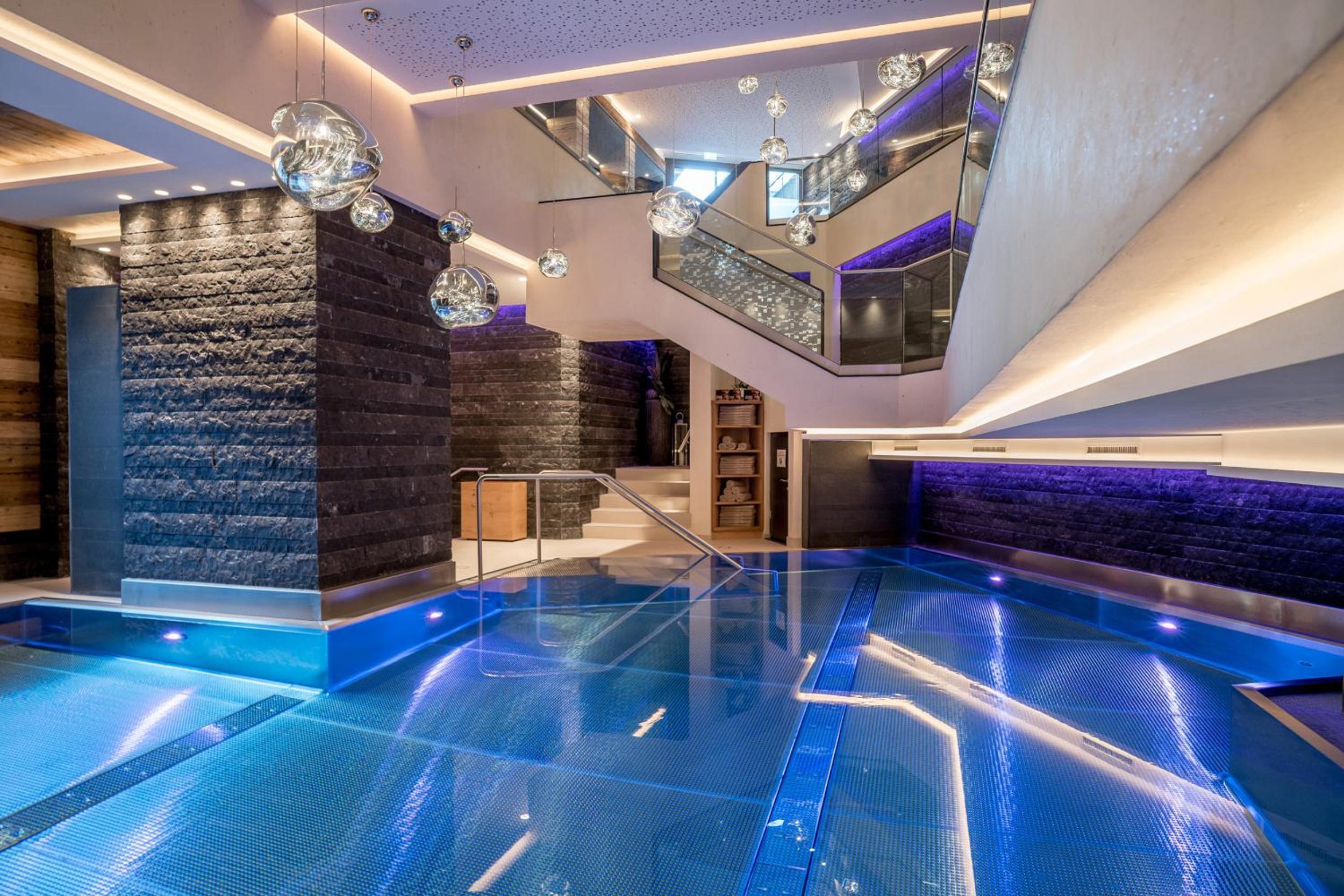 Relax and rejuvenate in the hotel's impressive 1200 m² spa area, featuring heated outdoor and indoor pools, a fitness room, and more. After a day of skiing, unwind in style and comfort.
