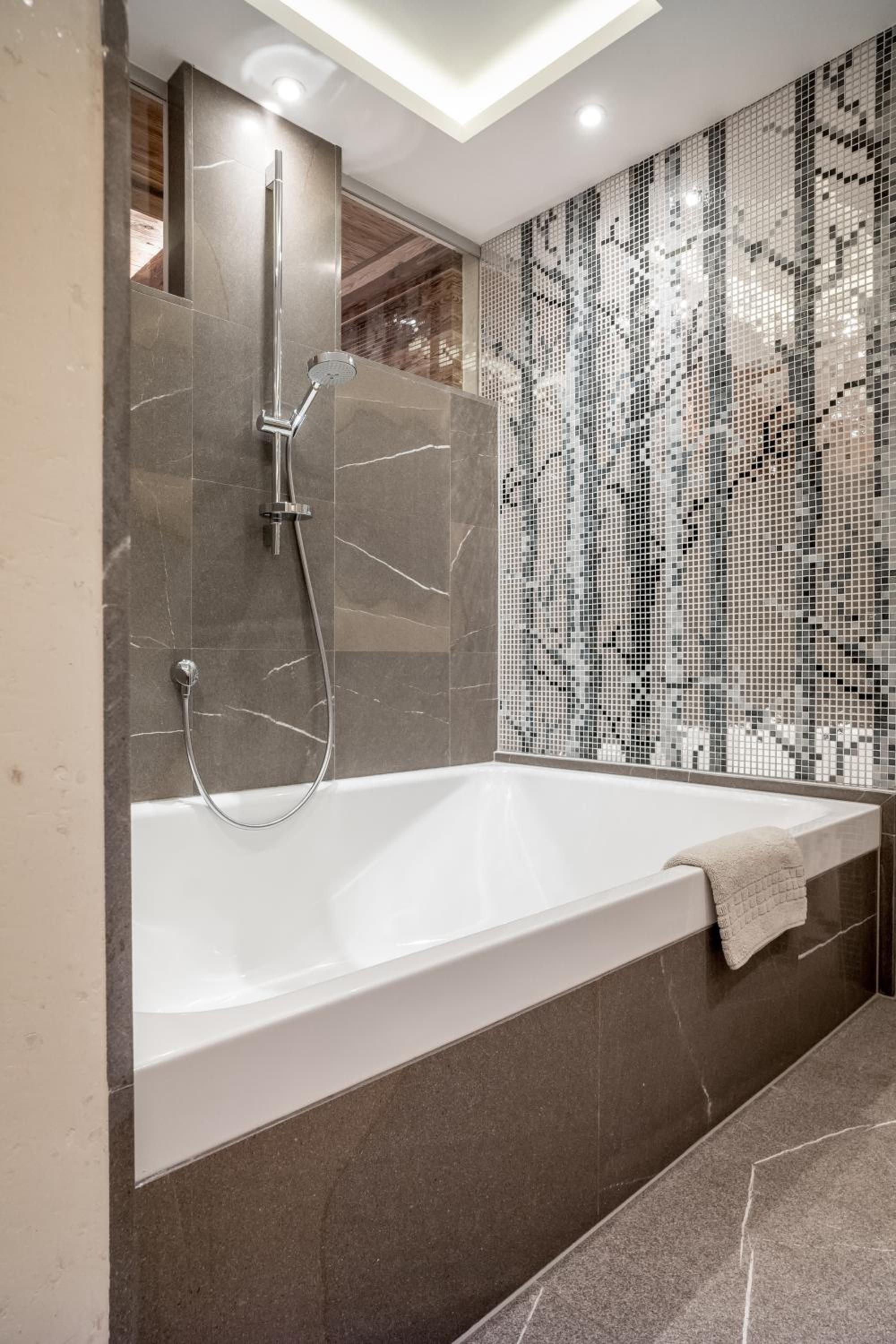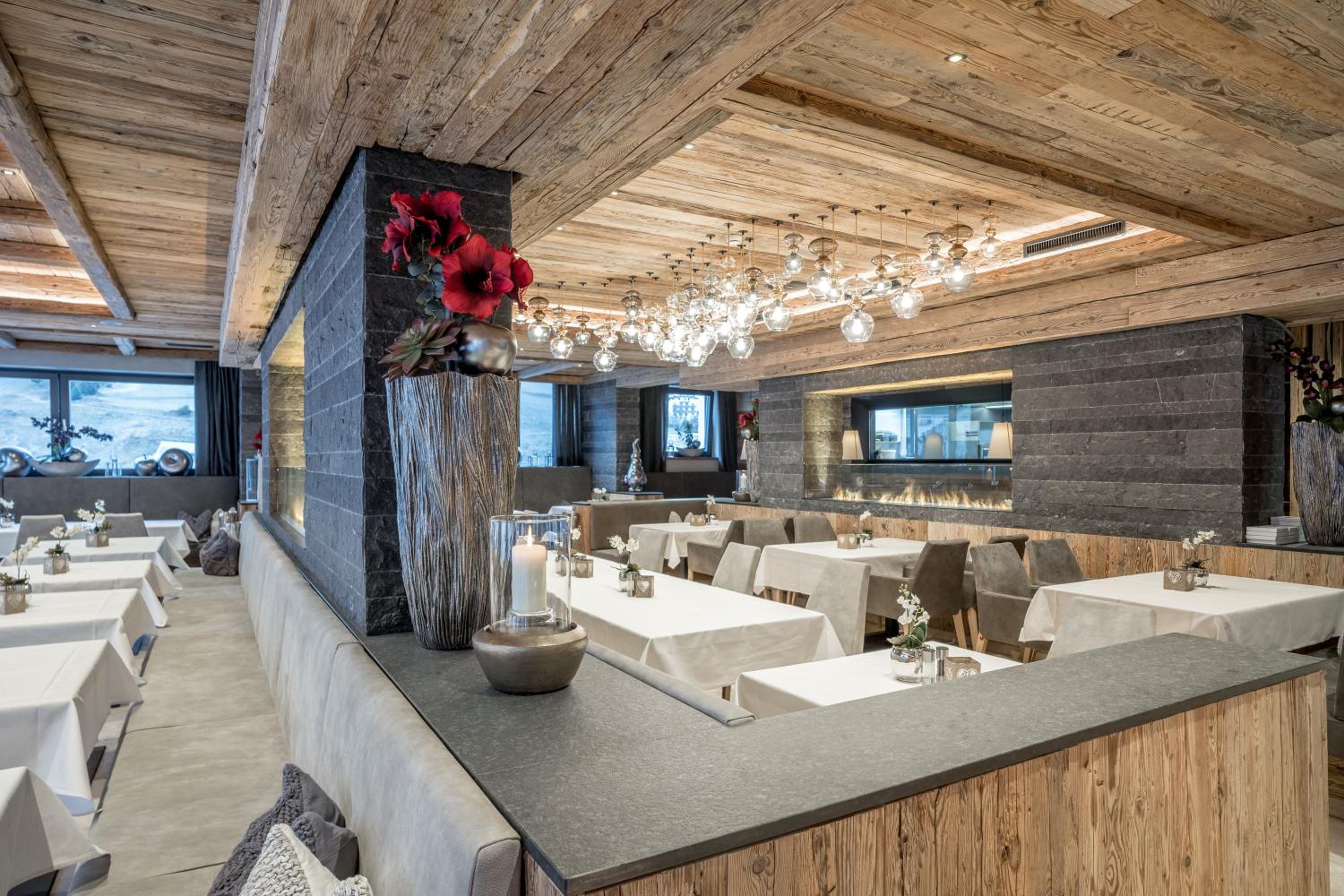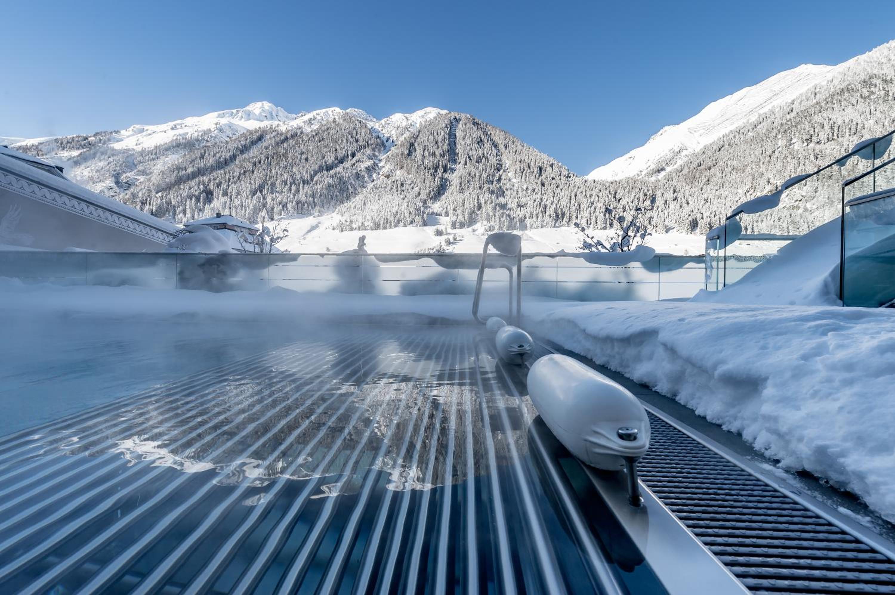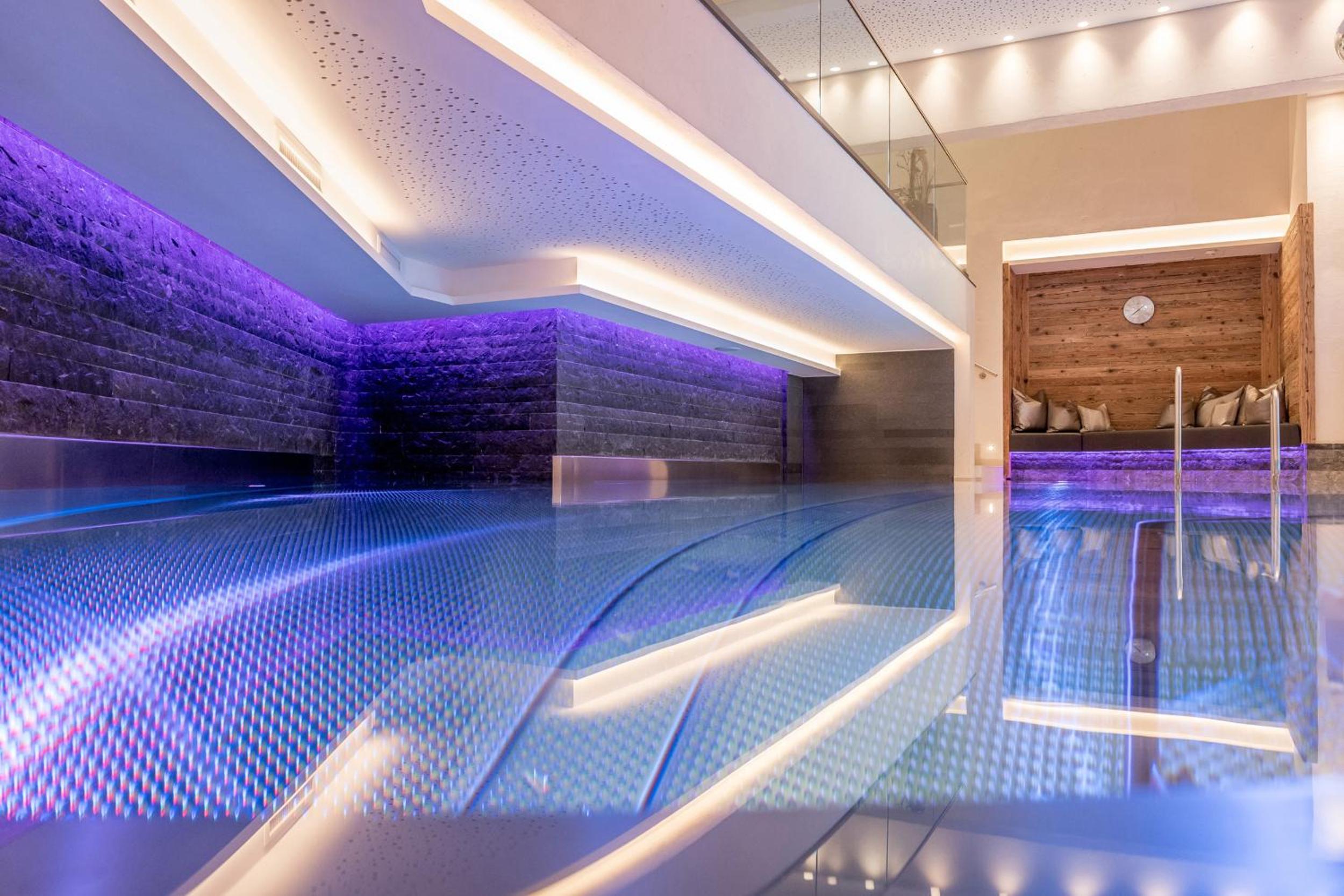 Relax and rejuvenate in the hotel's impressive 1200 m² spa area, featuring heated outdoor and indoor pools, a fitness room, and more. After a day of skiing, unwind in style and comfort.